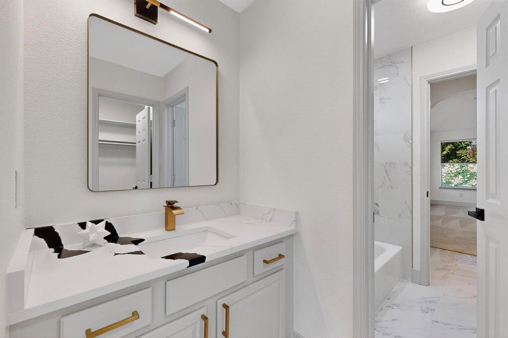 It's almost pool season! Check out the luxurious travertine lined heated & chilled pool at 4309 Weldon Lane! Pool features include a slide, lights, bubblers, pool deck, umbrella holders, and a new liner. The sizable screened-in back porch upgrades this back yard living to the next level too. The two story stone and brick exterior is beautifully designed and accented with extensive landscaping front and back. Inside you'll find hardwood floors in the main living areas, herringbone patterned stone in the kitchen, granite throughout, and ceramic tile in the baths. The property boasts a dining room, butler's pantry, stone fire place, generous office, breakfast bar, 4 beds, 3.5 baths, walk-in closets, oversized bonus room, two attics, and two garages. The 21 foot ceiling and arched balcony opens up the living area creating a spacious feel to the home. Key updates to the home include new kitchen back splash & stone floors, a new driveway, new paint (color drenched), custom wall paper, new lighting, custom window treatments, window tinting, plantation blinds, and shades. The primary en suite is a must see complete with a soaker tub, walk-in shower, and walk-in closet.