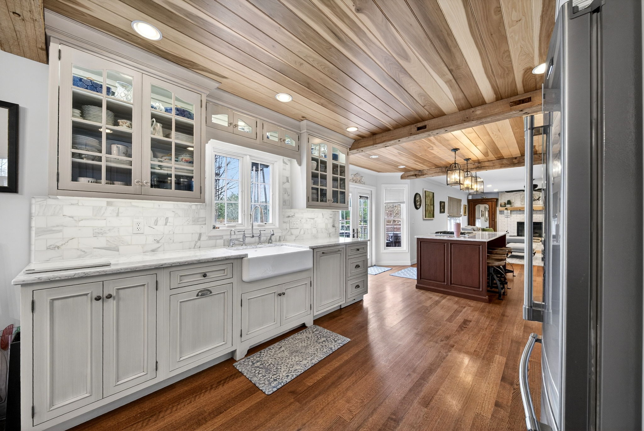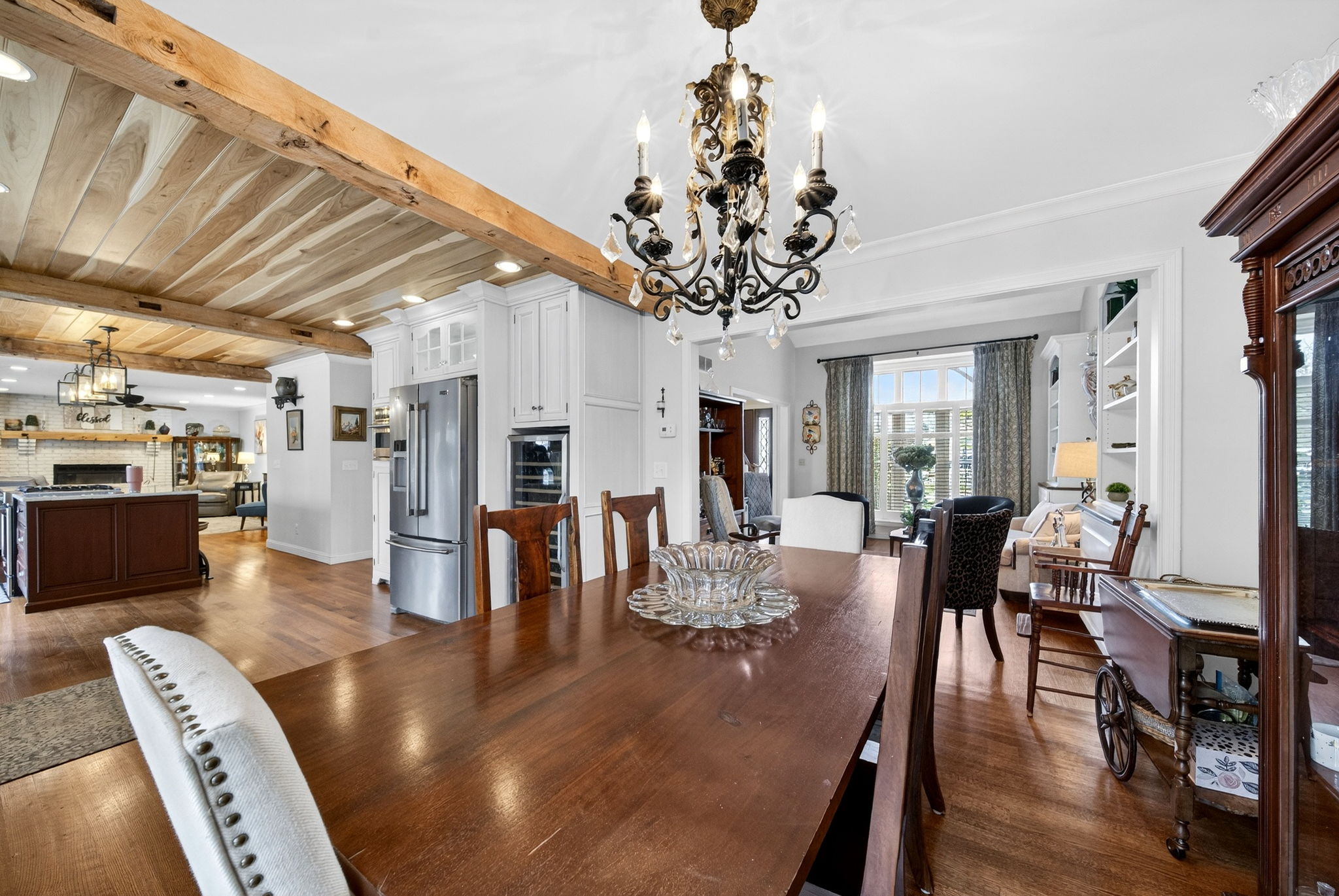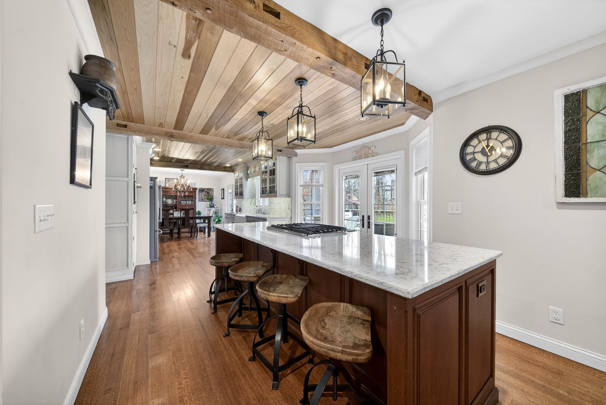 Stunning 4 bedroom, 3 bathroom home in desirable Dobbs Glen on the east side! This move-in ready home is full of high-end upgrades and custom details throughout. The kitchen is a showstopper with custom cabinetry, quartz countertops, gas range, convection microwave, poplar wood ceilings, and reclaimed wood beams, making it perfect for entertaining.