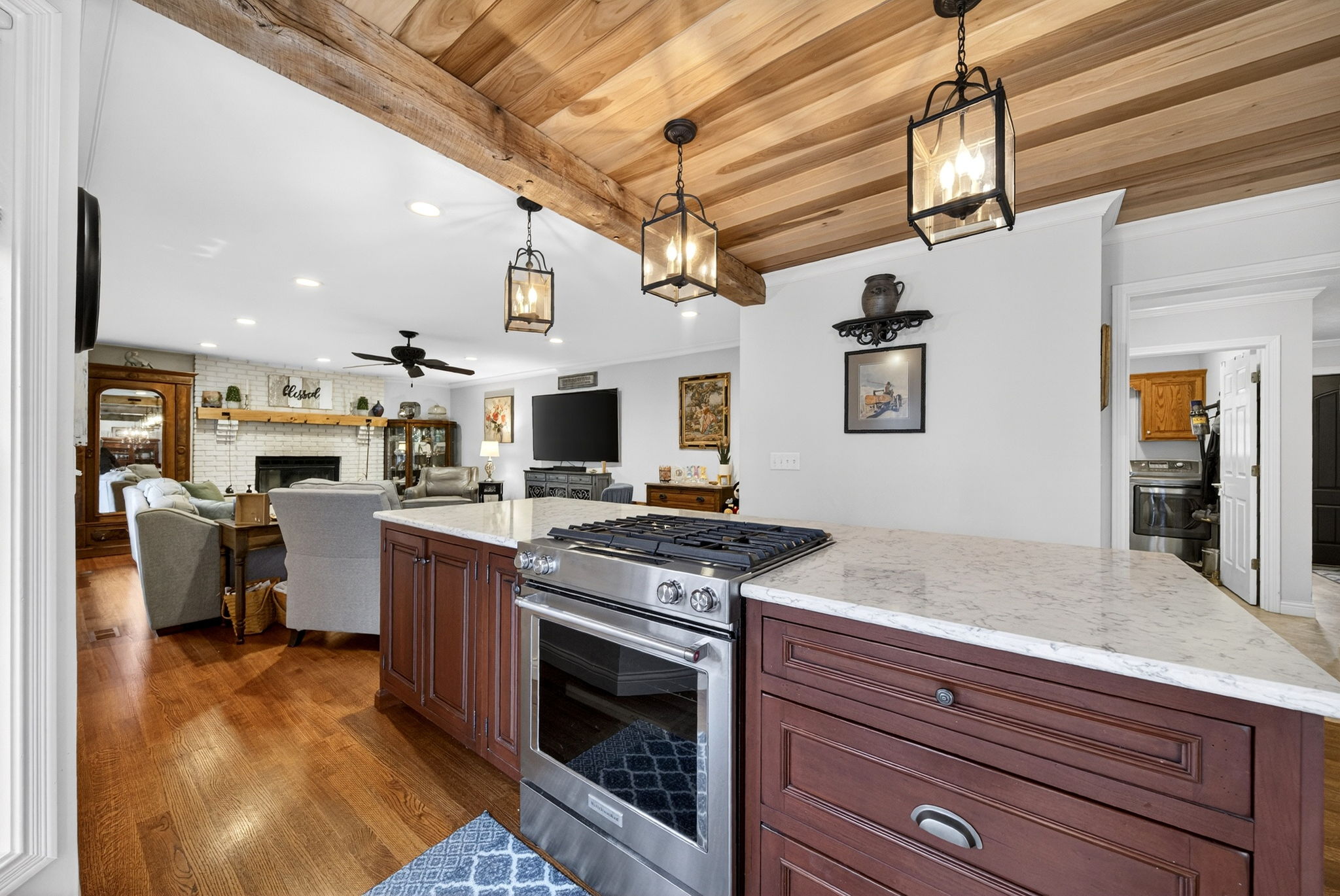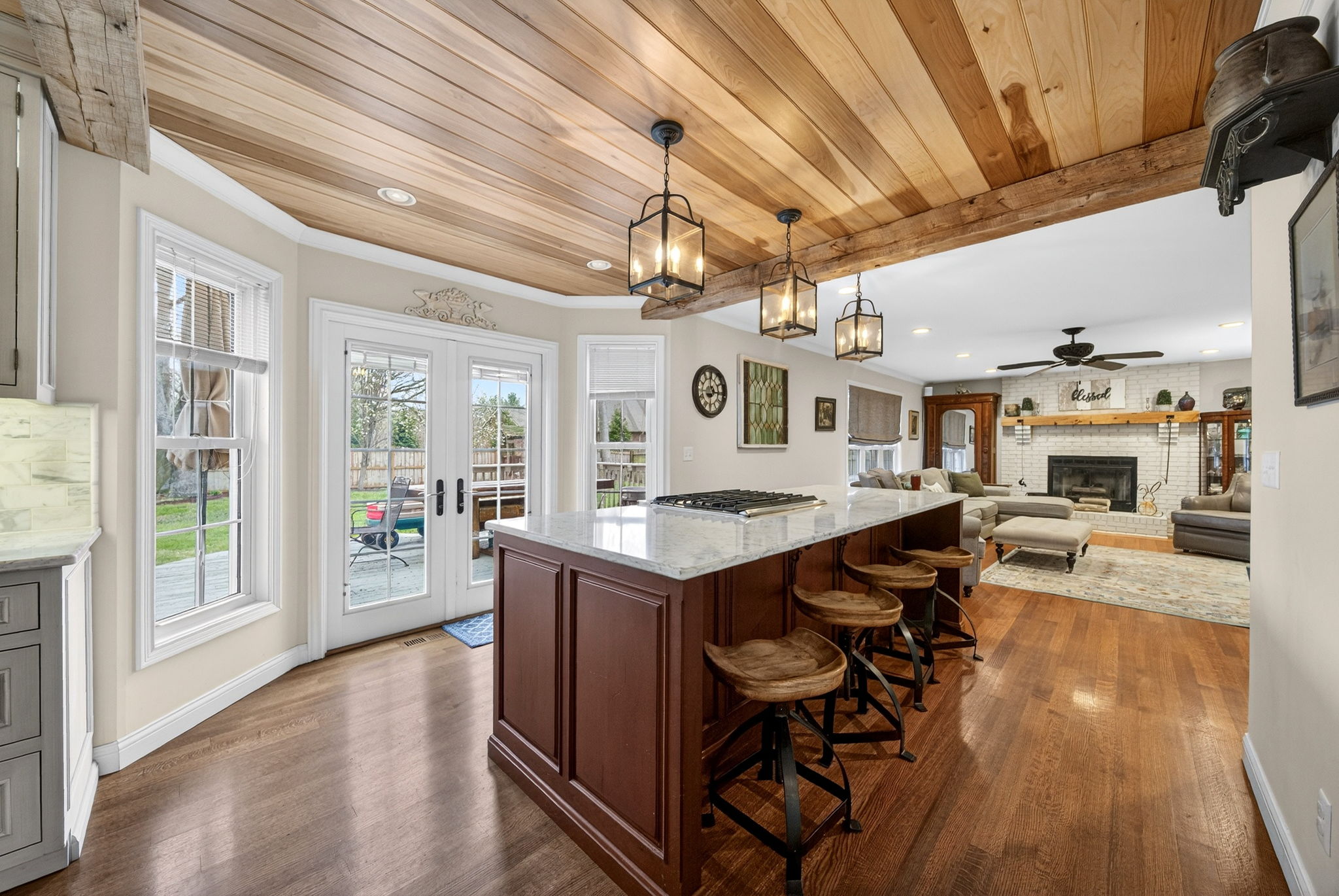 Stunning 4 bedroom, 3 bathroom home in desirable Dobbs Glen on the east side! This move-in ready home is full of high-end upgrades and custom details throughout. The kitchen is a showstopper with custom cabinetry, quartz countertops, gas range, convection microwave, poplar wood ceilings, and reclaimed wood beams, making it perfect for entertaining. You will love the oak flooring, new tile, and cozy gas fireplace. Major updates include Pella windows and doors with custom blinds, a tankless water heater, water osmosis system, newer roof, and 6-inch gutters. Outside offers a fully fenced yard and a 3 car garage, all in a prime location close to everything.This one truly checks all the boxes. Do not miss your chance to make it yours!