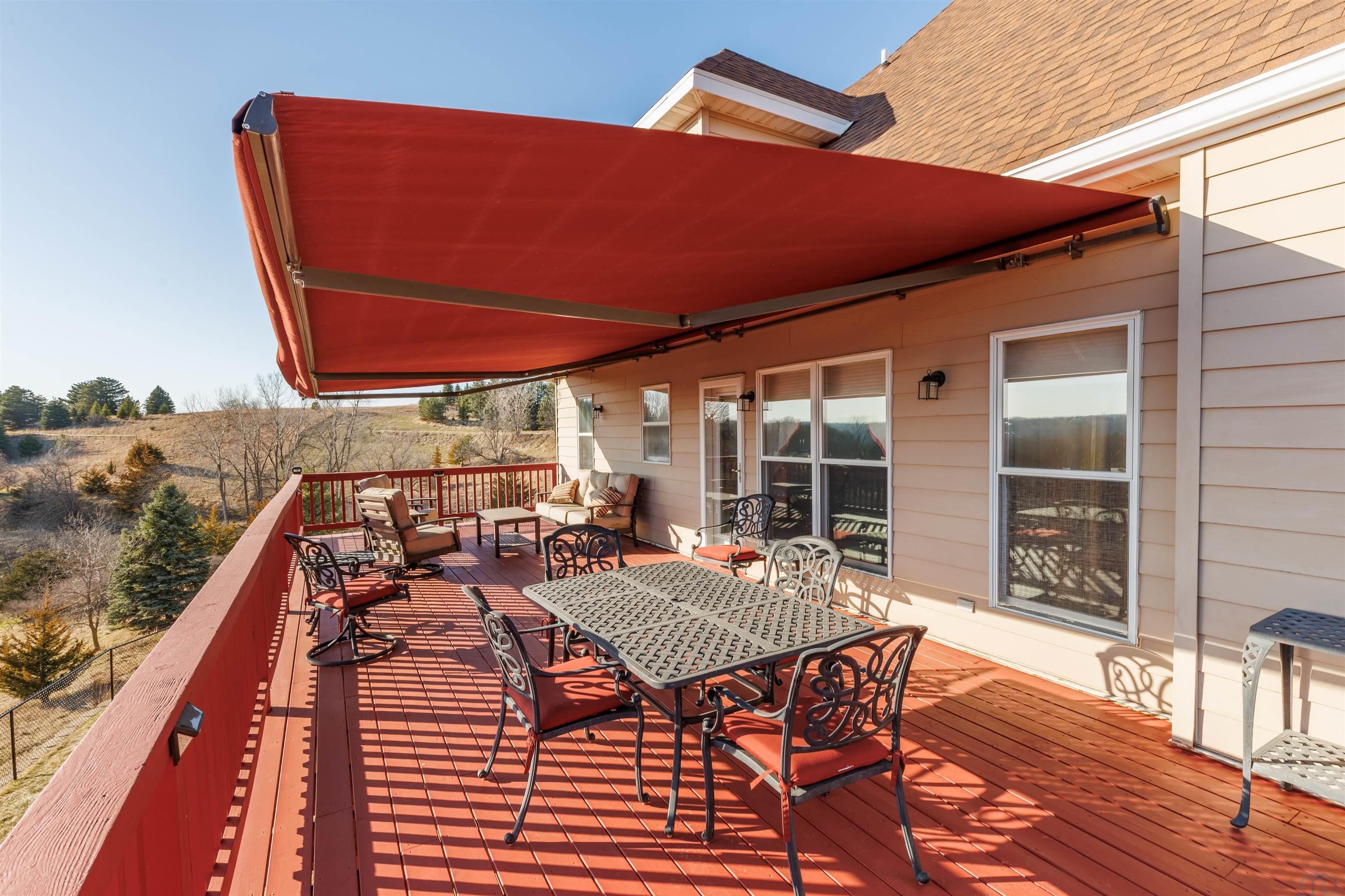 Discover exceptional living in this stunning one-and-a-half story home offering over 4,600 square feet of beautifully finished living space. Perfectly positioned to capture breathtaking views of the western Siouxland hills, this property is surrounded by mature trees and abundant wildlife, creating a peaceful, private retreat. Step outside onto the expansive deck, complete with an electric awning that effortlessly extends your living space—ideal for relaxing or entertaining while enjoying the picturesque landscape. Inside, you’ll find a thoughtfully designed floor plan featuring 4 bedrooms and 4 bathrooms, enhanced by gorgeous décor, warm color palettes, and striking architectural ceilings throughout. The main living area showcases rich hardwood floors, a cozy gas fireplace, and an inviting atmosphere that feels like home the moment you walk in. The kitchen is equipped with new appliances and flows seamlessly into the dining area, highlighted by a beautiful chandelier—perfect for gatherings both large and small. A stunning front entryway welcomes guests with style and elegance. The main-floor primary suite offers a luxurious retreat with a spacious bathroom and a large walk-in closet. Upstairs continues the home’s charm, while the fully finished walkout lower level provides incredible versatility—featuring a second living room, den, bedroom, bathroom, sitting area, and even a brand-new kitchen, making it ideal for multi-generational living or guest quarters. Additional features include a large garage, new roof, durable poured foundation, radon mitigation system, and low-maintenance vinyl plank flooring in the lower level. Offered at 579,000, this exceptional property combines space, style, and scenery—truly a place you’ll be proud to call home.