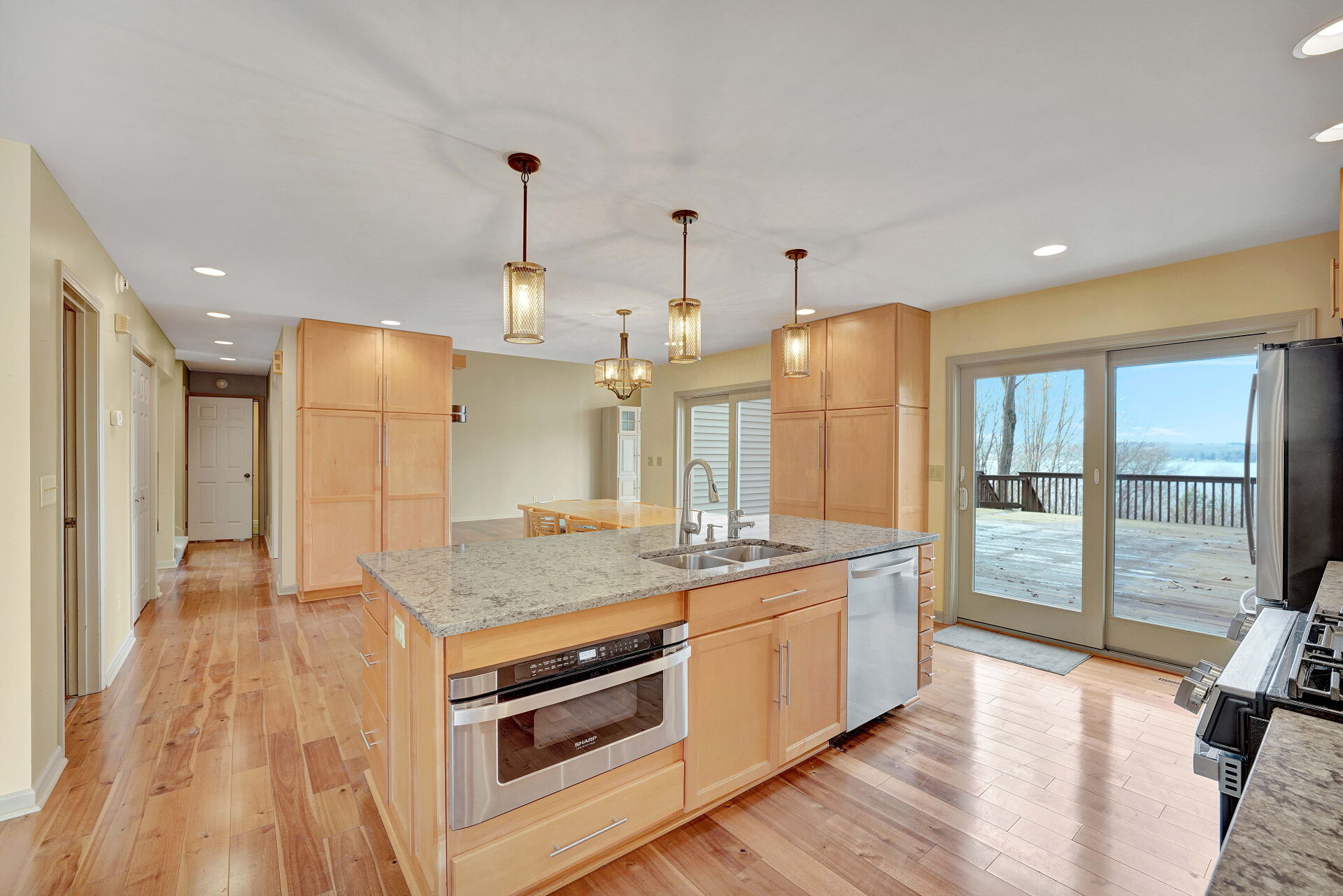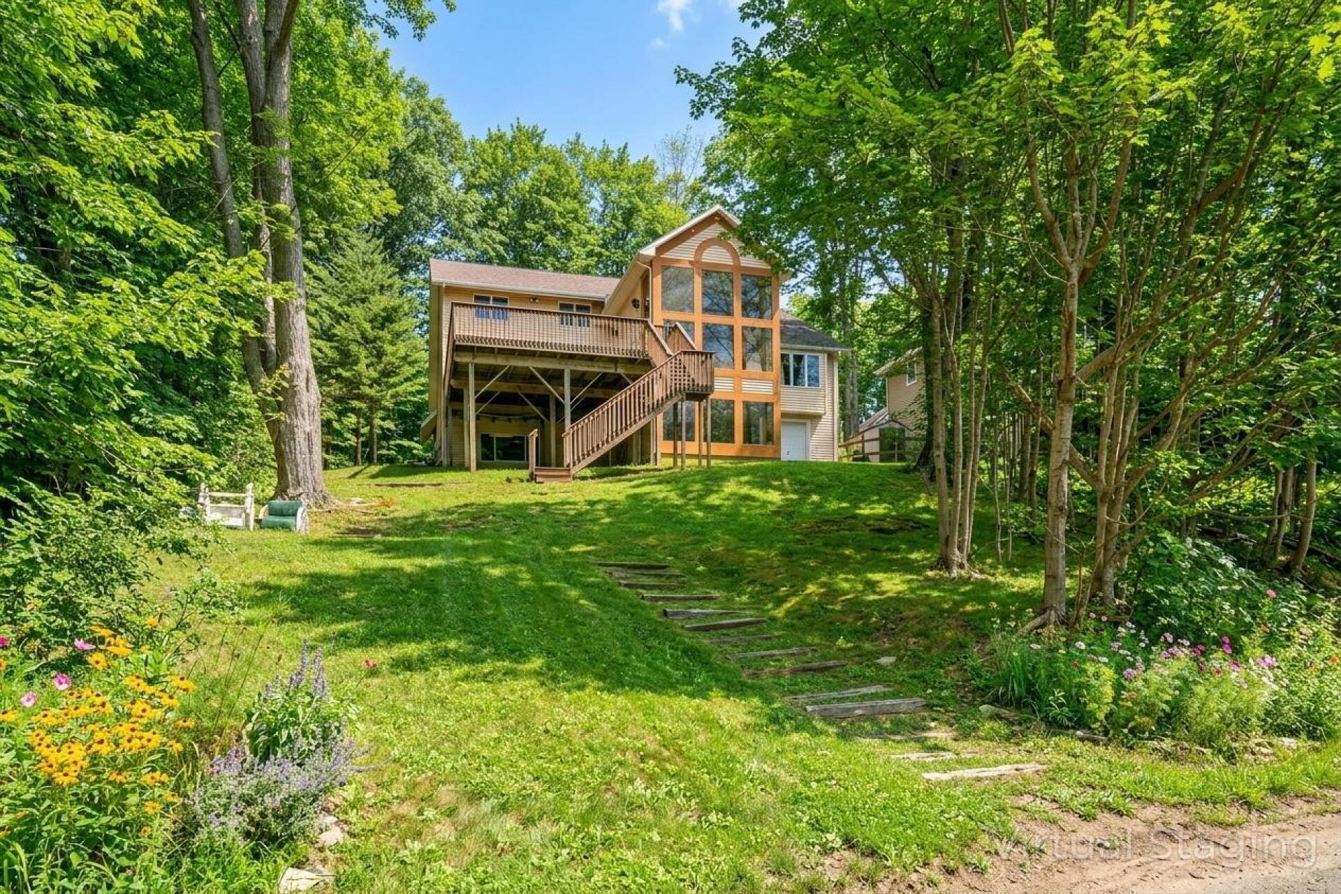 Set on a secluded lot with incredible views of Chautauqua Lake, this one-of-a-kind home offers over 4,300 square feet of living space designed to take full advantage of its surroundings. Large windows and open, airy spaces bring in tons of natural light while framing the lake from multiple vantage points throughout the home. The outdoor space is just as impressive, featuring a generous deck that’s perfect for relaxing, entertaining, or simply enjoying the sunset over the water. With deeded lake access and a boat slip included, you’ll have everything you need to fully enjoy lake life all season long. The interior offers a flexible layout with five bedrooms spread across three levels, giving plenty of room for both everyday living and hosting guests. The primary bedroom provides a quiet escape with its own private bath and peaceful views. Downstairs, the walkout lower level adds even more usable space, complete with additional bedrooms, a full bathroom, a second living area, and a wet bar—ideal for gatherings or extended stays. Offering a balance of privacy and convenience, this property is a great fit for anyone looking to enjoy the lake while still having space to unwind. Opportunities like this don’t come around often in the Chautauqua Lake area.