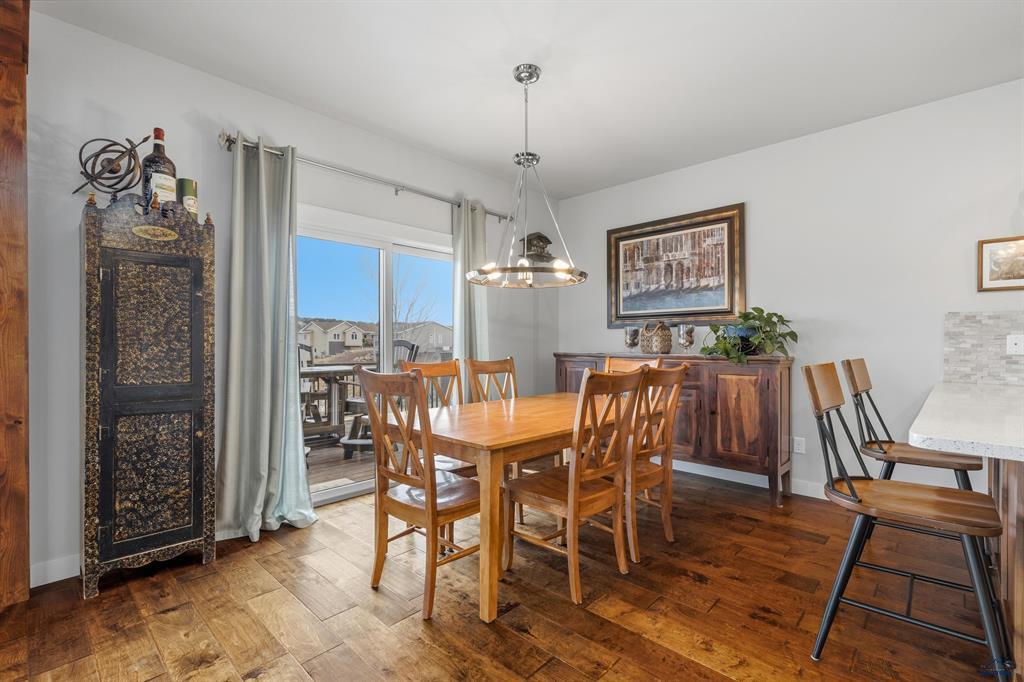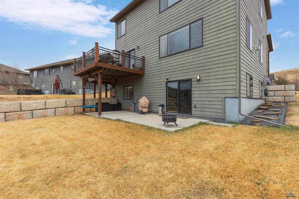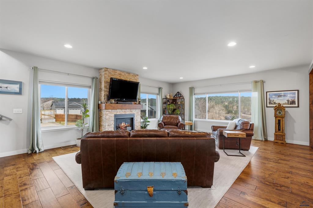 Welcome to this beautiful two-story home in the desirable Ridge at Catron Crossing subdivision, offering 4 bedrooms, 3.5 bathrooms, and over 3,500 finished square feet of well-designed living space. Built in 2014 and situated on a 0.26-acre lot, this home features an open main level with tall ceilings, a spacious living room centered around a cozy gas fireplace, and a functional kitchen complete with breakfast bar, walk-in pantry, and adjoining dining area with access to the deck, which is perfect for indoor-outdoor living. The upper level includes three bedrooms, each with a walk-in closet, a full bathroom, a loft, and convenient upper-level laundry, while the primary suite offers a relaxing retreat with double sinks, a tiled shower, and a soaking tub. The walkout basement is finished with a large family room, an additional bedroom with a walk-in closet, a 3/4 bathroom, and extra storage space, with potential for future laundry. Additional highlights include central air, forced-air heat, a three-car attached heated garage, a sprinkler system, and beautiful hill and neighborhood views from all levels. Located in Rapid City with easy access to amenities, this home offers space, functionality, and comfort in a sought-after neighborhood.