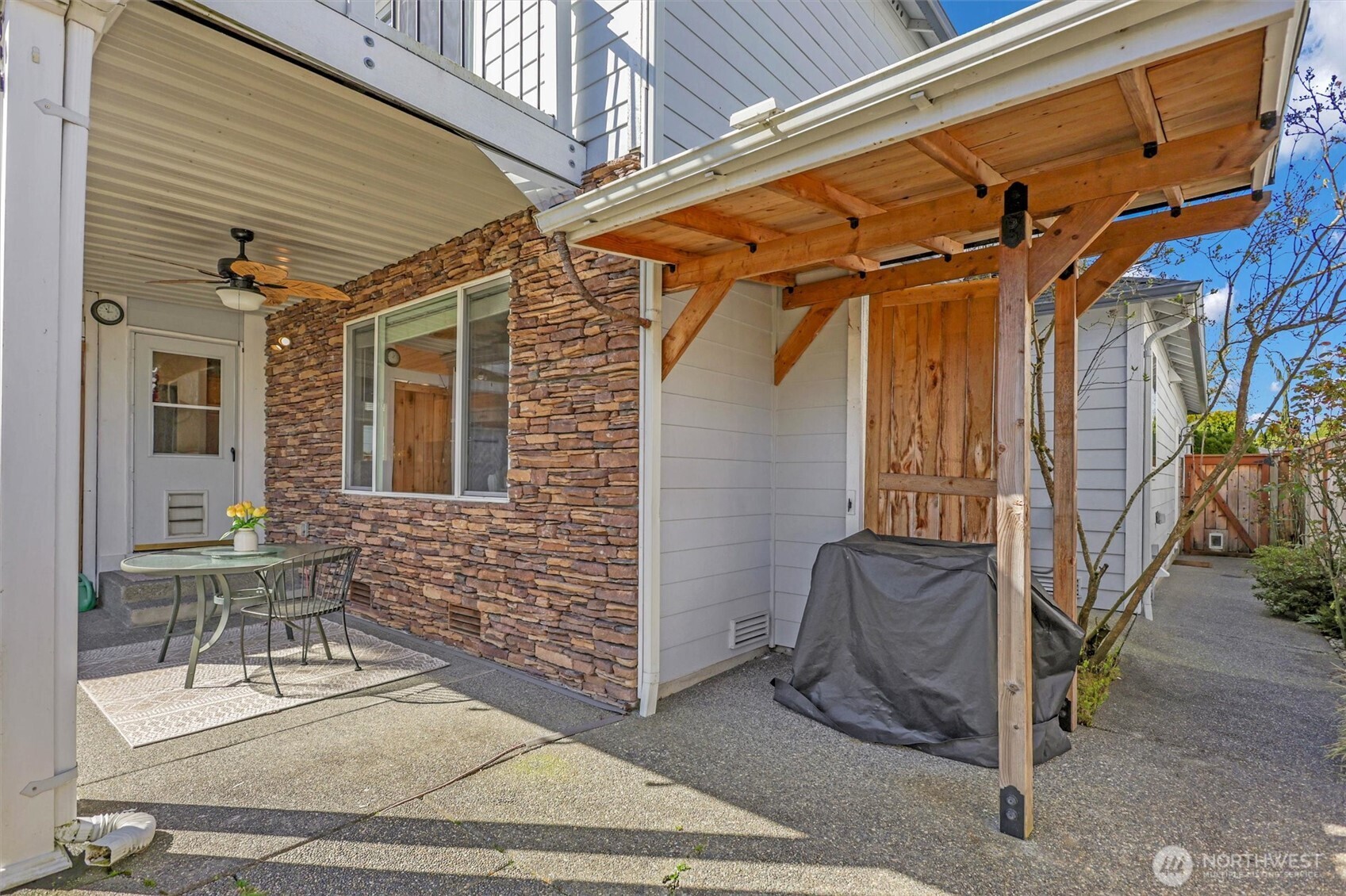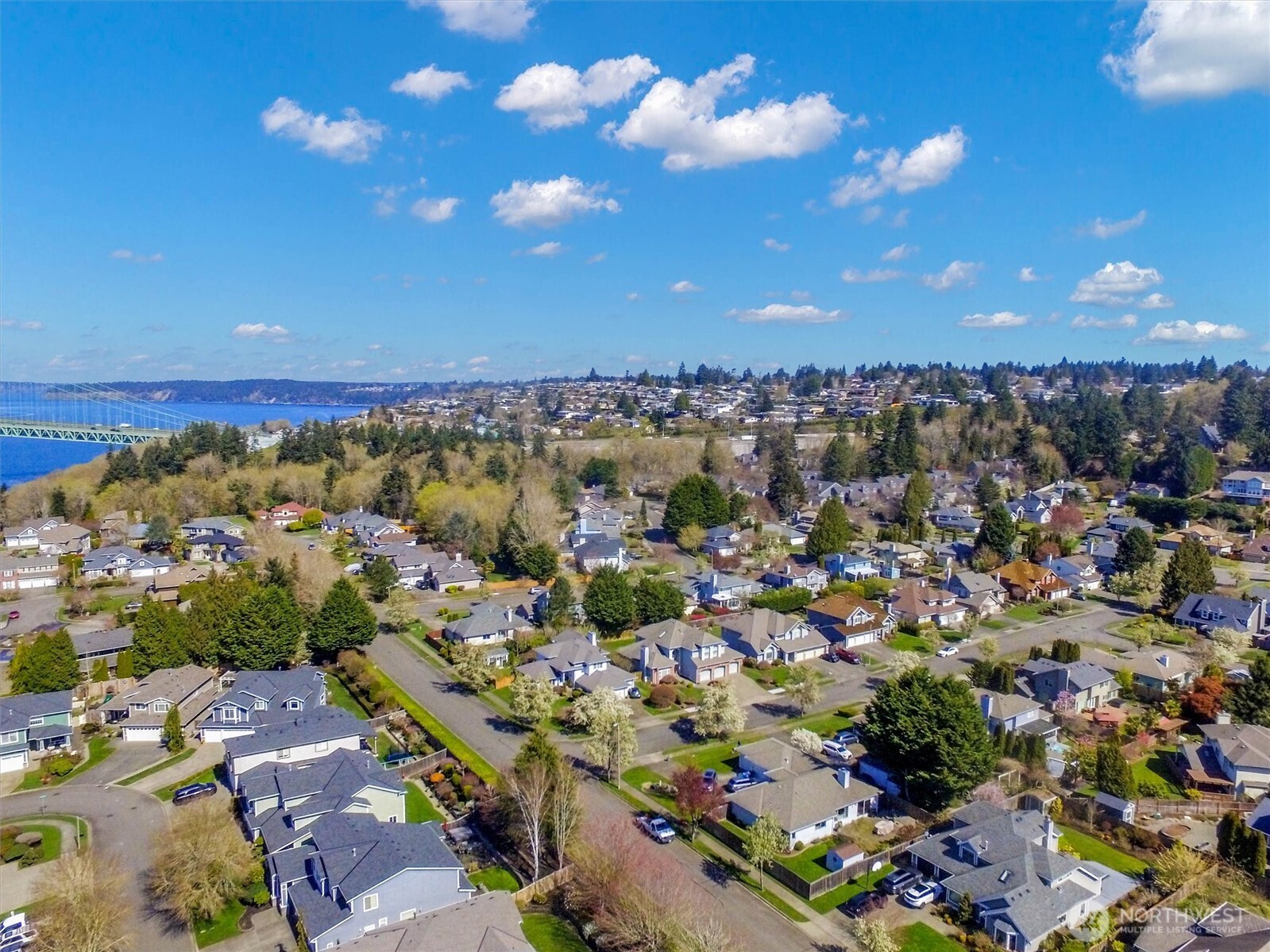 Welcome to a truly one-of-a-kind former model home in the gated community of Bridgeview Estates on Tacoma's highly sought-after West Slope. Featuring an exclusive floor plan and over-the-top versatility, this 5-bedroom residence is perfectly designed for multi-generational living, entertaining, and everyday comfort. Pride of ownership shines throughout, with extensive 2023 upgrades including a stunning new primary bath, windows, roof, furnace, A/C, and KitchenAid appliances—offering modern comfort and peace of mind for years to come. The luxurious 5-piece primary suite is a true retreat, complete with a private balcony showcasing partial Narrows Bridge views. The layout offers incredible flexibility, including a spacious 3-car insulated garage with a separated bay—ideal for a home gym, hobby space, or potential additional living area with heat access already in place. Step outside to your private backyard sanctuary, designed for year-round enjoyment. Relax or entertain under the covered tongue & groove cabana and BBQ area, or unwind on the new Trex deck. The beautifully landscaped grounds feature fruit trees, berry bushes, an herb garden, space for vegetables, a tranquil water feature, and a 3-zone sprinkler system. All of this in a prime location just minutes from Highway 16, Chambers Bay, Titlow Beach, the Narrows Bridge, Proctor District, 6th Ave, and downtown Tacoma.