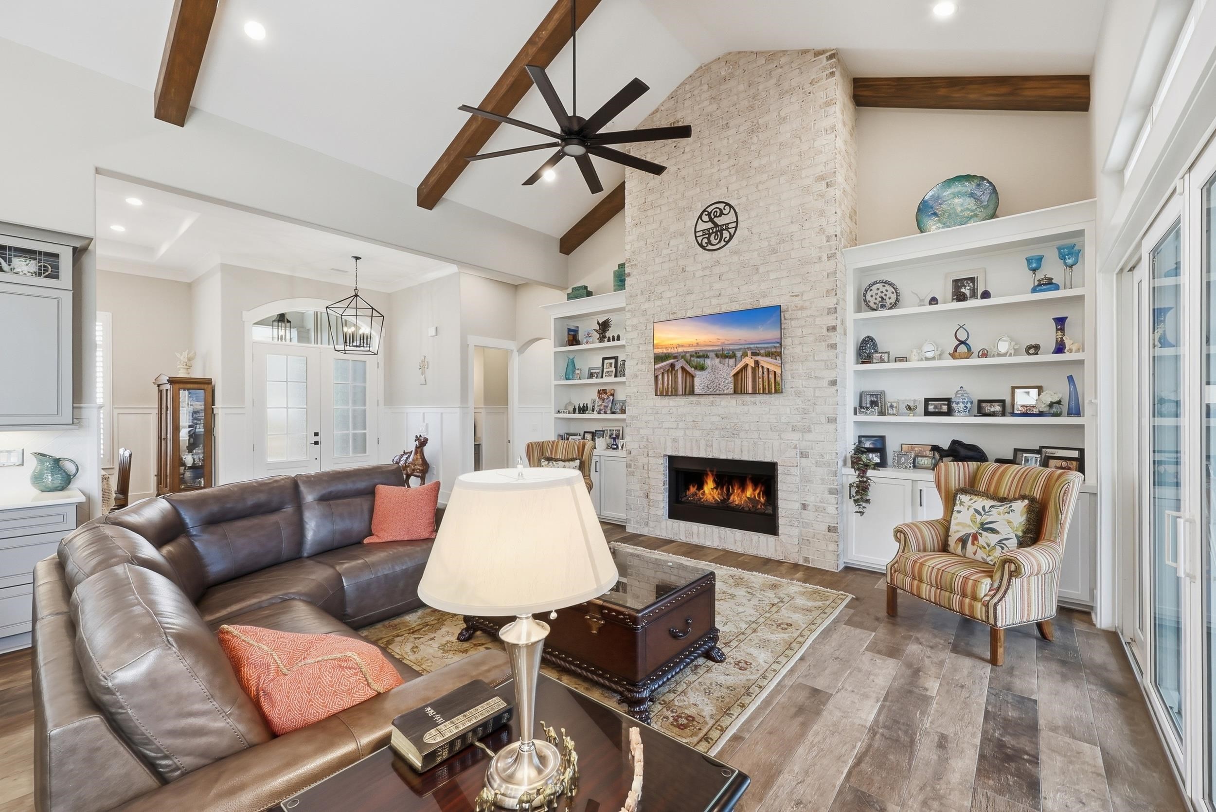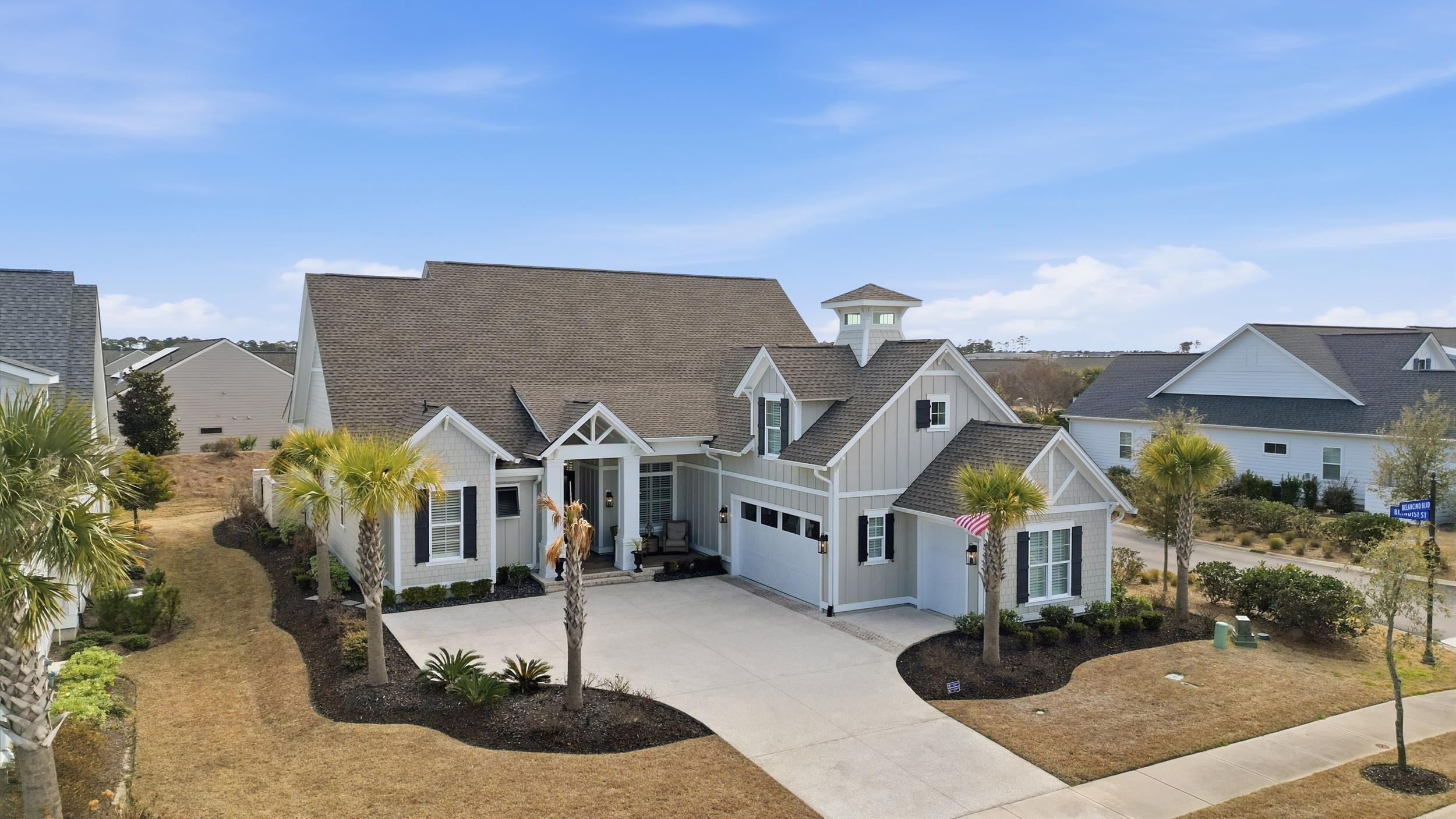 Truly Immaculate! This stunning 4BR, 4.5BA home built by one of Myrtle Beach's premier custom builders, Nations Homes, is located in the gated community of Waterside Edge - Grande Dunes. This home has been meticulously maintained by the original owners and there have been MANY UPGRADES completed throughout this property since purchasing. Ask your Realtor for a list of ALL of the upgrades! Some of the upgrades include: Top Tier Tile floors throughout entire home including front & rear porches, extended tile showers in all bathrooms, epoxy garage flooring, white melamine shelving in all closets, Outdoor Kitchen w/ Blaze appliances, upgraded granite countertops, 60 board and batten in multiple rooms, 5 Ton Rudd Dual Fuel (gas and electric) HVAC system, fenced in backyard, GE Monogram appliance package, four Samsung mounted TV's to convey, plantation shutters, custom shelving, and extended tile backsplash in the kitchen. All bedrooms have an en-suite bathroom with a half bath just off the living room for added convenience. The first floor Primary Suite has a tray ceiling, two closets w/ Melamine shelving & drawers, and a stunning Primary Bathroom. The bathroom offers a tiled shower, large soaking tub, and a beautiful dual vanity. Two guest suites are located on the first floor on the opposite side from the Primary for added privacy. The 4th Bedroom is located upstairs and has a private bathroom and additional custom shelving. Off the kitchen is a beautiful office with lots of natural light. The laundry room is situated off the garage and offers custom shelving and front-loading GE Washer & Dryer set. The exterior features are AMAZING! The screened in porch has a fireplace, mounted tv, tile floors, and shelving. Off the screened in porch is the outdoor kitchen and extended concrete pad which creates the perfect setting for a sitting area around a fire pit and views of the adjacent pond. This home is situated just steps away from the Intracoastal Waterway and the Del Webb Amenity Center. Waterside Edge - Grande Dunes is 55 community and offers homeowners access to the Grande Dunes OCEAN CLUB as well as the Del Webb amenities including a resort style pool, an indoor pool, clubhouse, fitness center, pickle ball courts, tennis courts, & more! Waterside Edge also has Day Docks on the Intracoastal Waterway that homeowners receive access to! Schedule your showing on this home today!