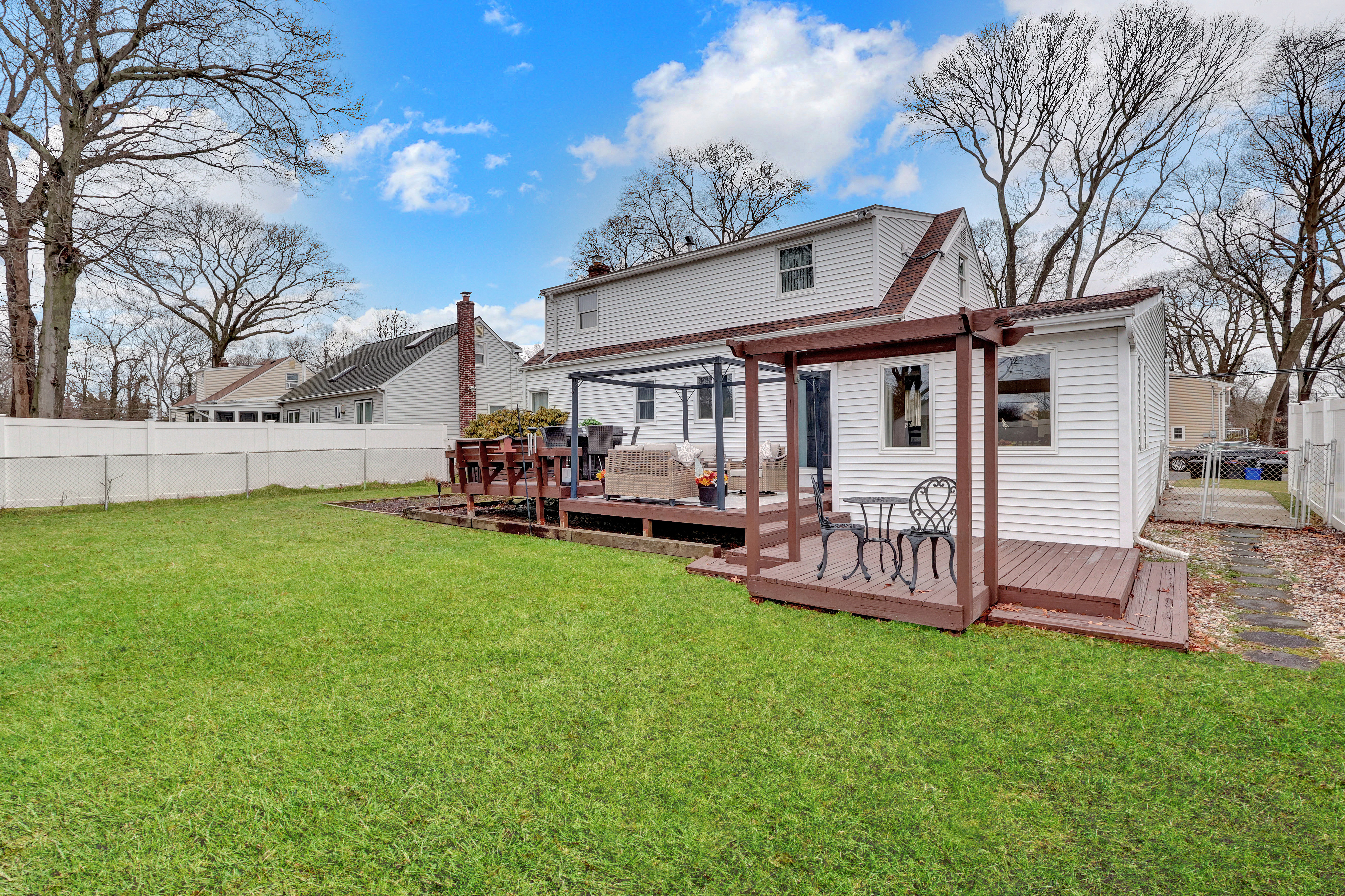 Great Expanded Cape in Beautiful Poetic Section featuring 4BRs 2Baths, Living Room, Eat-in-Kitchen w/ Center Island, Formal Dining Room, Den. Full Finished Basement, New Roof, New Hot Water Heater, CAC, In-Ground Sprinklers, 1 Car Garage w/ Loft. This Charming Home is Filled w/ Warmth and Inviting Comfort, Offering the Perfect Space for a Growing Family to Create Lasting Memories.