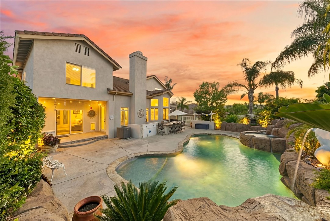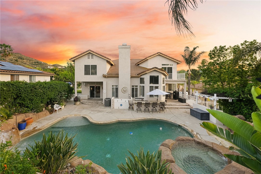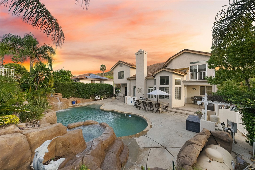 Welcome to this stunning POOL/SPA home located in the highly desirable, guard-gated community of Canyon Lake. Situated on a large, private lot on a quiet street, this expansive residence offers 4 Bedrooms PLUS a dedicated office, 4 Bathrooms and a 3-car garage!Designed for both comfort and entertaining, the home features multiple covered patios, including a front-facing patio, a side patio, and dual backyard access points. Enjoy your own private retreat with a secluded patio and a spacious deck off the primary suite.The open and inviting kitchen is equipped with granite countertops, ample cabinetry, a walk-in pantry, and large windows adorned with plantation shutters, filling the home with abundant natural light. The main level showcases beautiful wood flooring, while the upstairs features stylish LVP flooring throughout.Upstairs, you'll find three additional bathrooms, including a fully remodeled primary bathroom complete with a freestanding soaking tub, oversized walk-in glass shower, white cabinetry, shiplap accent walls, and modern black finishes. No more lugging your laundry downstairs, this home features your very own laundry chute!Step outside to your resort-style backyard, featuring a sparkling pool and spa with dramatic double waterfall features, a built-in barbecue island with refrigerator, and breathtaking sunrise and sunset views.Located in the heart of Canyon Lake, residents enjoy 24-hour guard-gated security and access to an array of amenities including boating, fishing, water sports, parks, community events, equestrian facilities, and multiple sports courts.If you've been searching for a spacious Canyon Lake pool home with exceptional features and resort-style living, this is the one.