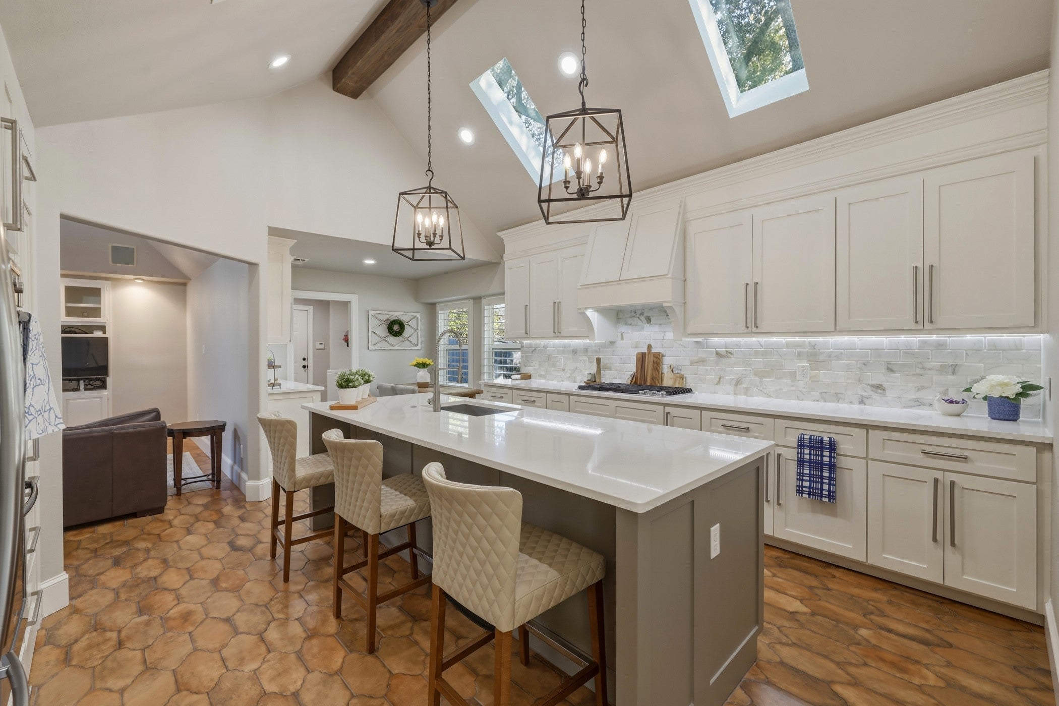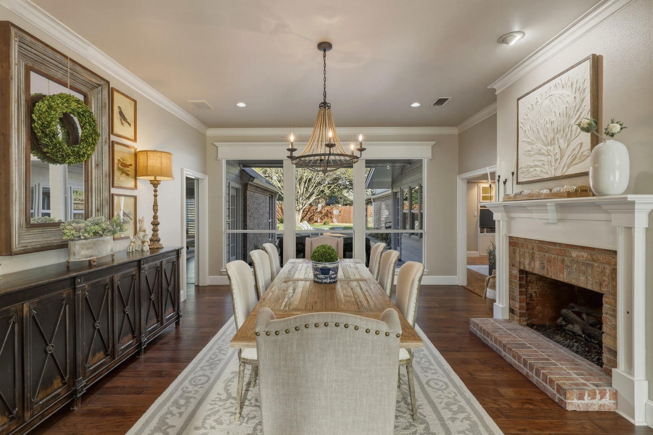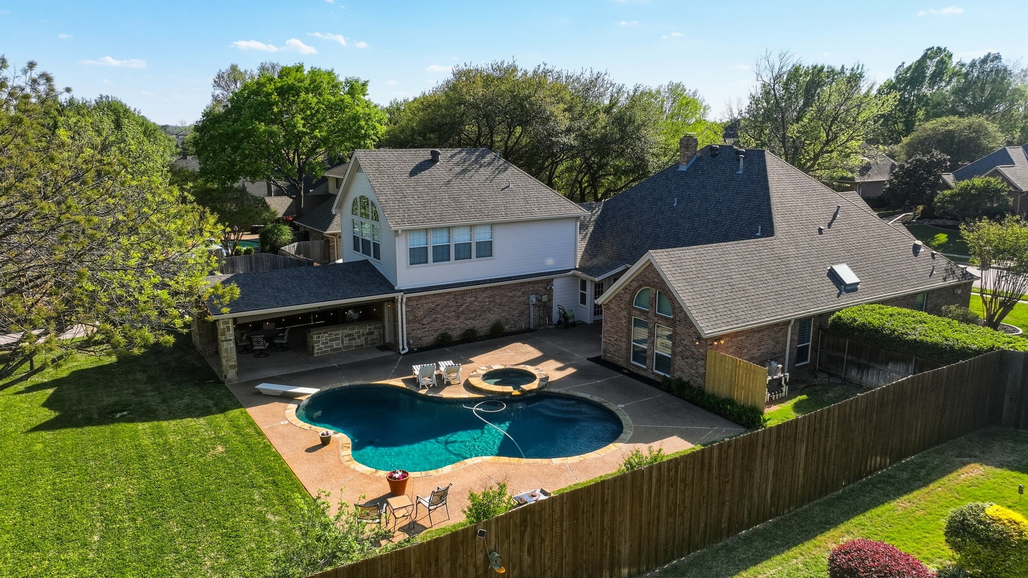 Enjoy this spacious 4-bedroom, 3.5-bathroom home with 3 fireplaces. Offering plenty of room for family and friends. The heart of the home is the Kitchen-Great room area, which features a family room, fireplace, kitchen, breakfast area combo with a sliding glass door out to the patio adjacent to the pool. Perfect for seamless entertaining and casual gatherings.
