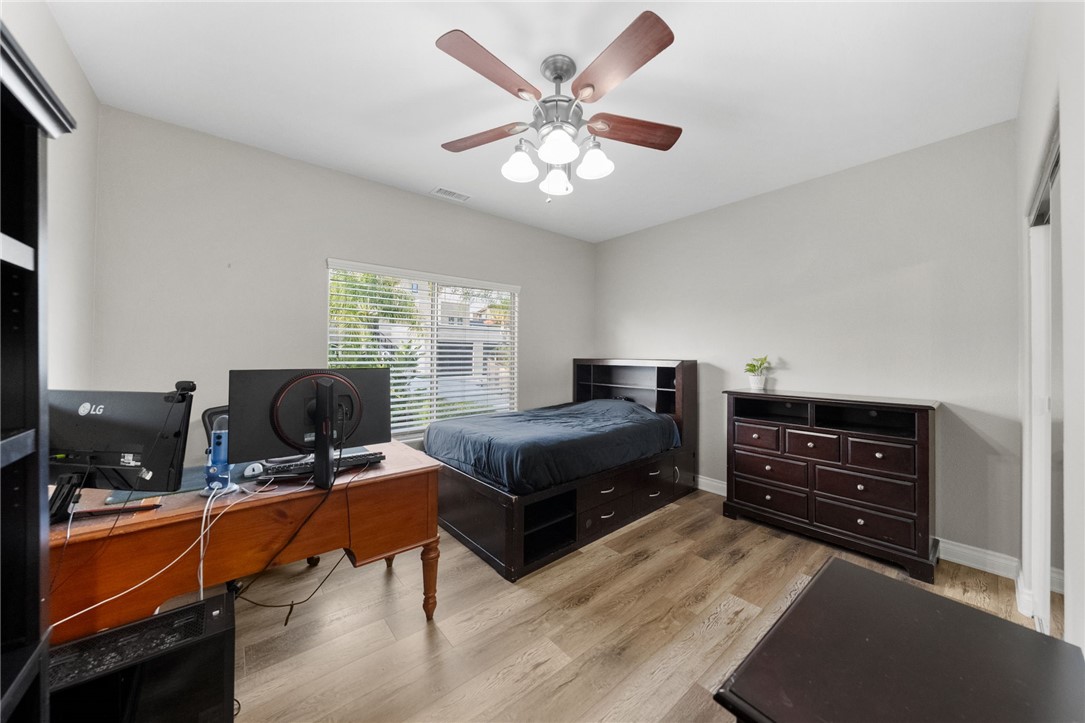 Turnkey and move-in ready! Welcome to this recently upgraded home located in a quiet Cul-De-Sac in highly sought after Village Oaks community of Chino Hills. Step inside to discover a bright, open-concept layout highlighted by soaring vaulted ceilings, a cozy brick fireplace, beautiful earthy-toned interior paint, and beautiful wood flooring. The inviting living room flows seamlessly into a kitchen and an exceptionally bright and airy dining space bathed in natural light. Elegantly upgraded kitchen counter/cabinets with backsplash. The main level also features a versatile den—currently utilized as a home office—which provides convenient access to the side yard. For added everyday functionality, a dedicated laundry room is located downstairs.Moving up to the warmly carpeted staircase to find three additional spacious bedrooms, each equipped with ceiling fans for year-round comfort. The thoughtfully designed upper hallway includes a convenient built-in workstation and extra cabinetry for abundant storage space. Additional modern comforts include beautifully updated bathrooms and recessed lighting throughout most of the interior. Low maintenance backyard. No HOA.Perfectly situated in a highly convenient neighborhood, this home offers easy access to local shopping centers and grocery stores. Enjoy an exceptional lifestyle just a short walk away from Oak Ridge Elementary School and two beautiful neighborhood parks. With excellent Chino Valley School District.