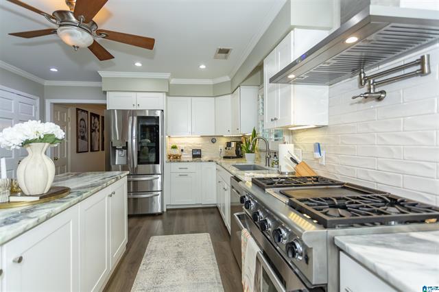 Discover this captivating home on 7.97 UNRESTRICTED acres blending country charm with modern comfort. Boasting 4 bedrooms, 3 full baths, and 2 half baths, this open-concept layout is perfect for daily living and entertaining. The kitchen features a granite island, pot filler, custom cabinetry, pantry room, and Cafe appliances.