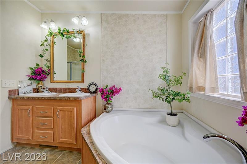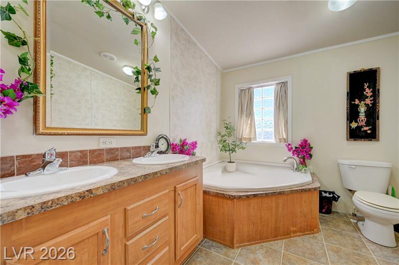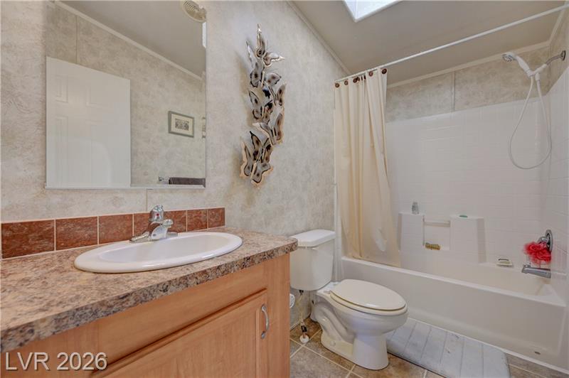 BEAUTIFUL 3-BEDROOM & TWO-BATHROOM HOME. HOME SITS ON TOP OF A HILL AND OFFERS VIEWS OF THE MOUNTAINS AND SOUTH STRIP VIEWS A COZY MANUFACTURED HOME ON A PERMANENT FOUNDATION AND CONVERTED TO REAL PROPERTY. FUNCTIONAL KITCHEN WITH LARGE DINING AREA, WOOD BURNING FIREPLACE IN THE LIVING ROOM.