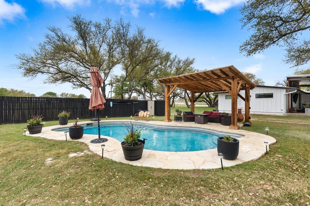 639 E Highway 71, Llano, Tx- Situated on 4.6 Acres, this fully remodeled property (2022) offers the perfect blend of comfort, functionality, and the Hill Country charm. The main home has been tastefully updated, complemented by a guest home built in 2023. Ideal for extended family, guest, or rental potential. The property is AG exempt, fully fenced, and ready for livestock with horse barn and stalls. Additional features include 2 wells, a refreshing swimming pool, and a spacious, fully covered back patio perfect for relaxing mornings or peacful evenings under the mature oak trees. Enjoy privacy and wide-open space while being just minutes from downtown Llano, where you can experience local dining, shopping, and the scenic Llano River. Move-in ready with endless possibilities. Bring your animals and make this versatile property your own.