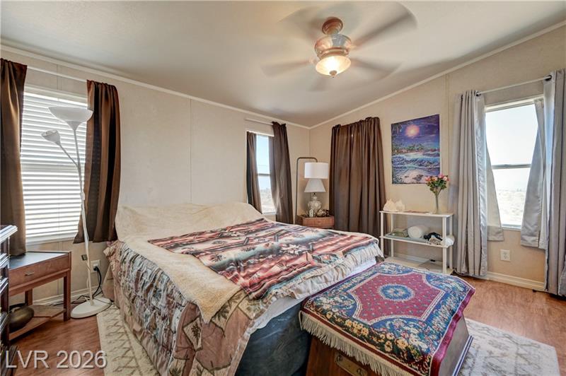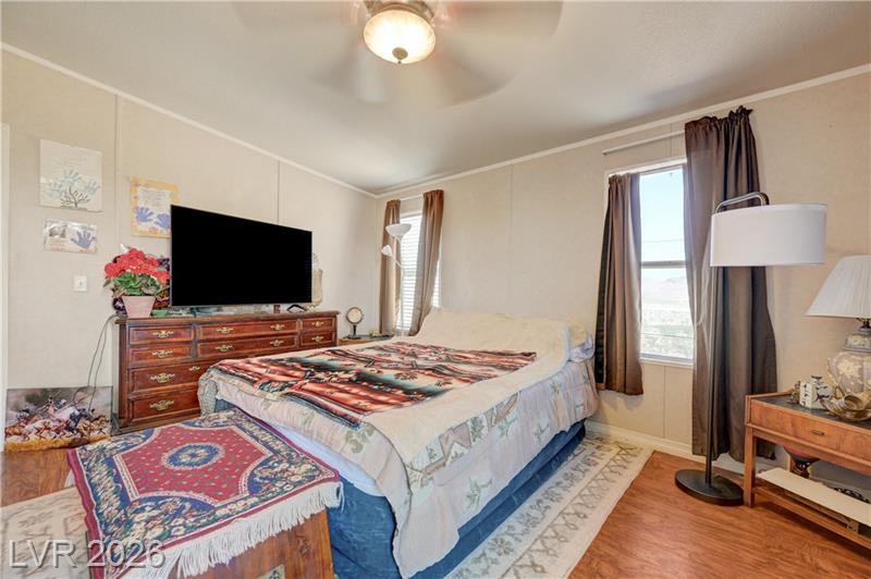 BEAUTIFUL 3-BEDROOM & TWO-BATHROOM HOME. HOME SITS ON TOP OF A HILL AND OFFERS VIEWS OF THE MOUNTAINS AND SOUTH STRIP VIEWS A COZY MANUFACTURED HOME ON A PERMANENT FOUNDATION AND CONVERTED TO REAL PROPERTY. FUNCTIONAL KITCHEN WITH LARGE DINING AREA, WOOD BURNING FIREPLACE IN THE LIVING ROOM. PROPERTY HAS ITS OWN WATER WELL AND SEPTIC TANK