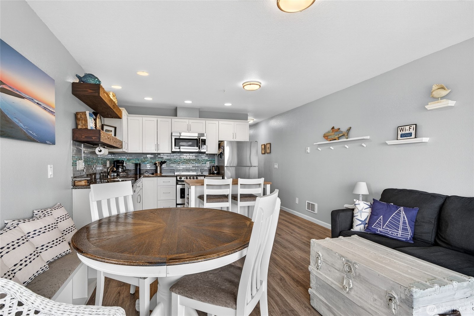 Breathtaking Ocean Views: Enjoy panoramic views of sparkling ocean from both levels of this beautiful two-story unit. Situated in a sought-after location, This condo is a stones throw to top rated restaurants, boutique shops, and local attractions. easy walk to beach, boardwalk and the Discovery Trail.