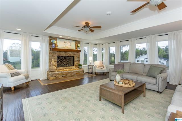 Welcome spring in this spacious 4,800 sq. ft. home built for comfortable living and entertaining. The inviting kitchen opens to a stunning bonus room with exposed beams and a cozy fireplace. Upstairs, the oversized primary suite offers a peaceful retreat with a generous bath. The walk-out lower level features additional bedrooms, a second kitchen, and a bright rec space perfect for guests or game nights. Set on 1.25 acres, one of the largest lots in the neighborhood, youll enjoy privacy and a beautiful, park-like setting as everything blooms. Ready for your personal touch! Roof 1 year old. Purchaser to verify all information.