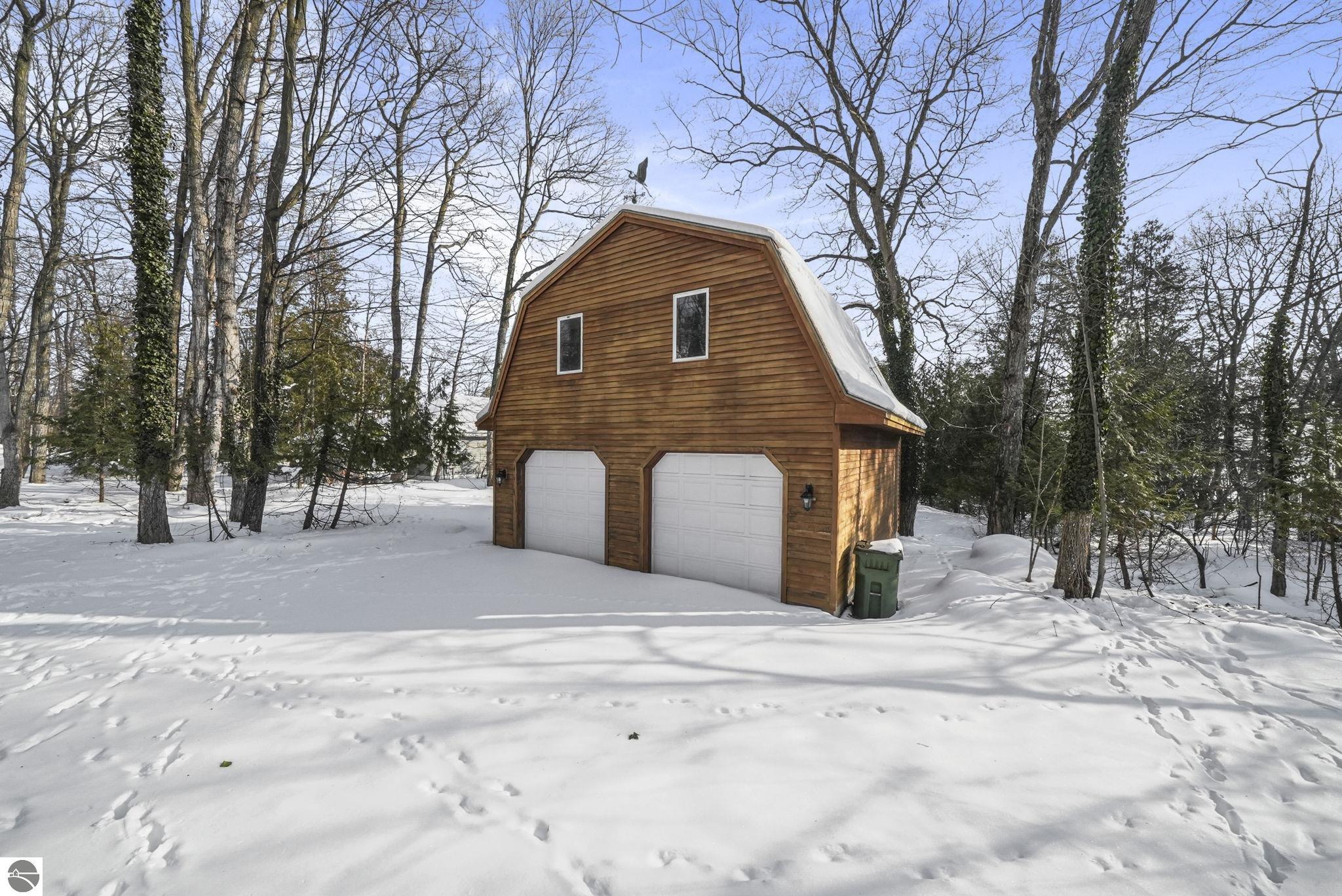 Tucked along the picturesque West Grand Traverse Bay, just south of Suttons Bay, is this charming 4 bedroom, 3 bath Lake House with 100 feet of direct private frontage. Enjoy incredible sunrises over clear blue waters, and make lifetime memories on the sandy protected beach. Water views abound from the waterside deck and nearly every room in the main house. The large living space above the two car detached garage is great for guests with a kitchenette and private bathroom. Features include; wood floors and beams, a cozy wood burning fireplace, walk-in closets, vaulted ceilings in the upper level, and a large unfinished walkout lower level for storage and beach toys. Don't miss this opportunity to make this your dream getaway or year-round residence.