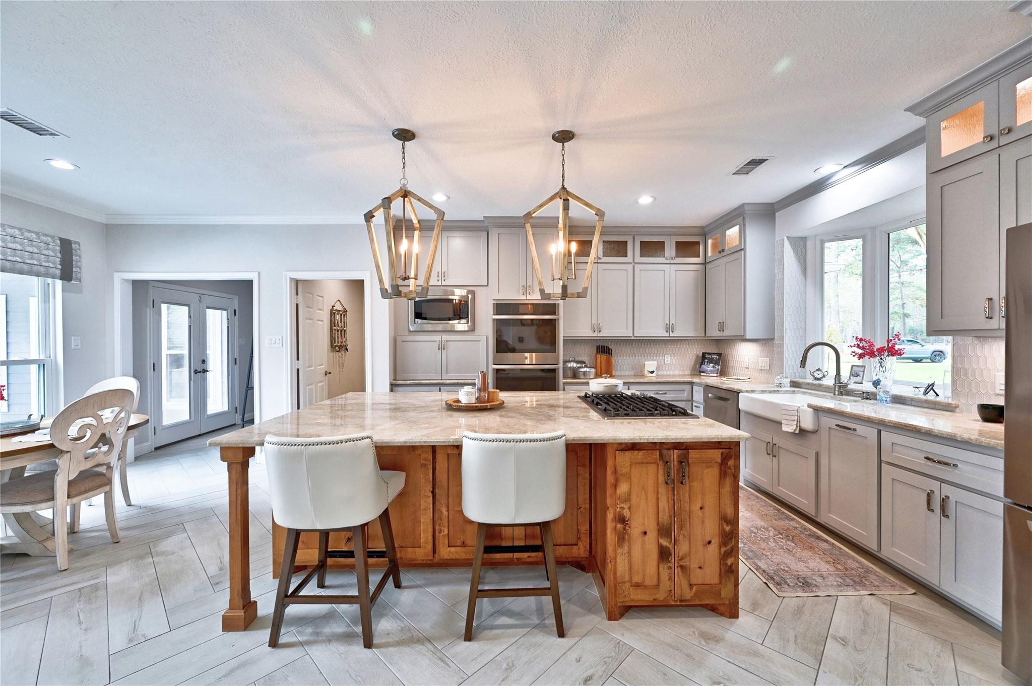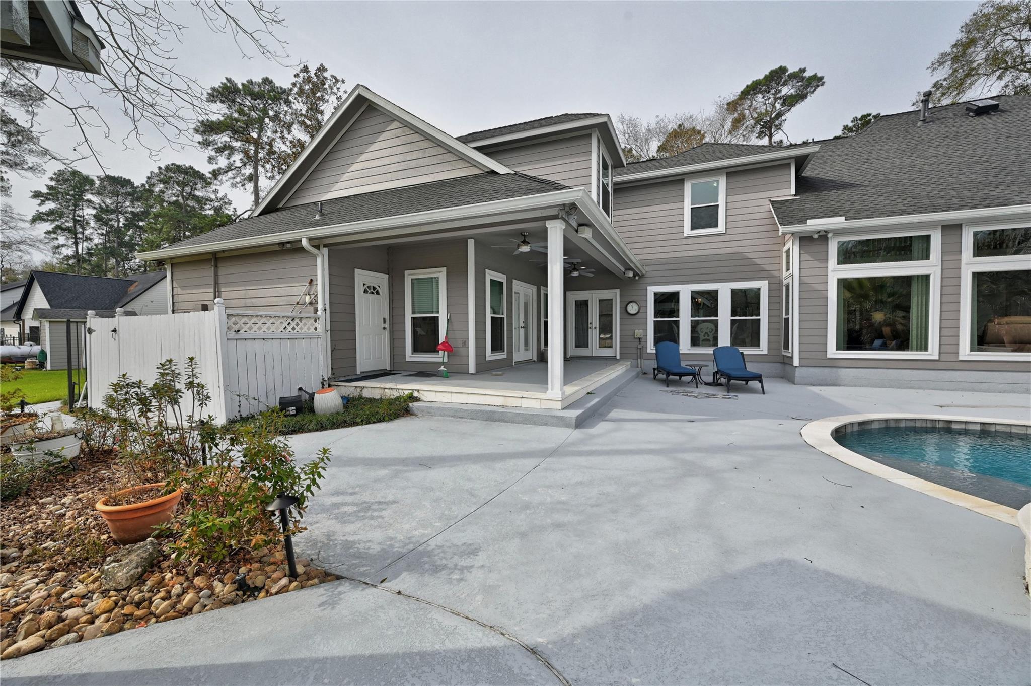 Welcome to this beautifully updated and thoughtfully designed property! All on 3 acres, this 4,371 sq.ft. home offers 4 generously sized bedrooms and 3/2 bathrooms. This home blends comfort, functionality, and upscale features across its spacious layout. Multiple flexible spaces include a private office and a upstairs game room, ideal for work, hobbies or other possibilities . The heart of the home is its recently renovated kitchen, showcasing custom cabinetry, generous quartz island & counters , double oven, gas cooktop, all opening to the breakfast and living area. Two inviting living areas provide ample room for relaxing or entertaining. Outdoor living truly shines with a covered patio, Pebble Tec pool & hot tub, outdoor kitchen and a 20x30 SHOP with fenced in garden area. Notable upgrades include New Roof, New Windows,3 New Heat & A/C units, 2 New Water Heaters, and MORE! Low Tax Rate, No MUD, and On Well & Septic. Located on a private road!
