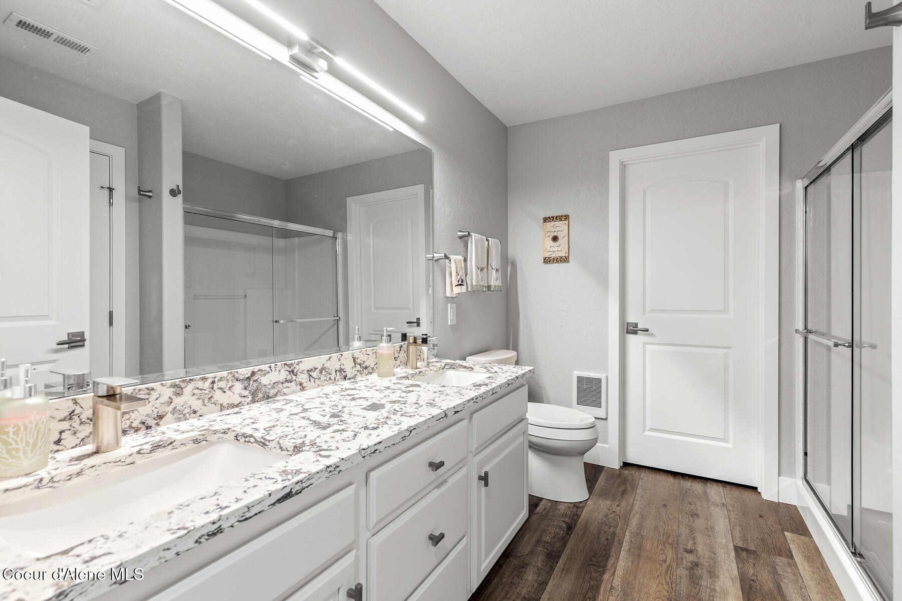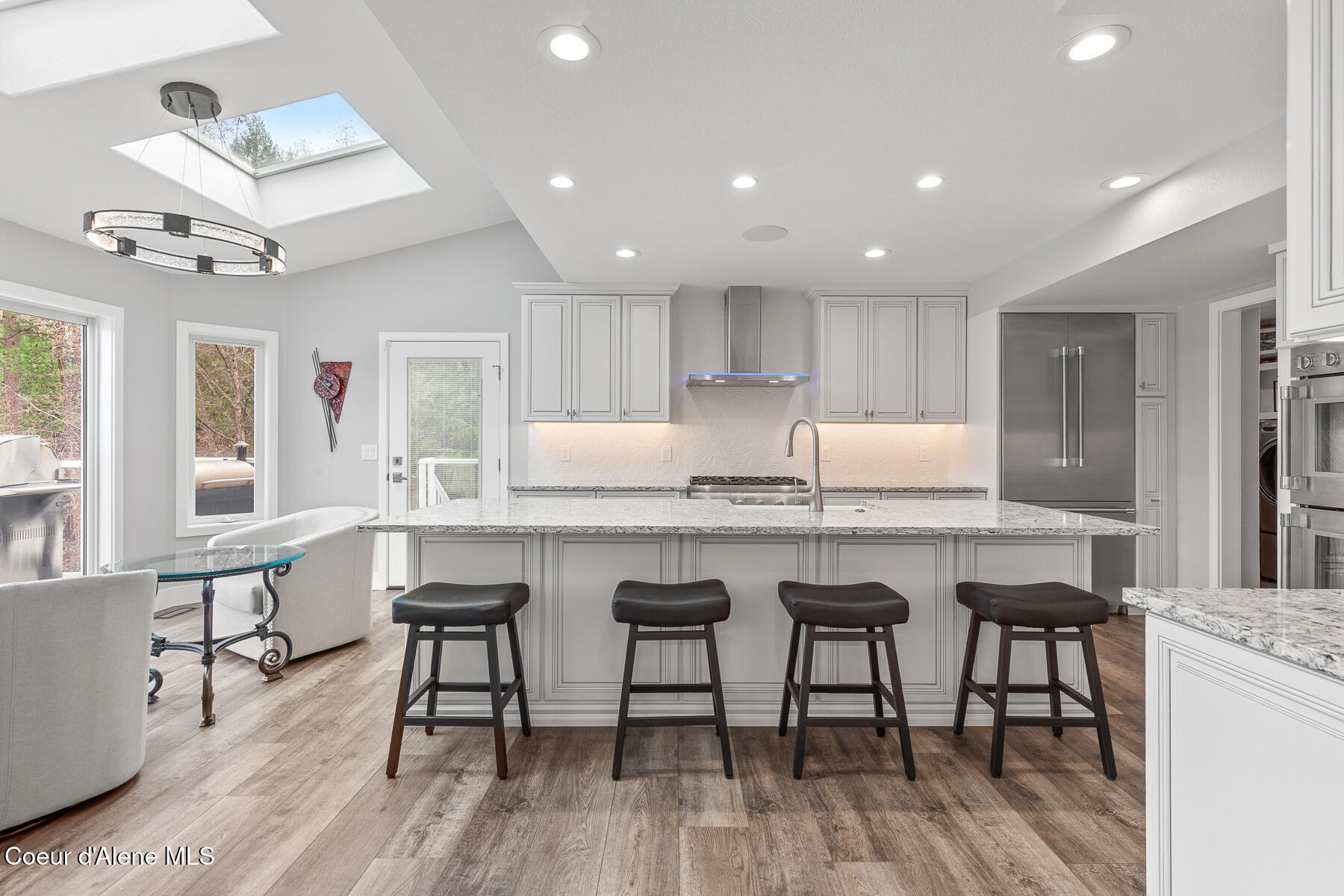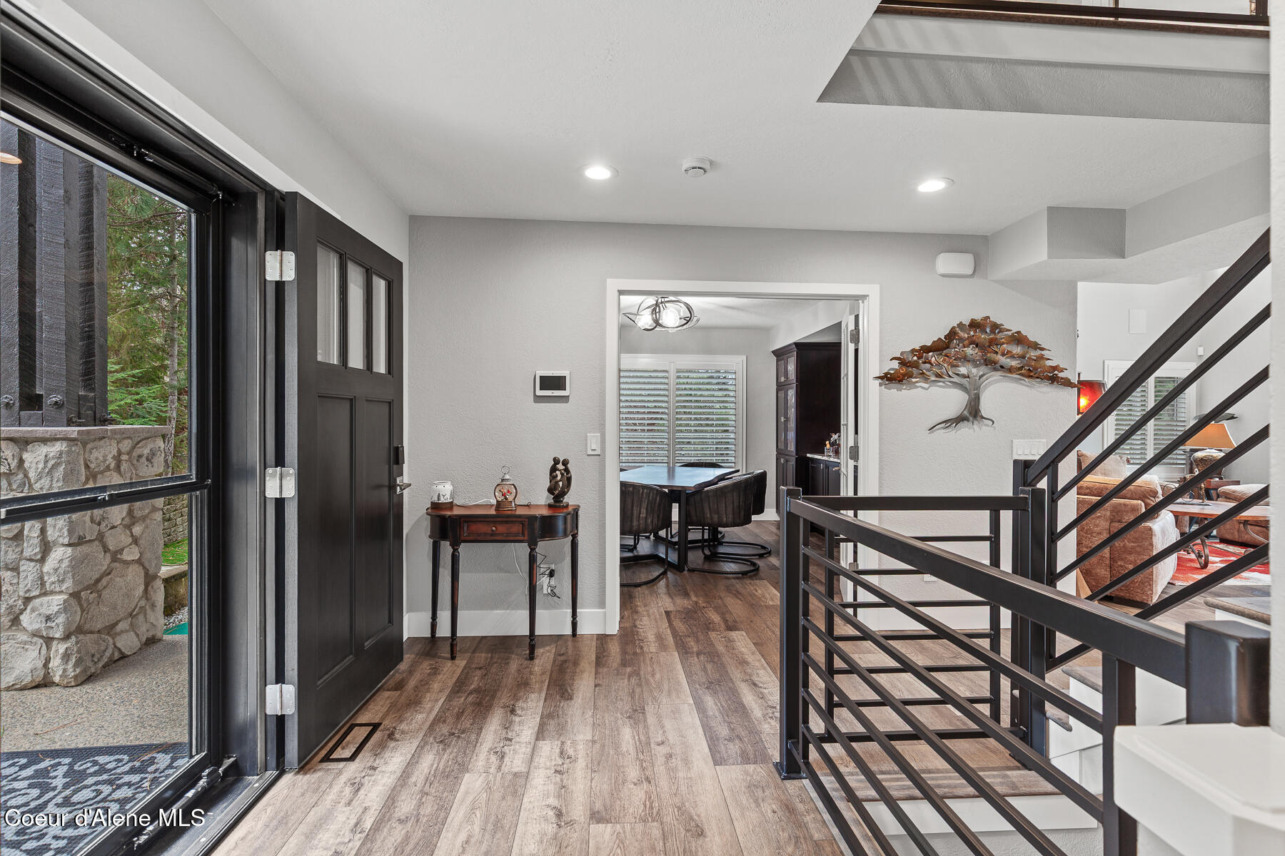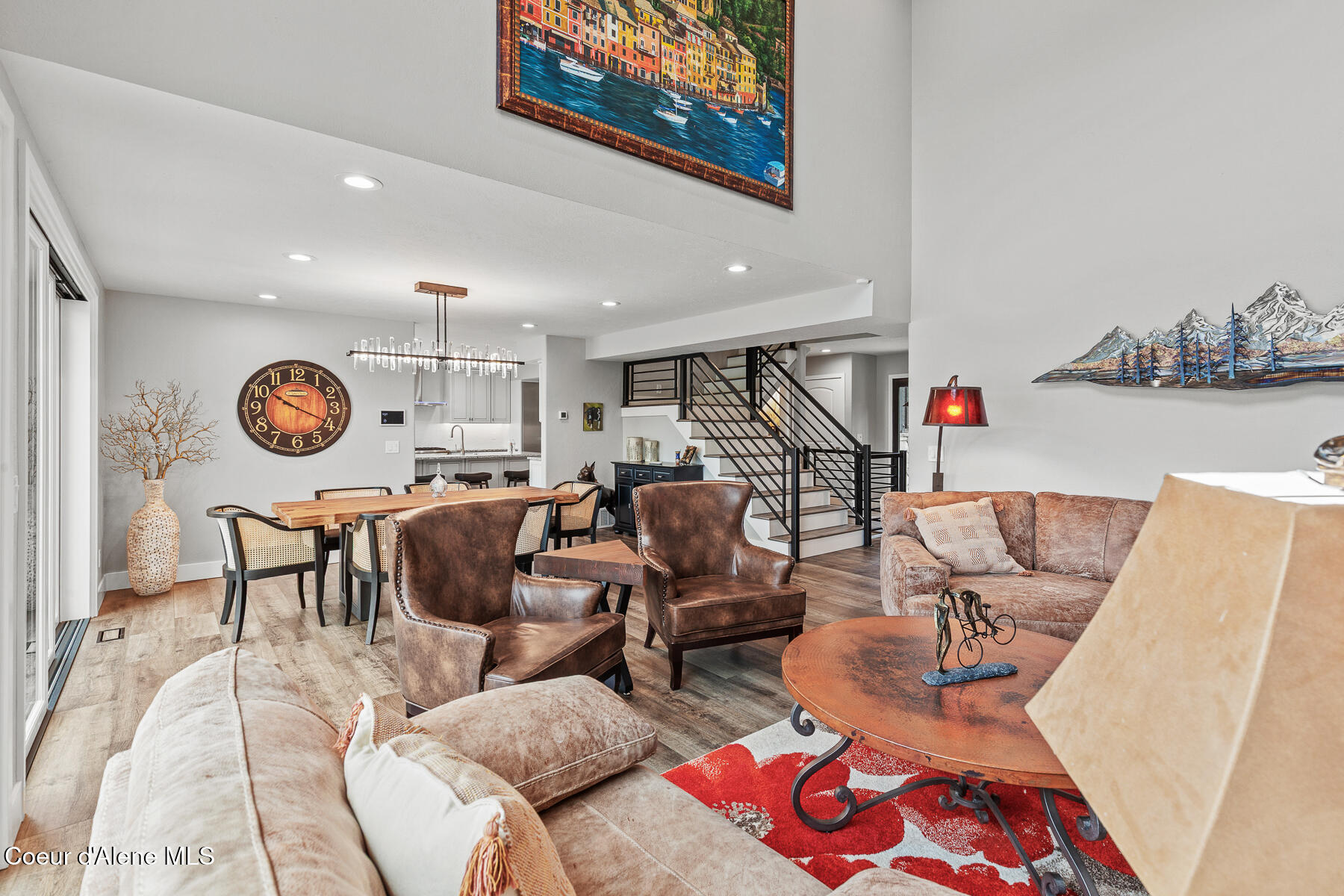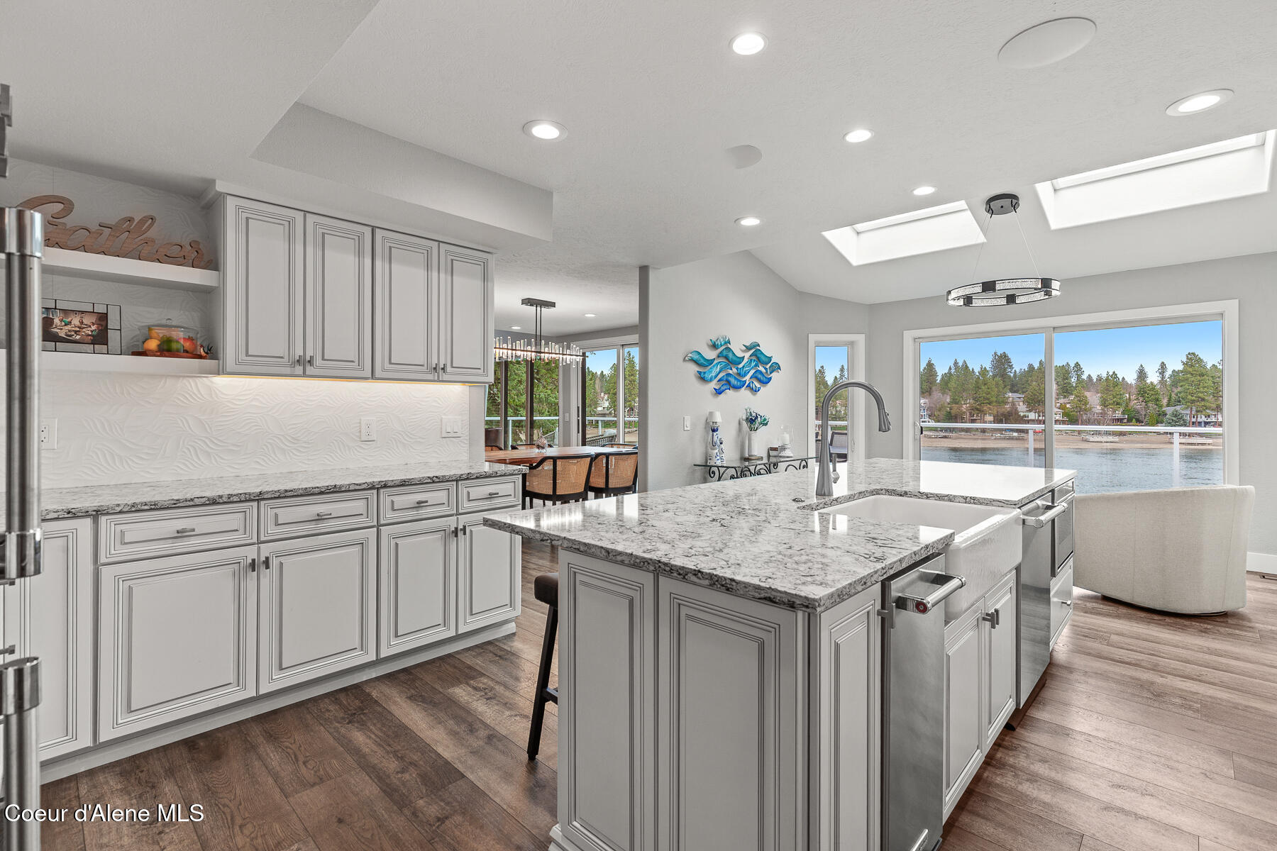 Wake up to sweeping river views and deep-water access from this beautifully remodeled waterfront estate set on over one fully fenced, usable acre with approximately 100 feet of shoreline. Ideally located just minutes from Coeur d'Alene and Post Falls, the property also offers convenient access to Spokane International Airport approximately 35 minutes away. The home underwent a fully custom remodel in 2023, with thoughtful upgrades throughout the interior and exterior. A detailed list is available upon request. Spacious living areas are designed for both everyday living and entertaining, highlighted by an impressive recreation/family room with wet bar and heated, covered walk-out access. The chef's kitchen features Thermador appliances and a butler's pantry, creating an ideal space for cooking, gathering, and hosting. Additional upgrades include power blinds, two laundry areas, a Control4 smart home system, automated whole-home and shop generator, and a new HVAC system. Outdoor living is equally impressive with expansive decks, a large dock and boardwalk with boat lifts, and a relaxing hot tub overlooking the water. A separate 36' x 40' heated shop with private entrance provides exceptional flexibility for storage, workspace, or hobby use, along with additional storage throughout the property. The property is being offered fully furnished, with the exception of select personal pieces and artwork, creating an exceptional opportunity for a turnkey waterfront retreat.