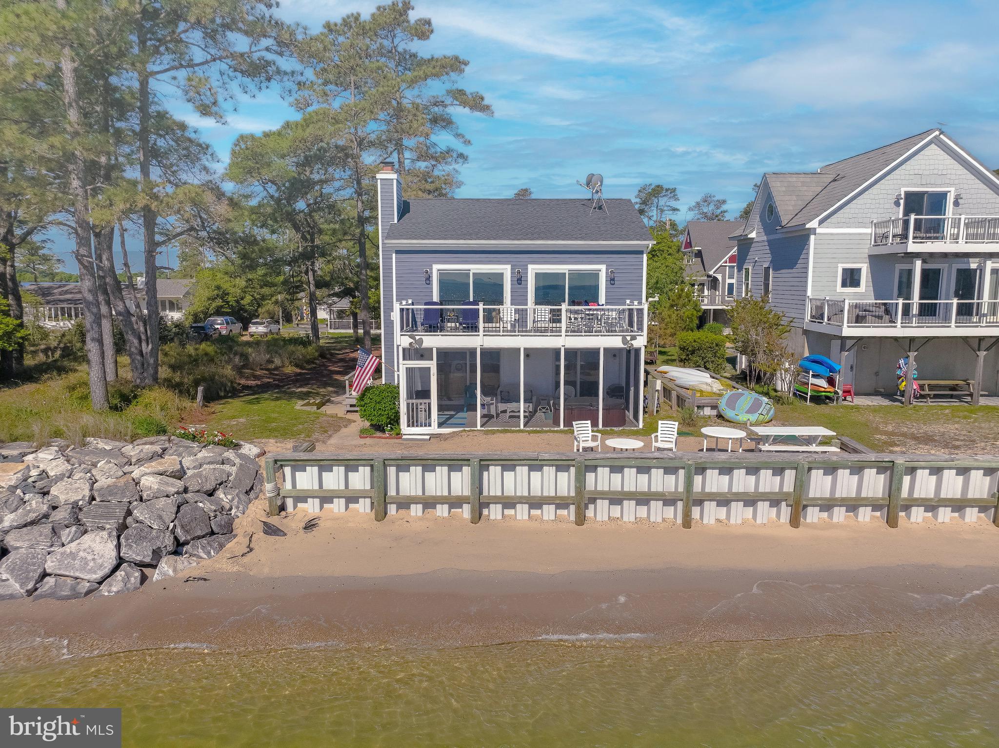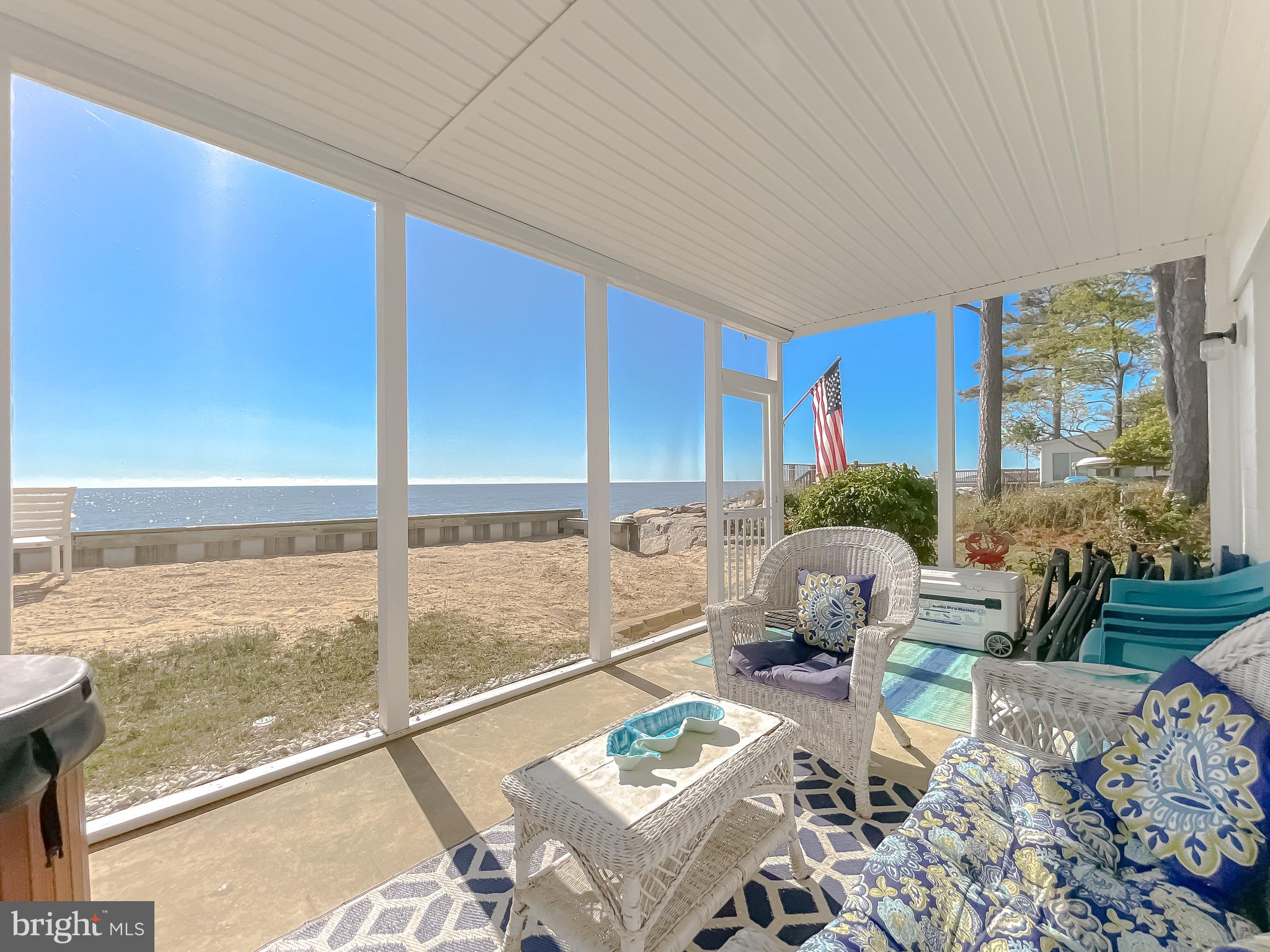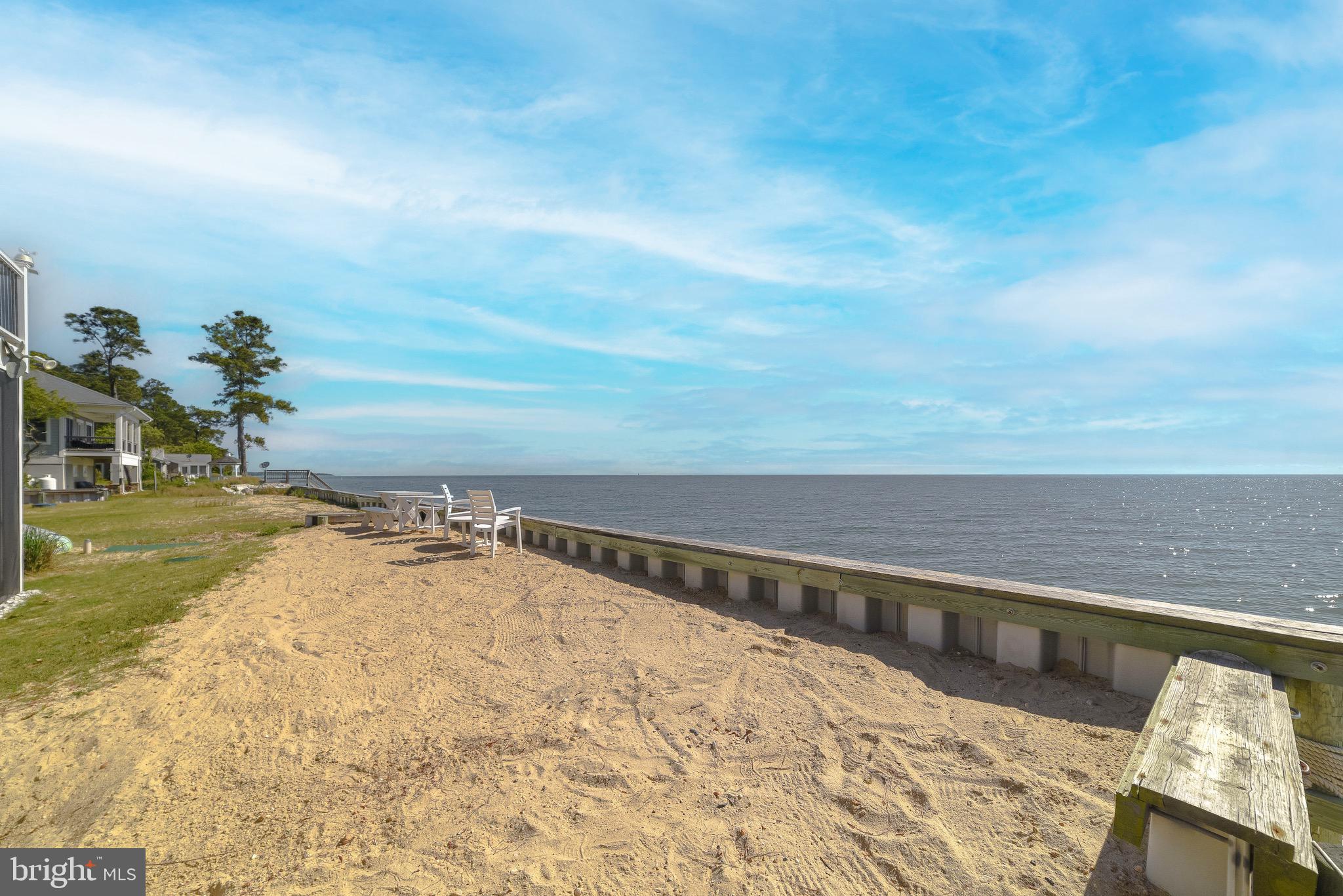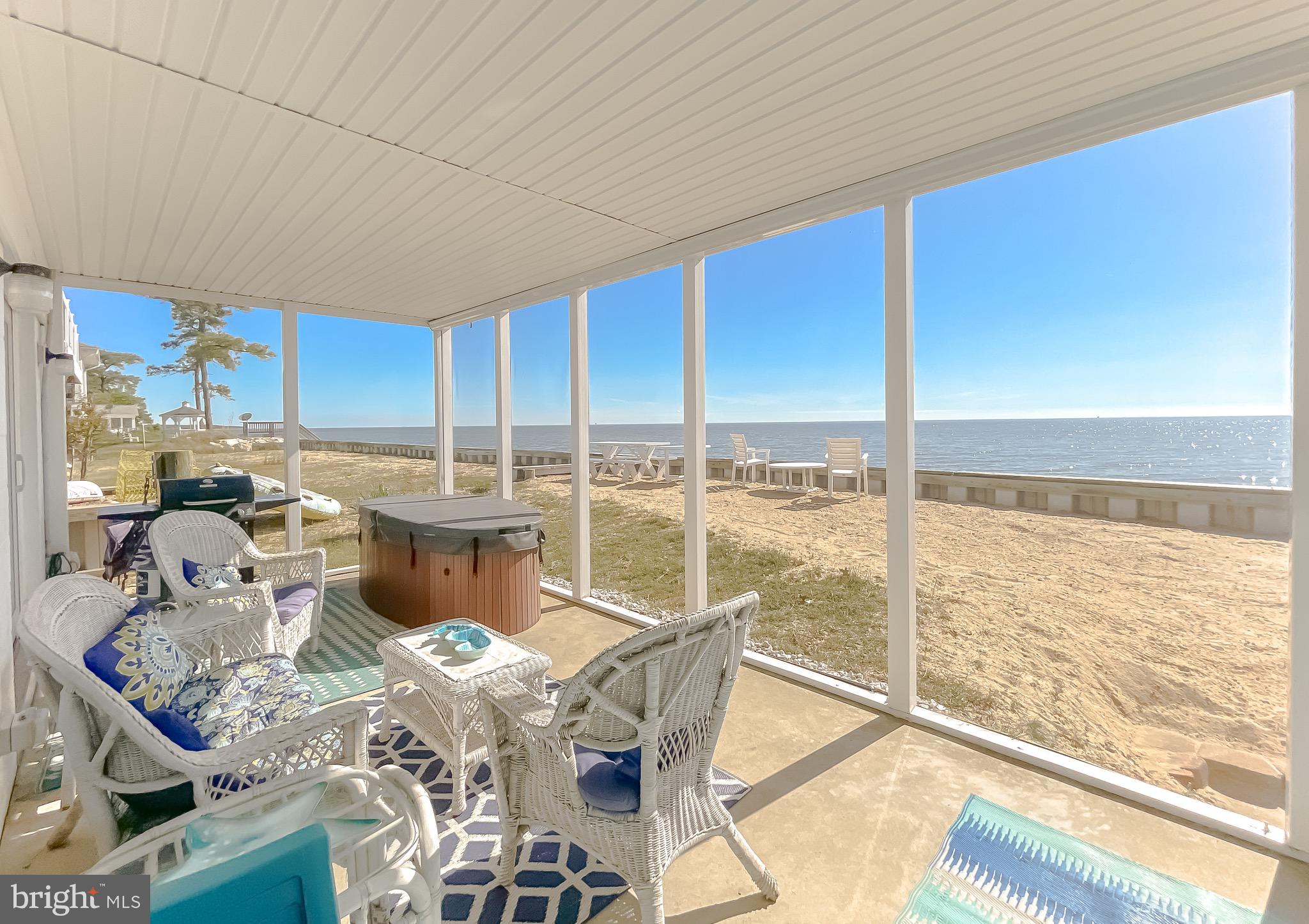 Updated photos coming soon!Wake to the soft glow of sunrise spilling across the Chesapeake Bay and end your evenings watching the sky melt into watercolor reflections over the water. Nestled in the heart of Scotland, this exceptional Bayfront retreat captures sweeping, unobstructed views and the quiet serenity only true waterfront living can provide — all secured by a brand-new seawall for lasting peace of mind.Walls of windows invite the outside in, filling the home with natural light and endless horizon views from multiple vantage points. The living spaces feel open, airy, and effortlessly connected — designed for both intimate mornings and memorable gatherings by the water.Step onto the expansive Trex and vinyl balcony and breathe in the salt air as boats drift by in the distance. Slip into the hot tub on the enclosed porch and let the day melt away beneath a painted evening sky. With direct beachfront access, spontaneous sunset strolls and days spent out on the Bay become part of everyday life. A spacious two-car garage adds comfort and convenience to this peaceful coastal escape.15370 Holly Drive is more than a home — it’s a private waterfront sanctuary where time slows, views stretch endlessly, and every day feels like a getaway. Chesapeake Bay living at its most magical.