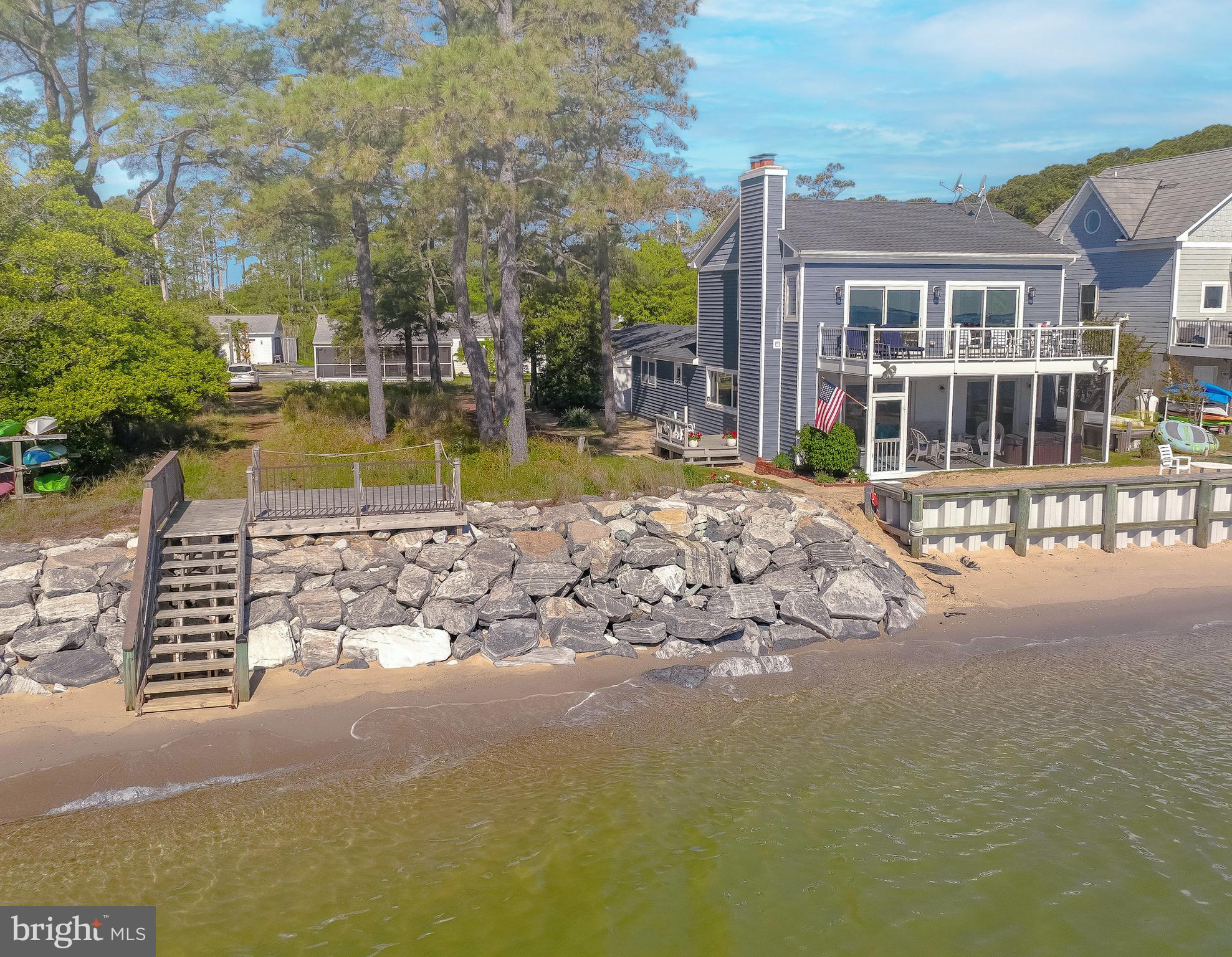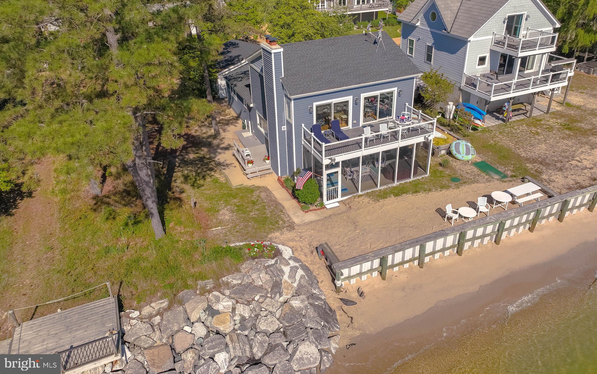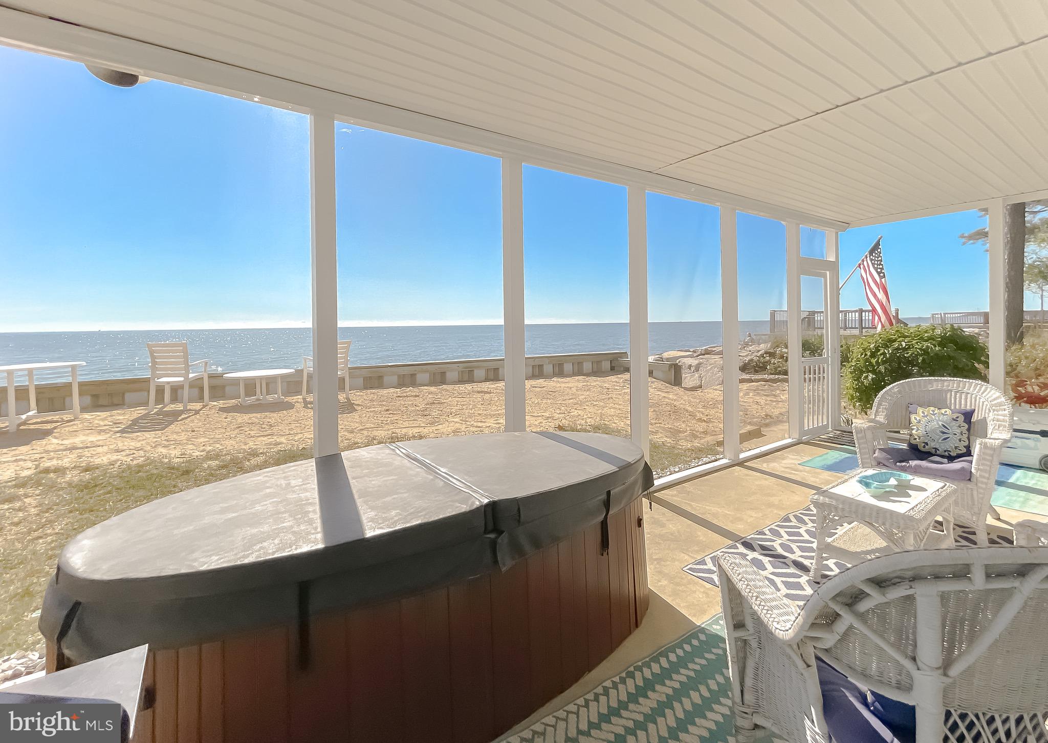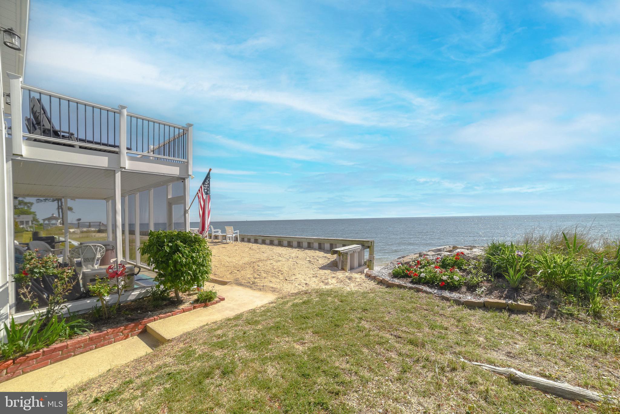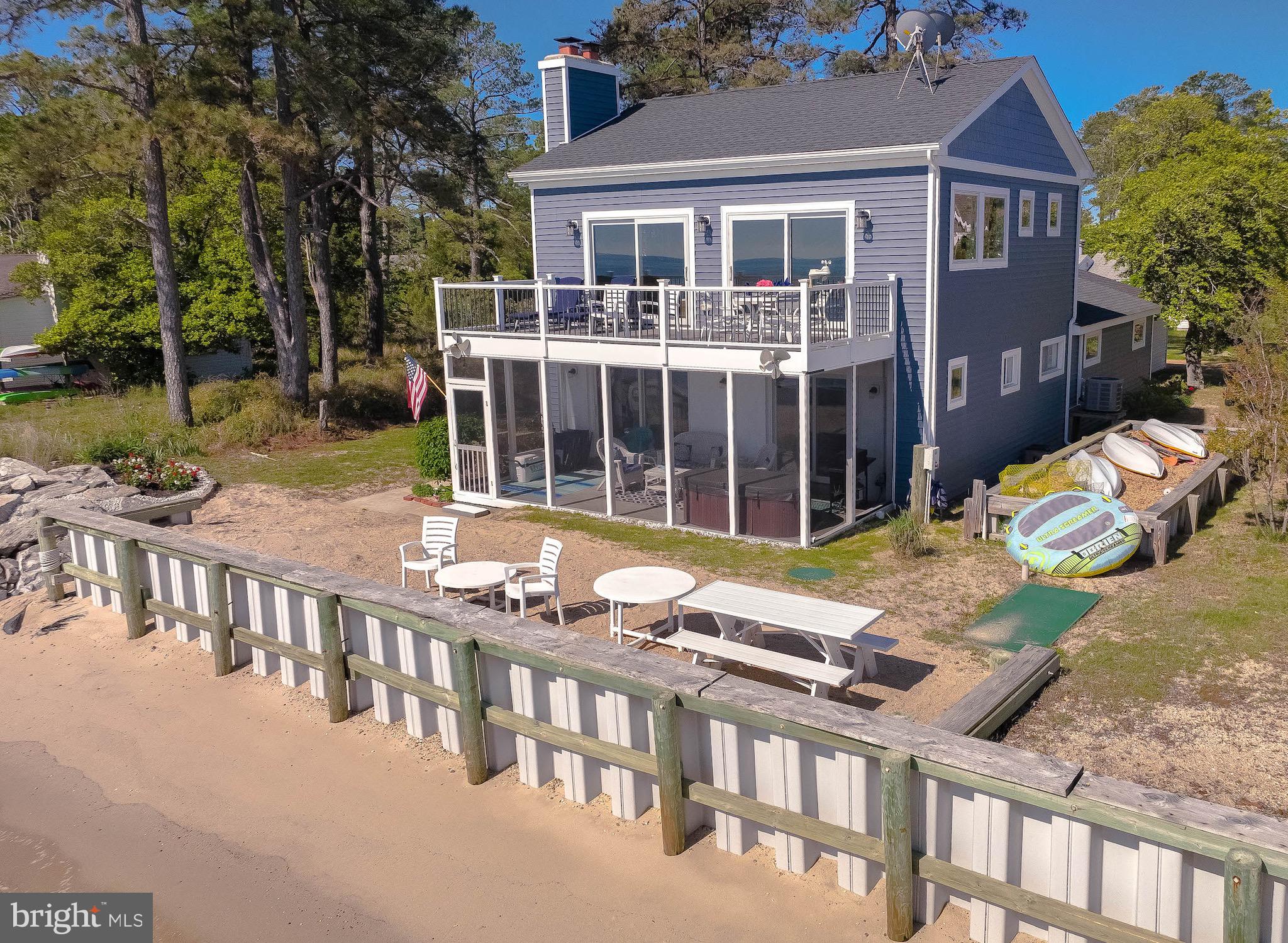 Updated photos coming soon!Wake to the soft glow of sunrise spilling across the Chesapeake Bay and end your evenings watching the sky melt into watercolor reflections over the water. Nestled in the heart of Scotland, this exceptional Bayfront retreat captures sweeping, unobstructed views and the quiet serenity only true waterfront living can provide — all secured by a brand-new seawall for lasting peace of mind.Walls of windows invite the outside in, filling the home with natural light and endless horizon views from multiple vantage points. The living spaces feel open, airy, and effortlessly connected — designed for both intimate mornings and memorable gatherings by the water.Step onto the expansive Trex and vinyl balcony and breathe in the salt air as boats drift by in the distance. Slip into the hot tub on the enclosed porch and let the day melt away beneath a painted evening sky. With direct beachfront access, spontaneous sunset strolls and days spent out on the Bay become part of everyday life. A spacious two-car garage adds comfort and convenience to this peaceful coastal escape.15370 Holly Drive is more than a home — it’s a private waterfront sanctuary where time slows, views stretch endlessly, and every day feels like a getaway. Chesapeake Bay living at its most magical.