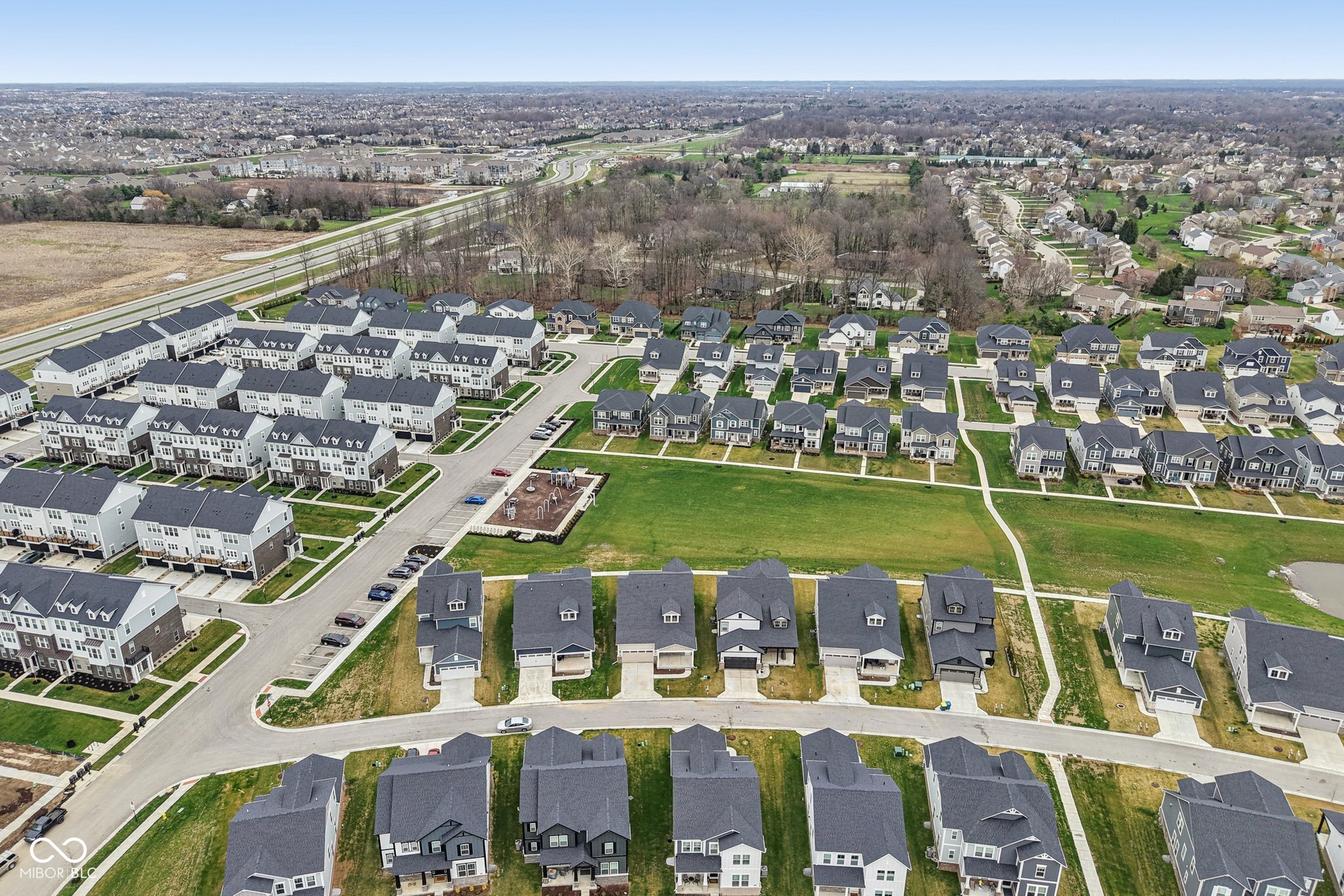 Move-in ready 5 bedroom home for sale in Carmel, Indiana located in the sought-after Ambleside community, featuring a finished basement, main level bedroom, and over 100,000 in upgrades. Built in 2024, this home offers 3 separate living areas ideal for modern living, entertaining, and multi-generational needs. The main level features an open-concept layout with a spacious living room, fireplace, and a designer kitchen with quartz countertops, 42-inch cabinetry and a full gas built-in appliance package including cooktop, chimney hood, and wall oven with microwave, plus a butler's pantry for added prep space and storage. The breakfast area and dining room provide flexibility for everyday living and hosting, while the main-level bedroom with full bath is perfect for guests, a private office, or in-law quarters. The covered patio extends your living space outdoors, creating an easy flow for relaxing or entertaining. Upstairs, a versatile loft offers a second living area and separation between the owner's suite and 3 additional bedrooms. The primary suite features a spacious layout, walk-in closet with custom shelving, dual vanities, and a spa-inspired bath with an oversized tiled walk-in shower, along with upgraded finishes including quartz and granite surfaces, rectangular sinks, comfort-height toilets, and wood-look tile details. The finished basement adds even more living space with a large recreation area and full bathroom, ideal for a home gym, media room, or play space. Additional highlights include an upstairs laundry room, luxury vinyl plank flooring throughout the main areas, mudroom dropzone, modern black accents, and a cohesive, designer-selected palette throughout. The home is equipped with smart home technology, Zinga's Blinds, enhanced with 40 LED lights, TV prewire, decorative switch upgrades, and Energy Star efficiency. This home offers transferable builder warranties including 2-year, 5-year, and 10-year coverage for added peace of mind.