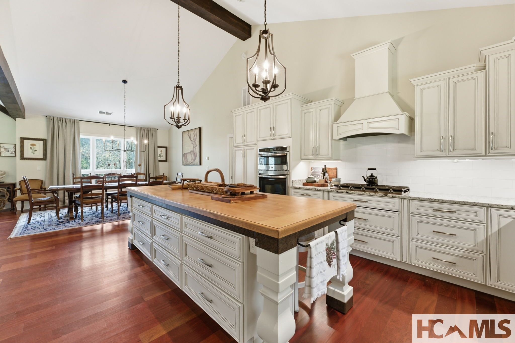 Discover unparalleled mountain luxury in Holly Berry Estates, a serene 430-acre private community nestled at the base of Whiteside Mountain in the heart of North Carolinas Blue Ridge. This exceptional 4-bedroom, 4-bath home is perfectly positioned between the charming towns of Highlands and Cashiers, offering the ultimate blend of privacy, convenience, and authentic mountain living.The main level welcomes you with a premium open-concept design, showcasing rich Brazilian Cherry hardwood floors that flow throughout the expansive living spaces. The chefs kitchen impresses with beautiful granite countertops, while the spacious living area features a dramatic stone wood-burning fireplace beneath soaring vaulted ceilings accented with warm wooden beams.This level includes two primary suites for ultimate convenience and a versatile bonus roomideal for a home office, den, or additional sleeping quarters. Step outside to the generous covered deck, where you can savor sweeping mountain and lake views of pristine Holly Berry Lake. Whether enjoying your morning coffee or hosting evening gatherings, this deck is the perfect vantage point to take in the beauty of the Blue Ridge Mountains.The lower level expands your living options with additional bonus rooms, a second full living room, a second kitchen, and a large recreation roomperfect for guests, multigenerational living, or entertaining.Additional highlights include a 2-car garage on the main level, plus an extra garage and shop on the lower level, providing ample space to store your UTV or side-by-side. The home sits on a private 1.59-acre lot with room to roam and enjoy cool mountain summers, plus access to your very own private dock on Holly Berry Lake.The property features a 22kW Generac generator, ensuring year-round comfort and peace of mind. Holly Berry Estates offers two private lakes ideal for swimming, fishing, canoeing, and picnicking, along with scenic hiking and biking trails. These trails wind through the community and connect to adjacent Nantahala National Forest lands, offering stunning views of Whiteside Mountain and access to its breathtaking rock face.