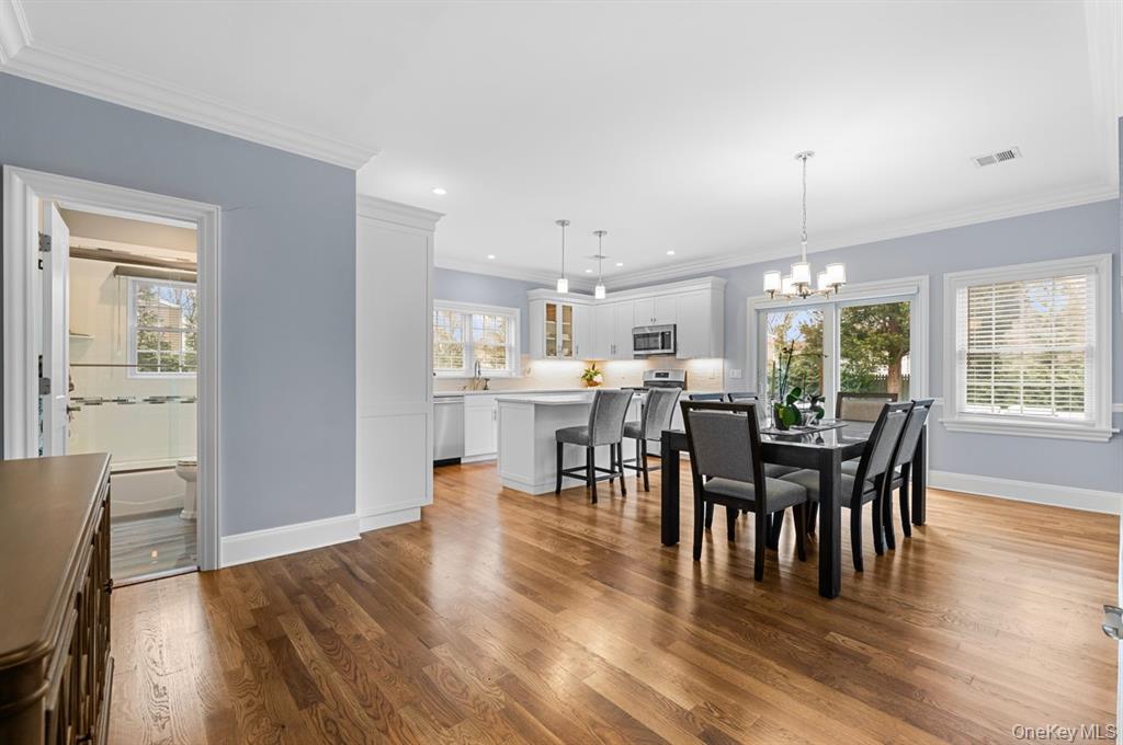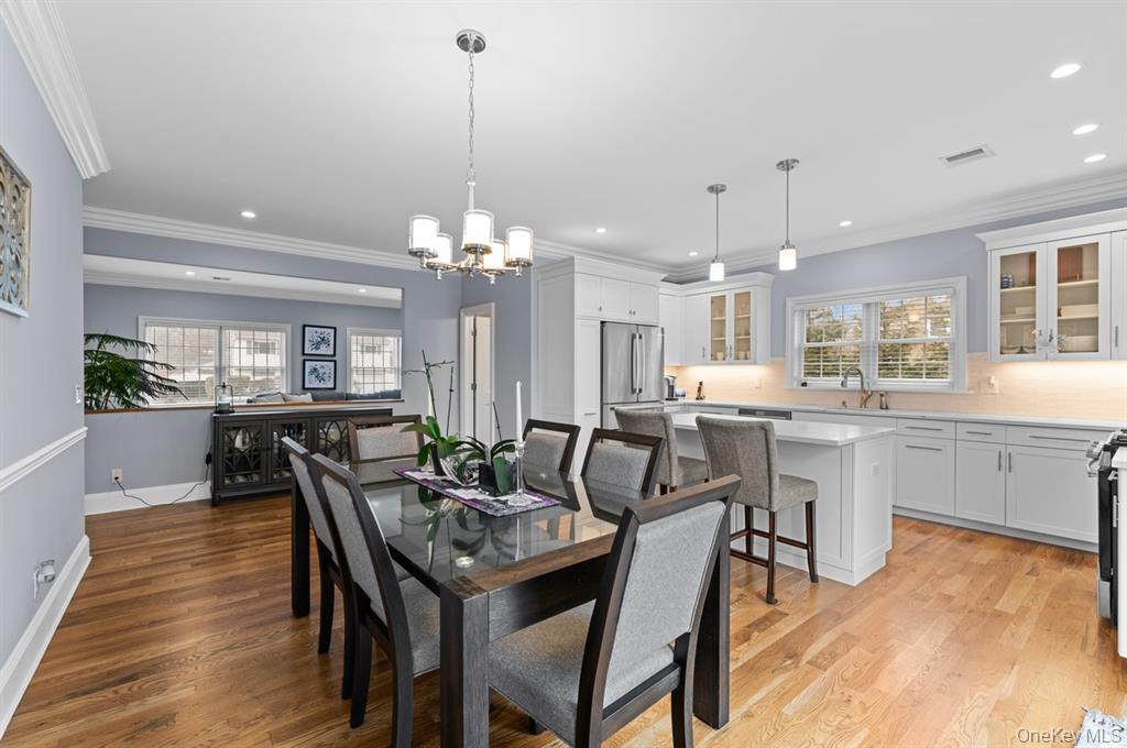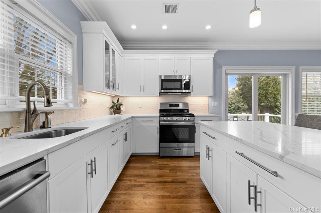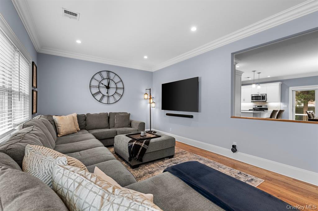 Welcome home to this diamond new construction 3 bedroom 2 bath expanded ranch completely rebuilt in 2020. Open floor plan with 9 foot ceilings for that spacious feel. Beautiful crown and base moldings in every room. Custom kitchen cabinets with quartz countertops center island and stainless steel appliances. Formal dining room with sliding glass doors to deck overlooking yard.