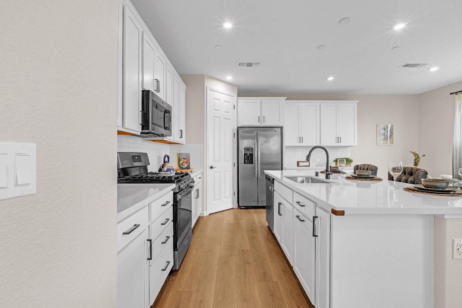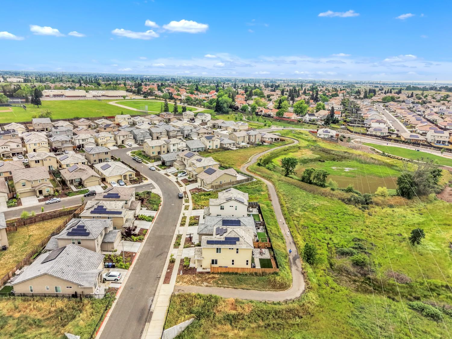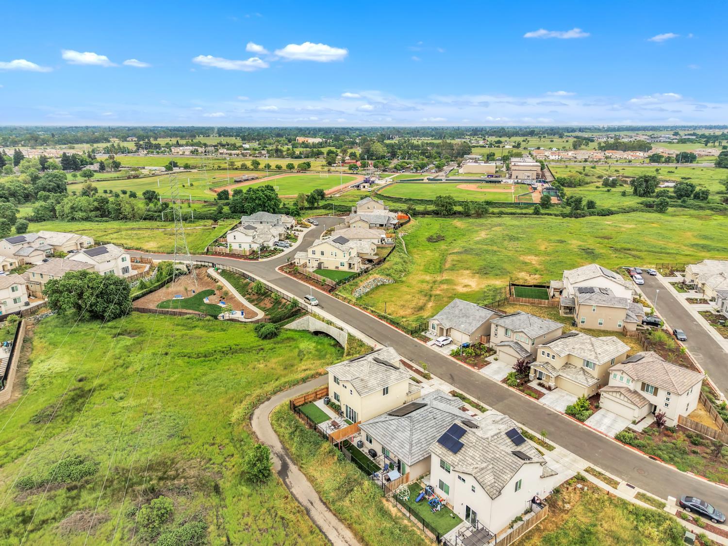 Built in 2024, this move-in ready home sits in a quieter, more private pocket of a gated community, offering the perfect balance of peace and convenience. Designed for modern living, this energy-efficient home features owned solar to help keep utility costs low year-round. Inside, a versatile upstairs loft provides the flexibility for a home office, playroom, or additional living space to fit your lifestyle. The open layout flows seamlessly into an updated backyard, ideal for relaxing, entertaining, or spending time with family and pets. A low-maintenance exterior makes everyday living even easier. Additional highlights include a 2-car garage, no neighbor on one side for added privacy, and a full appliance package including a refrigerator, washer, dryer, and dishwasher, making this home truly move-in ready. Skip the extra upfront costs, everything you need is already here. Conveniently located near local schools within the Elk Grove Unified School District, known for strong academics, excellent elementary schools, and one of the highest graduation rates in the region. Just minutes from the Pat OBrien Community Center, this home delivers comfort, efficiency, and a lifestyle that fits todays busy households.