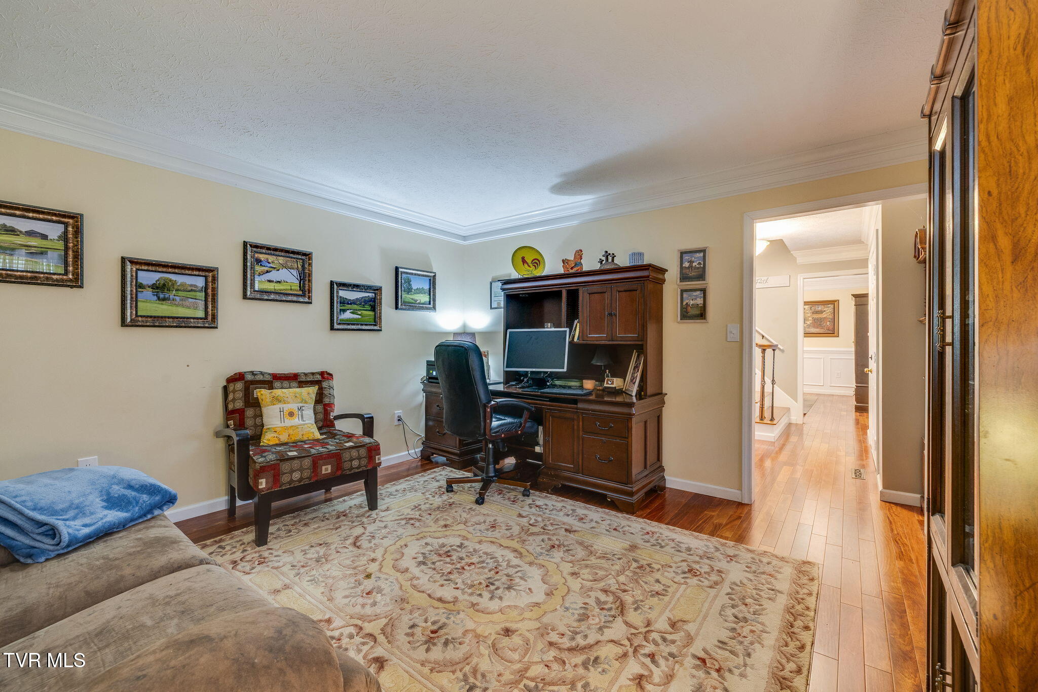 Located on a quiet neighborhood cul de sac, this traditional brick home provides a peaceful location, while just minutes away from the interstate. Sitting on slightly more than an acre, this double lot on the corner gives you plenty of space to garden, play, or just a little bit of privacy.On the main level, you'll find a sizeable eat-in kitchen open to the family room with a fireplace, built-ins, and easy access to the large deck. This level also features a dining room, a half bath, and another space perfect for an office, music room, or den. Choose one of two staircases to move to the second floor, where you'll find a large primary suite. The suite offers a large bedroom, walk-in closet, double vanity, separate shower, and whirpool tub. The hallway bath services the two additional bedrooms, one of which has its own entrance. A bonus room is also on this level, which could function as a 4th bedroom, recreation space, playroom, or workout space.A unique aspect of the home is its four garage bays: two attached spaces with separate doors and two more in the detached garage. Whether you need all the bays for cars, or you prefer to use some for yard tools, sports equipment, storage, or workshop, the garages provide a tremendous amount of flexibility to fit your needs.Improvements to note around the home include: hardwood floors in bedrooms (2024), gutters with guards (2024), new garage doors (2023), replacement windows (2020), covered front porch addition, rear composite deck, and driveway resurfacing (coming soon - April 8).As another added bonus, the sellers are offering a 1-year American Home Shield Warranty to the buyer for additional peace of mind. Schedule a tour and see if this wonderful house should be your home sweet home!Buyer(s)/buyer(s) agent to verify all information.