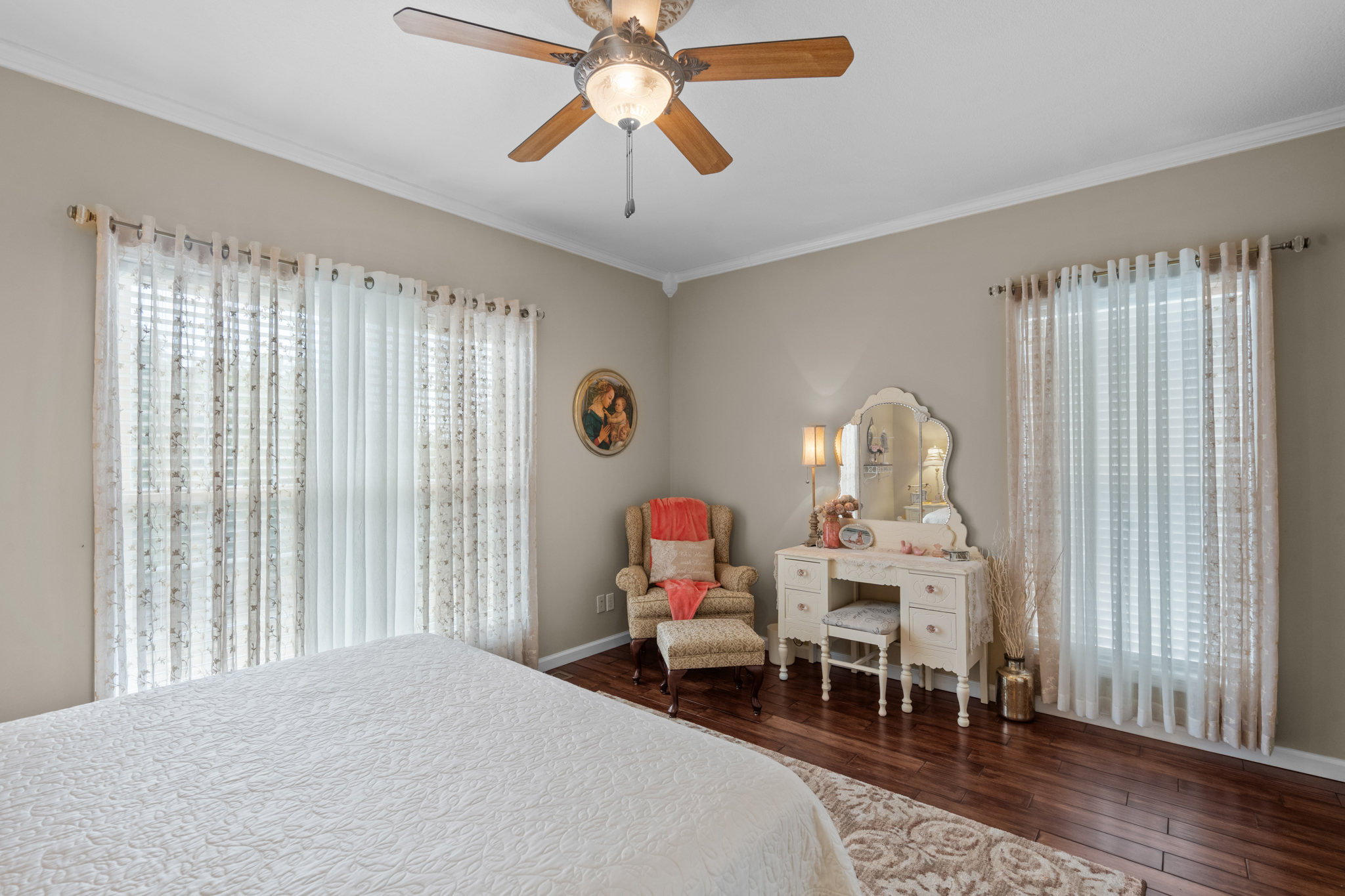 Built in 2024, this move-in ready home sits in a quieter, more private pocket of a gated community, offering the perfect balance of peace and convenience. Designed for modern living, this energy-efficient home features owned solar to help keep utility costs low year-round.