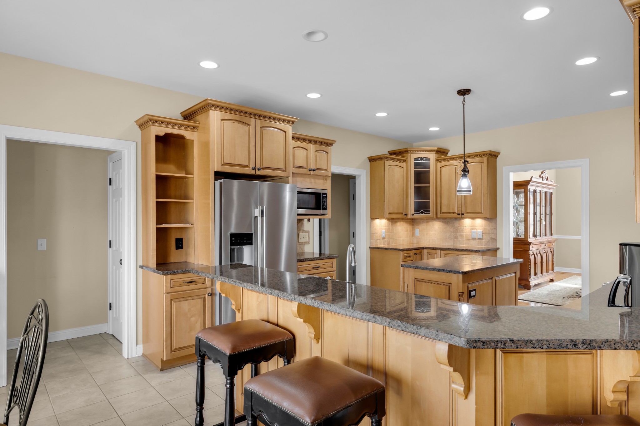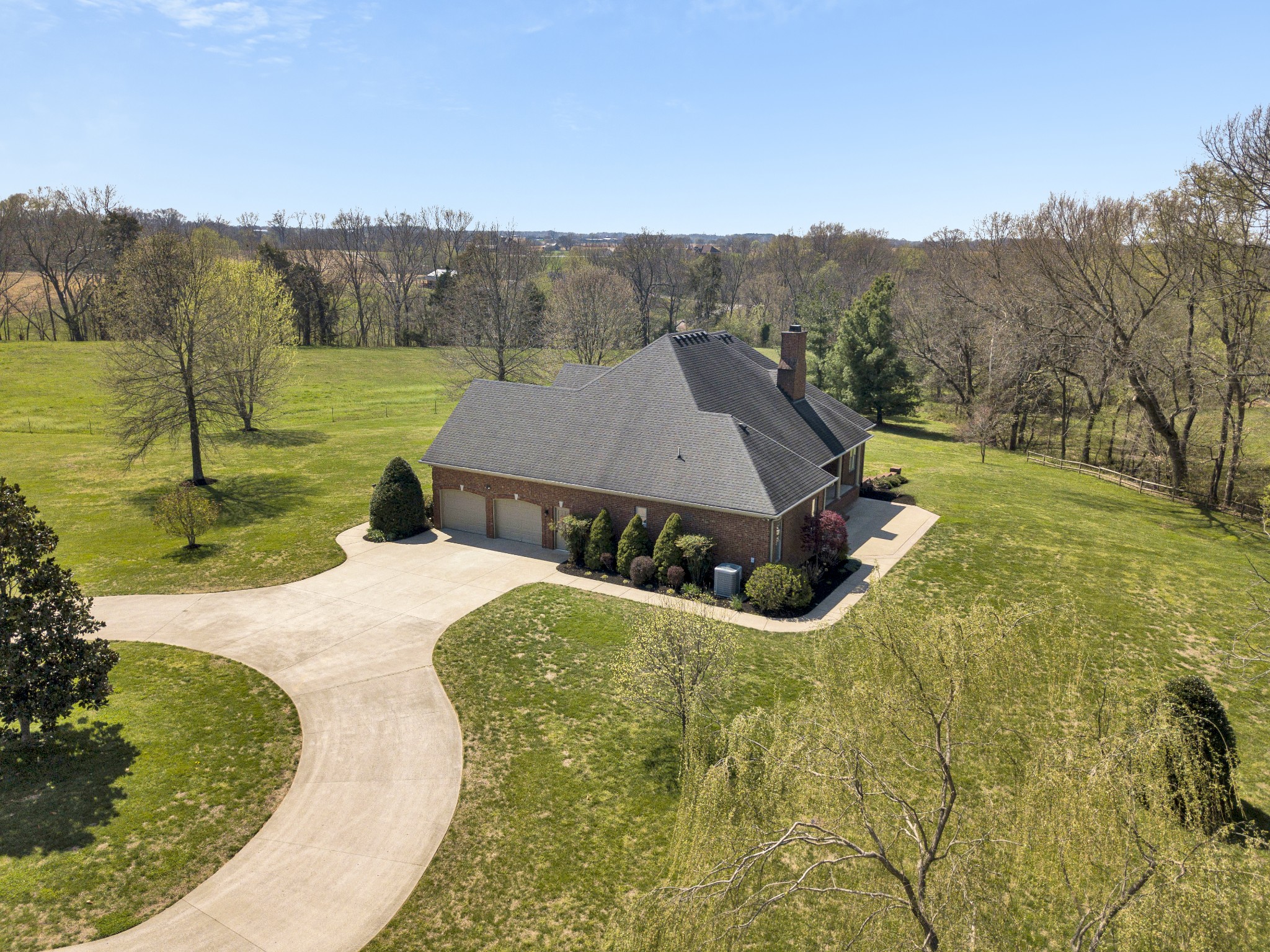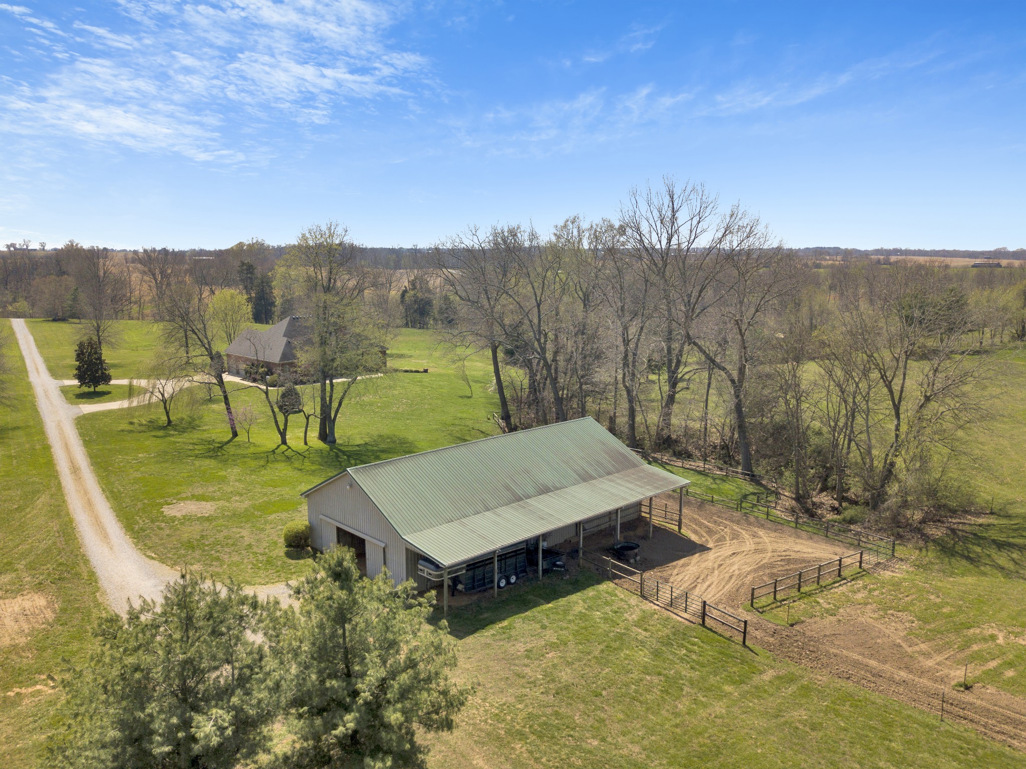 Equestrian Estate featuring ALL Brick Home with Full (partially finished basement), 38.8 Acres and a 4 Stall 72x36 Horse Barn Home is a Custom Build 3 Bedrooms/2 Full Baths on Main Level Basement has a 4th Bedroom and another Full Bathroom and Exterior Entry Home features an Entry Foyer, Formal Dining Room, Study, Living Room with Fireplace, Spacious Primary Suite with exterior door leading to Patio and Private Bathroom with separate Tub and Shower/2 sinks/2 Walk-In Closets/Water Closet, Kitchen with Granite Countertops/Tile Backsplash/Island and Breakfast Nook, 2 Guest Bedrooms, Guest Bath Full Basement with Rec Room, Bedroom, Full Bath, work room, storage room 2 Car Side Entry Garage Covered Porch and Patio on Back with 2 outlets for gas grills Horse Barn has 4 Stalls/36 Ft Riding Area/Tack Room/Feed Room/12x72 Shed on Side