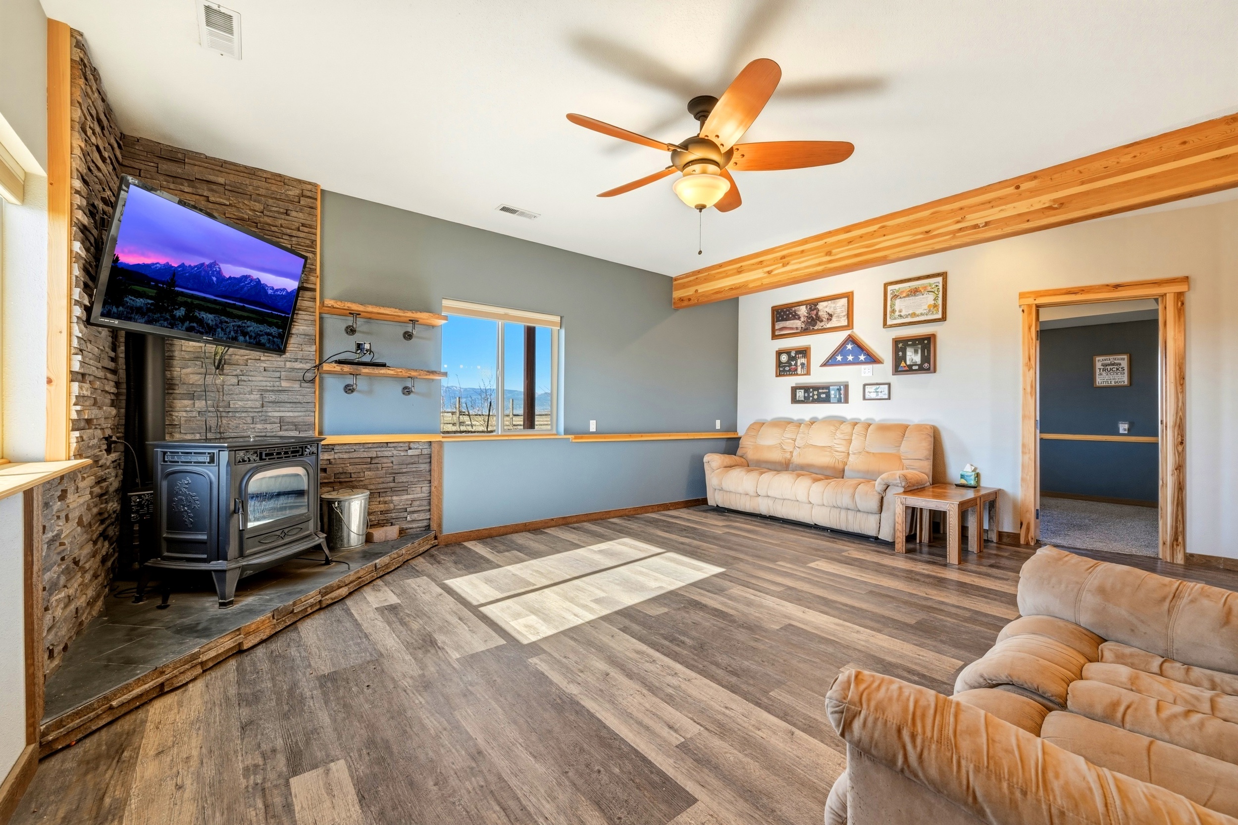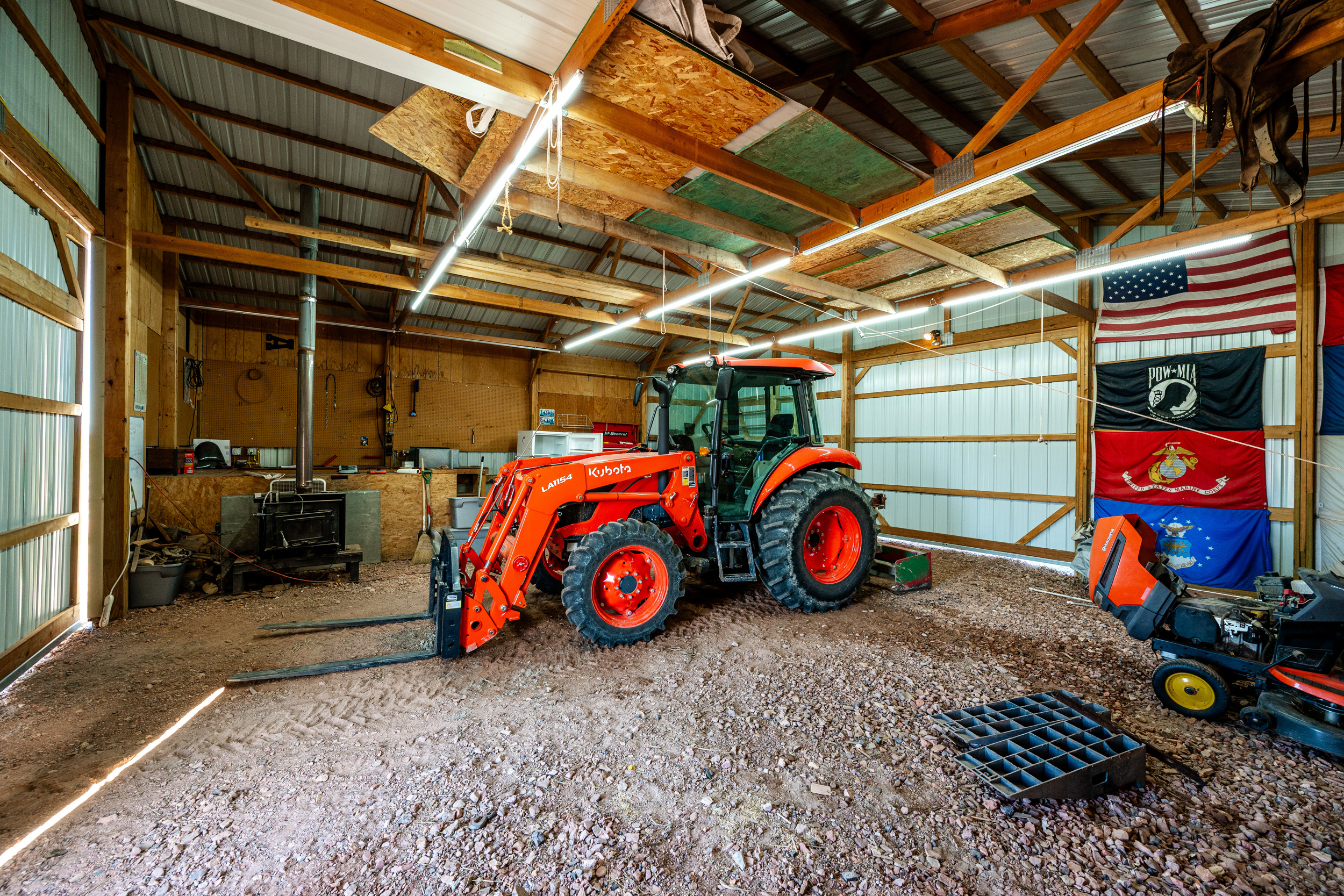Fantastic farmhouse in a parklike setting is ready for your family farm! Its all right here: a sweet house, fun studio cabin, shop with 4 covered bays, fruit tree orchard, kids playground, deeded access to a community swimming hole, AND an actual NASA Moon Tree! Fantastic Knotty-pine interior, vaulted living room with exposed Cedar beams, remodeled kitchen with gas range, vaulted master, and a big home office. Become self-sufficient! Grow your own food, raise animals, drink water from the earth, harvest your own firewood, and hunt on your own property! Fully fenced parcel, sprawling lawns for outdoor activities, and many lovely flowers and trees. Children can wander and connect with nature in unlimited ways. Just 17 minutes to groceries, hardware, vet, restaurants, gas. 35 minutes to a gorgeous lake for boating, fishing, swimming, hiking and more! Enjoy an old-timey, Cowboy vibe at this festive property. Friends and family wont want to leave!