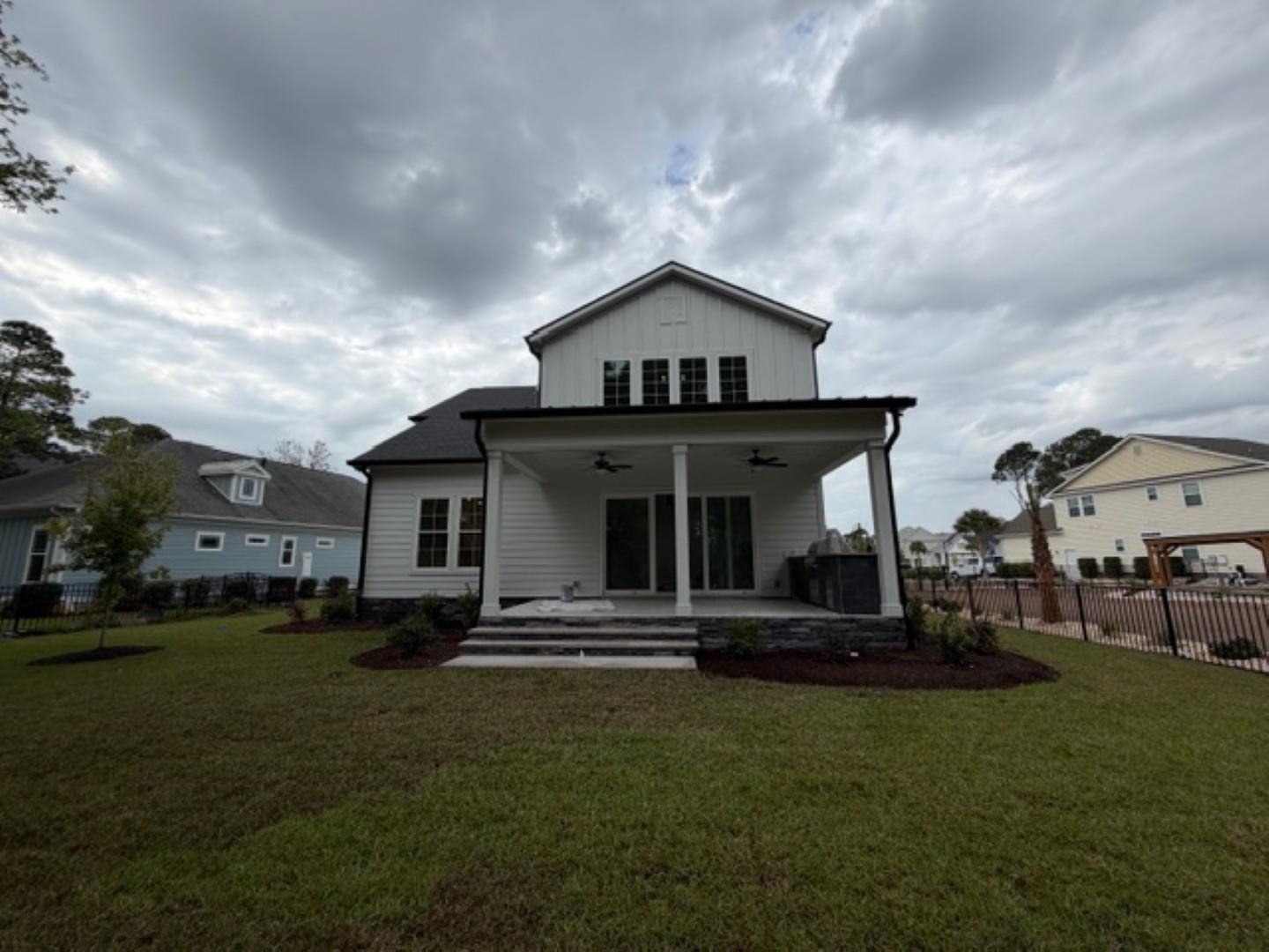 Don't miss this exceptional new construction home in the highly desirable gated community of Waterbridge in Myrtle Beach. This beautifully designed 4-bedroom, 4.5-bath residence offers a thoughtfully planned layout with upscale finishes throughout and community lake access for enjoying the serene surroundings. The flexible floor plan includes a first-floor private study that can easily serve as a guest bedroom or home office, along with a spacious upstairs bonus room overlooking the downstairs family room, creating an open and inviting feel. An additional upstairs en-suite is ideal for guests or multi-generational living. LVP flooring and tile runs throughout the entire home, no carpet anywhere. Inside, you'll find soaring ceilings, elegant details, and a chef's kitchen featuring gorgeous countertops, ample cabinetry, and a seamless flow into the bright living area with a cozy fireplace. A wet bar adds the perfect touch for entertaining. Step outside to your built-in outdoor kitchen, ideal for hosting and enjoying the coastal lifestyle. All bedrooms are generously sized with large closets, and each bathroom showcases custom tile showers and designer finishes. Waterbridge offers unmatched resort-style amenities including a pool, clubhouse, fitness center, tennis and volleyball courts, boat launch, walking trails, and more. Schedule your private showing today and experience luxury living at its finest.