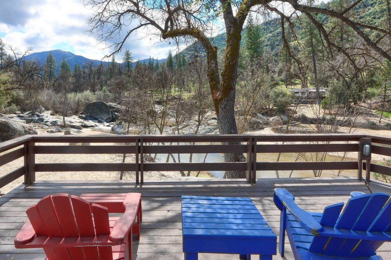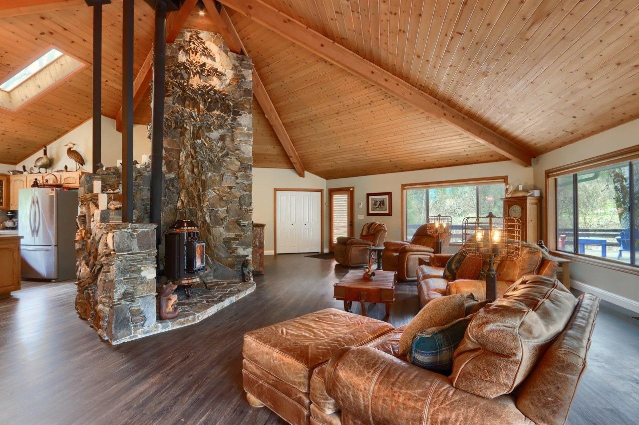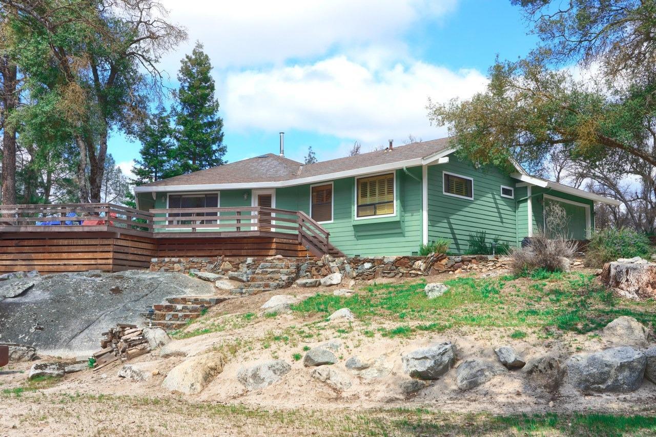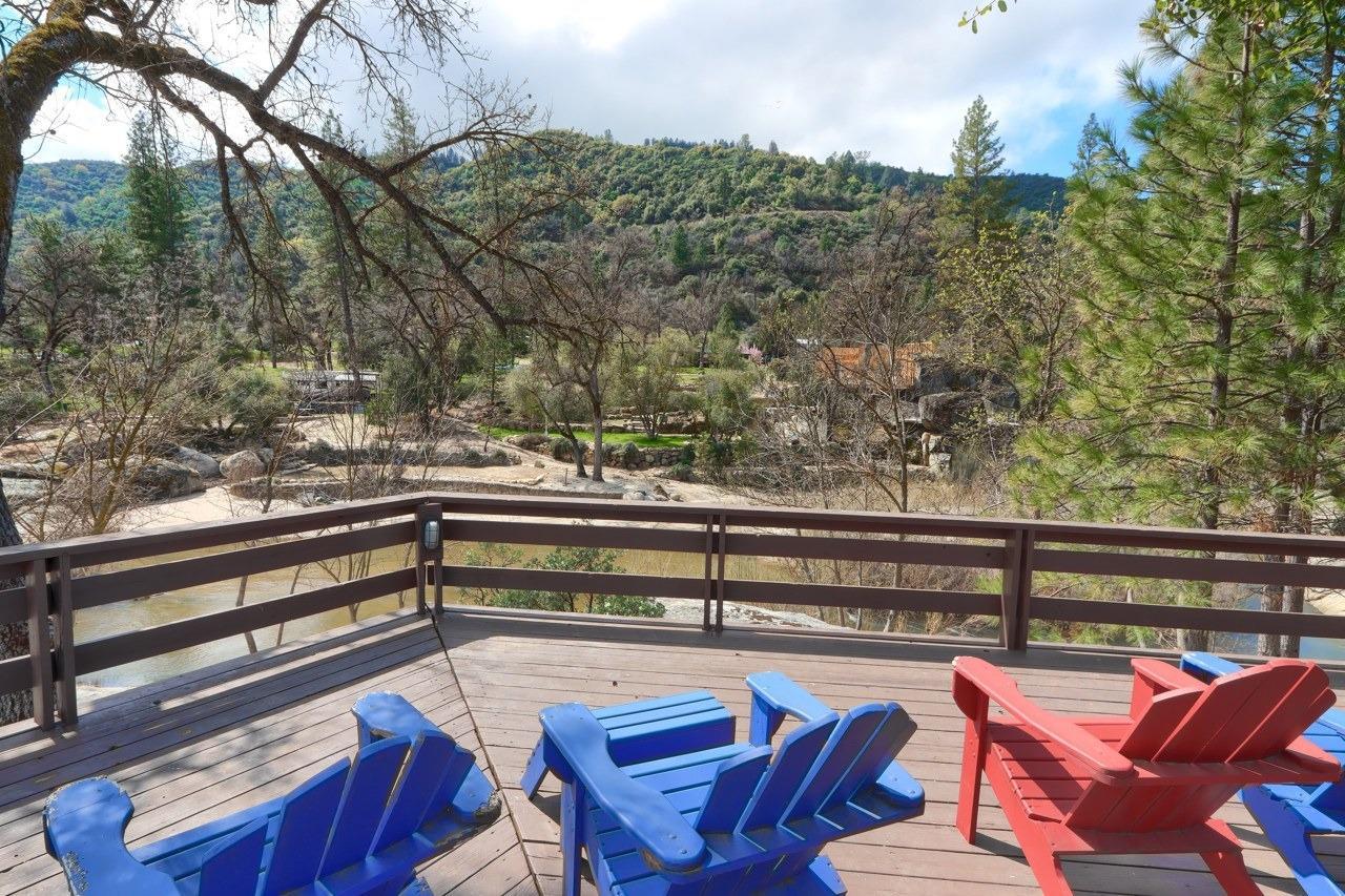 Nestled on over 10 private acres in Ahwahnee, this stunning custom-built 3-bedroom, 2-bath, 2,600 sq ft home offers a rare blend of natural beauty,, privacy, and comfort. Perfectly positioned at the end of a quiet cul-de-sac, the property is bordered by the scenic Fresno River on one side and the peaceful River Creek Golf Course on the other. The grounds are beautifully manicured, featuring mature trees, stricking rock outcroppings, and even your own private beach area along the river--creating a truly serene tretreat. A detached shop and RV parking with full hook-ups add both conveneince and versatility. Inside, the home showcases warm, rustic elegance with tongue-and-groove beamed ceilings and a stunning custom rock hearth as a focal point. The spacious kitchen is designed for both function and gathering, featuring a large center island and counter seating area. Step outside onto the expansive deck, complete with a relaxing spa, where you can take in breathtaking views of the river and surrounding mountain range. Ideally located just under 10 minutes from shopping and amenities in Oakhurst, this home also offers easy access to outdoor recreation--only 20 minutes to Bass Lake and approximately 40 minutes to the entrance of Yosemite National Park. This is more than a home--its a private mountain sanctuary where nature, comfort, and convenience come together.