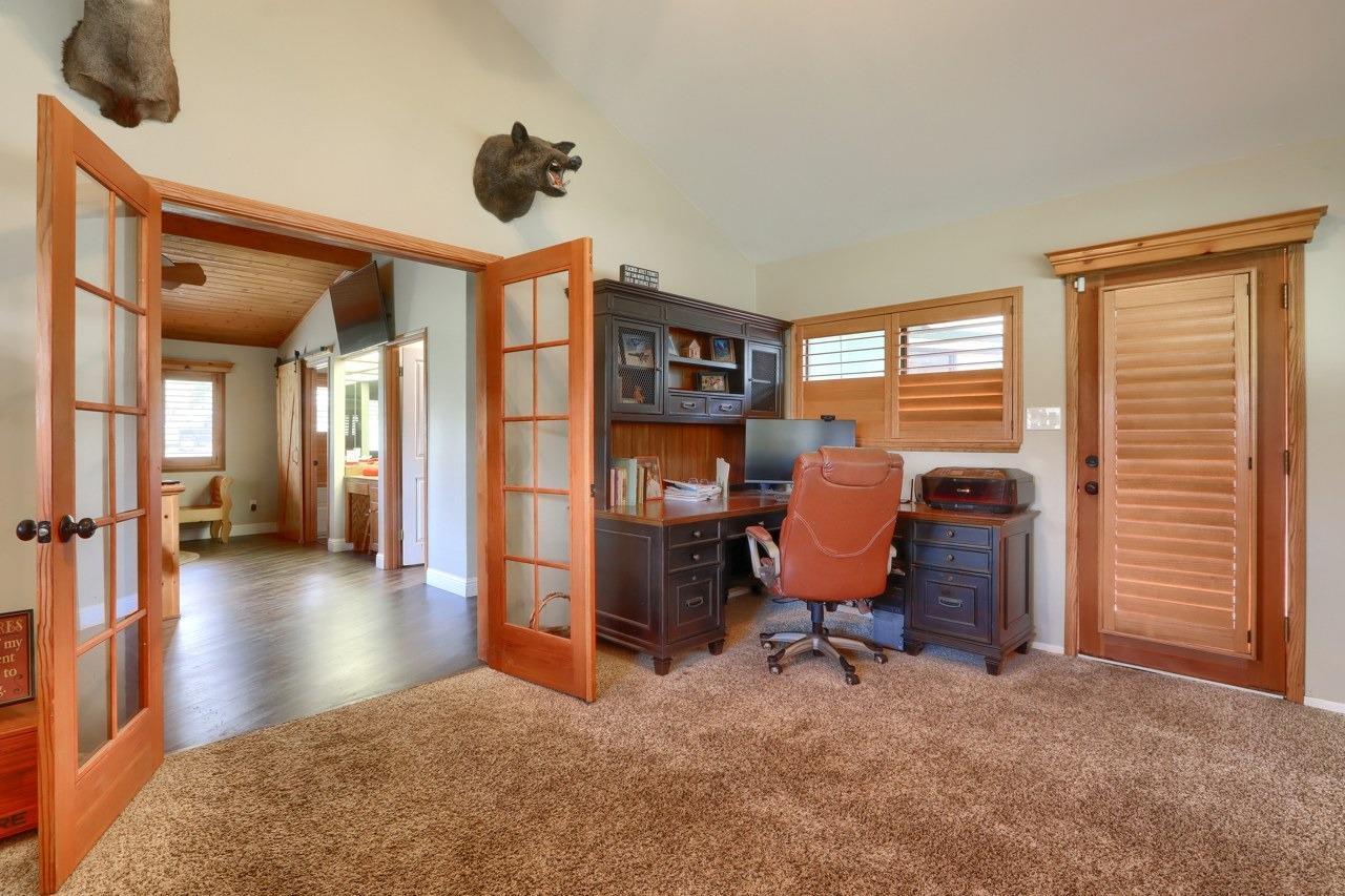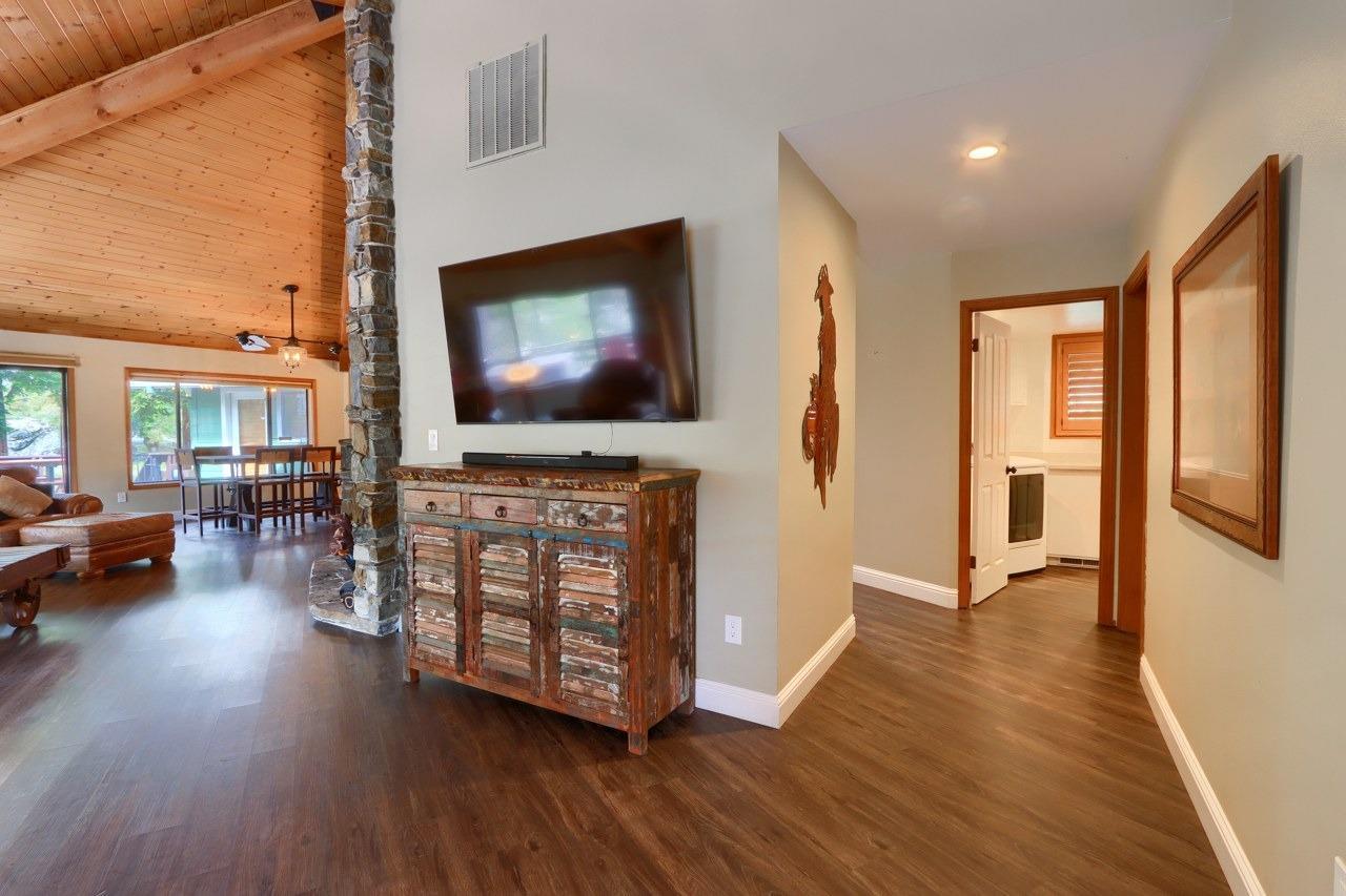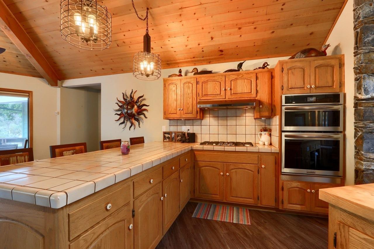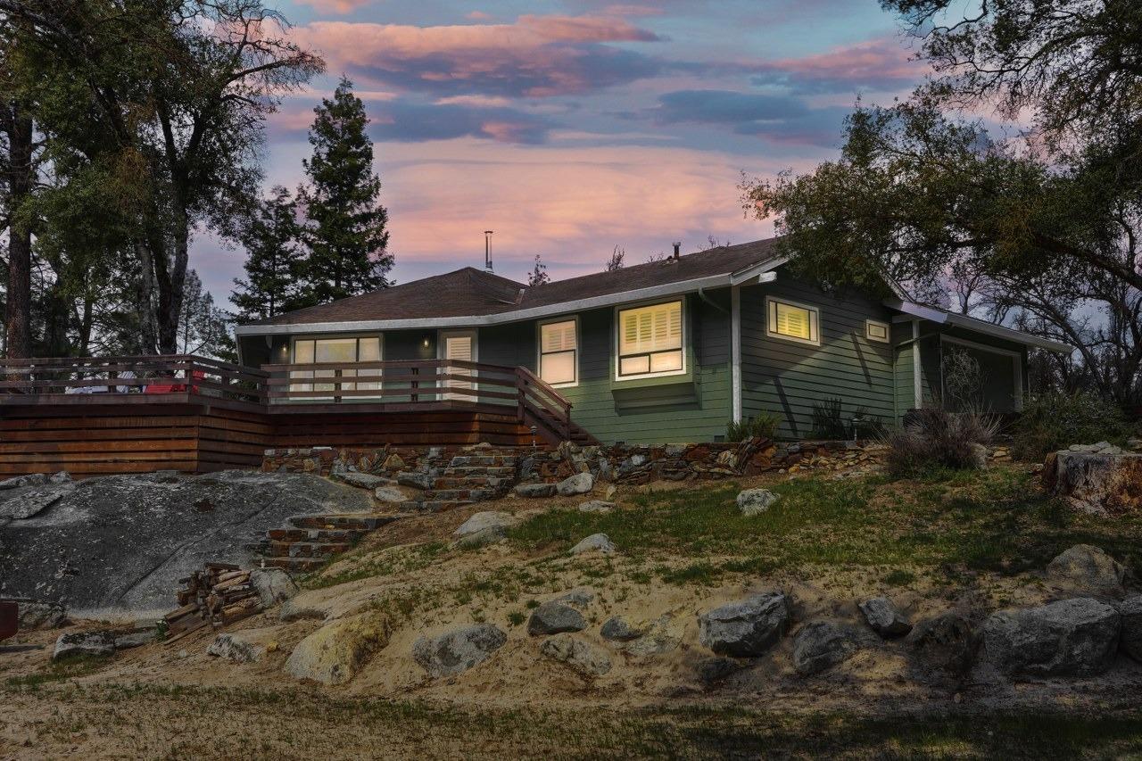 Nestled on over 10 private acres in Ahwahnee, this stunning custom-built 3-bedroom, 2-bath, 2,600 sq ft home offers a rare blend of natural beauty,, privacy, and comfort. Perfectly positioned at the end of a quiet cul-de-sac, the property is bordered by the scenic Fresno River on one side and the peaceful River Creek Golf Course on the other. The grounds are beautifully manicured, featuring mature trees, stricking rock outcroppings, and even your own private beach area along the river--creating a truly serene tretreat. A detached shop and RV parking with full hook-ups add both conveneince and versatility. Inside, the home showcases warm, rustic elegance with tongue-and-groove beamed ceilings and a stunning custom rock hearth as a focal point. The spacious kitchen is designed for both function and gathering, featuring a large center island and counter seating area. Step outside onto the expansive deck, complete with a relaxing spa, where you can take in breathtaking views of the river and surrounding mountain range. Ideally located just under 10 minutes from shopping and amenities in Oakhurst, this home also offers easy access to outdoor recreation--only 20 minutes to Bass Lake and approximately 40 minutes to the entrance of Yosemite National Park. This is more than a home--its a private mountain sanctuary where nature, comfort, and convenience come together.