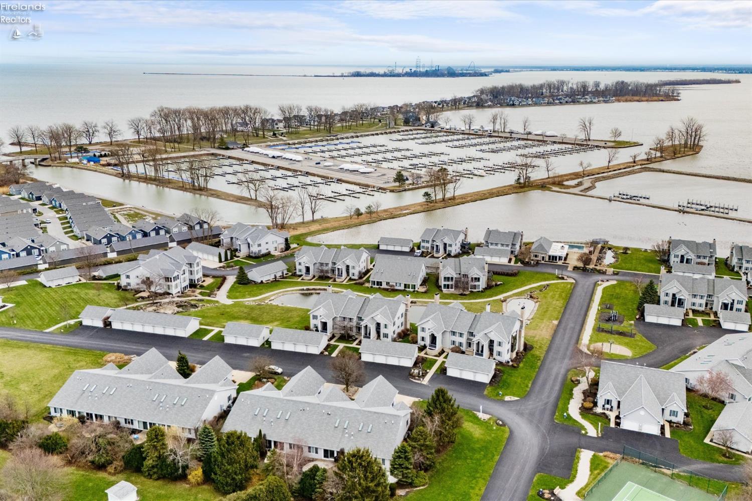 MARBLEHEAD GATED COMMUNITY! Townhouse condos in this gated community rarely come on the market! This Spacious 4 bedroom, 4.5 bathroom condo is thoughtfully designed for both comfort & entertaining. Enjoy 3 private en-suite bedrooms, plus a luxurious primary suite featuring its own fireplace & walk-in closet. The finished lower-level recreation area is perfect for hosting, complete with kitchen, fireplace, & walkout access to your covered patio overlooking a tranquil pond, w/peeks of Lake Erie Bay. ADDITIONAL HIGHLIGHTS INCLUDE: Integrated sound system, 2 separate one-car garage spaces, Most furnishings included, along w/appliances (refrigerator 3 years old) & outdoor grill, Furnace 3 years old, Updated flooring throughout (less than 2 years old). Dockage may be available (possible waitlist), making this an ideal location for boating enthusiasts. Enjoy Tennis court & waterfront clubhouse w/pool. Condo is perfectly situated near Historic Marblehead Lighthouse, as well as Bay Point Resort. Youll enjoy easy access to beaches, ferries to the Lake Erie Islands, nearby marinas, fine & casual dining, breweries, wineries, nature trails, & much more! (Room sizes approximate. Managed by North Coast Management Company.)