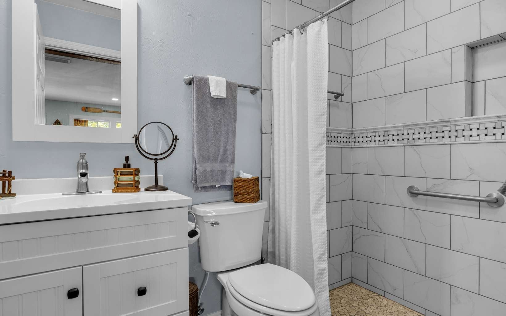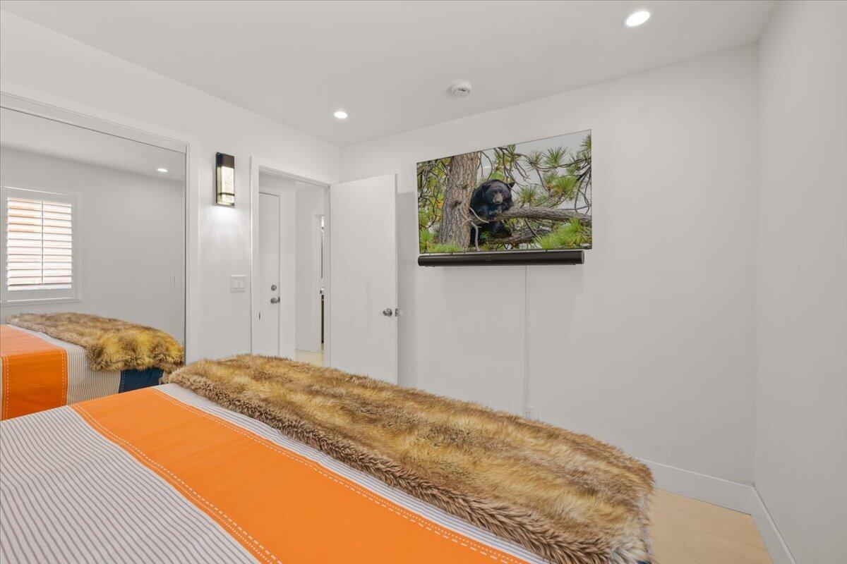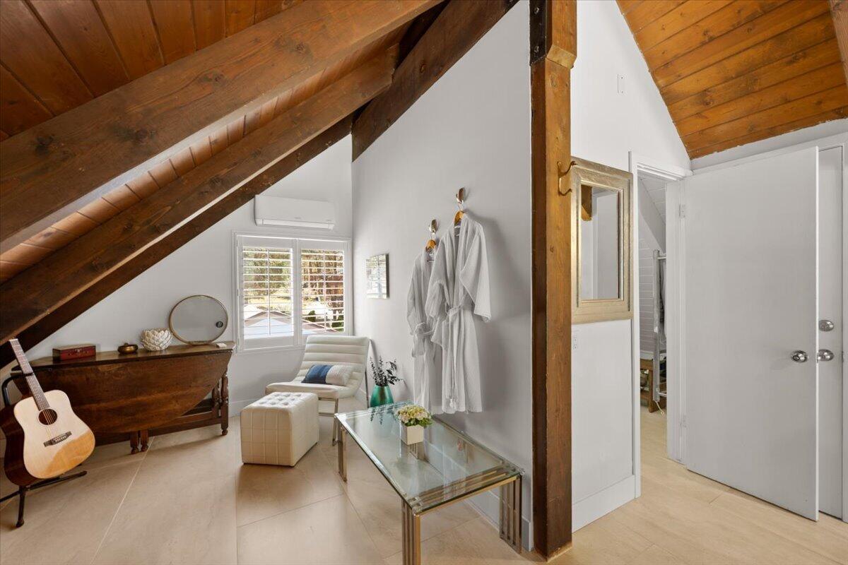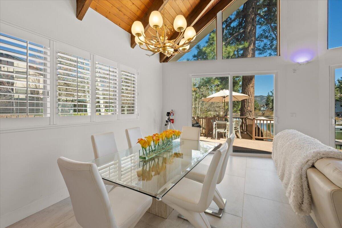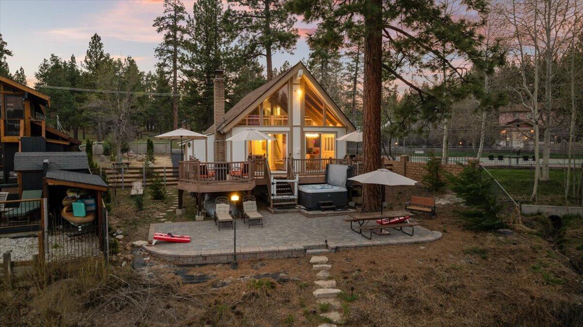 Discover the perfect blend of classic A-frame woodwork and modern upgrades in this beautifully updated lakefront home with boat dock privileges. Located along the protected waters of Mallard Lagoon, the serene setting offers a sheltered site that is ideal for safely launching a kayak or boat and also attracts a variety of ducks, stellars jays, blue heron, and eagles. Step inside to find a fully renovated interior featuring new large-format porcelain floors throughout, fresh drywall, recessed lighting, and a completely updated kitchen with bright quartz countertops, farmhouse sink, and high-end appliances including a Bosch dishwasher, gas stove, refrigerator, microwave, and garbage disposal. Both bathrooms have been refreshed, including a fully rebuilt upstairs shower constructed using a floated custom tile--considered a premium method for durability and craftsmanship. Modern artwork throughout is brought to life by new recessed lighting and eye-catching fixtures. Comfort is enhanced with a large gas fireplace, new tankless water heater, mini-split AC upstairs, and a fully updated central heating system. The home also features new washer/dryer, updated closets, and stylish furnishings including memory foam beds, reinforced frames, leather sofas, and designer dining chairs. Outdoor living is equally impressive with a spacious deck equipped with BBQ, full-size dining table, and fire pit seating area. Soak in the brand-new Artesian Captiva 33 WiFi-enabled spa, or sun on the expansive newly-built lower patio. The home features a stone path to the dock with dock light, and on the other side a fully fenced yard with motorized entry gate, fruiting trees (apples, pears, peaches, and apricots), in-ground electrical, irrigation improvements, boat parking pad, and EV charging outlet. The exterior has also been freshly repainted and the driveway resealed. This move-in-ready lakefront home seamlessly combines comfort, quality upgrades, and an incredible waterfront lifestyle--perfect for full-time living, weekend escapes, or entertaining by the lake. It is currently vacation-rental approved by the City and has been operating as a second home, supplemented by high-quality rentalincome, for five years.