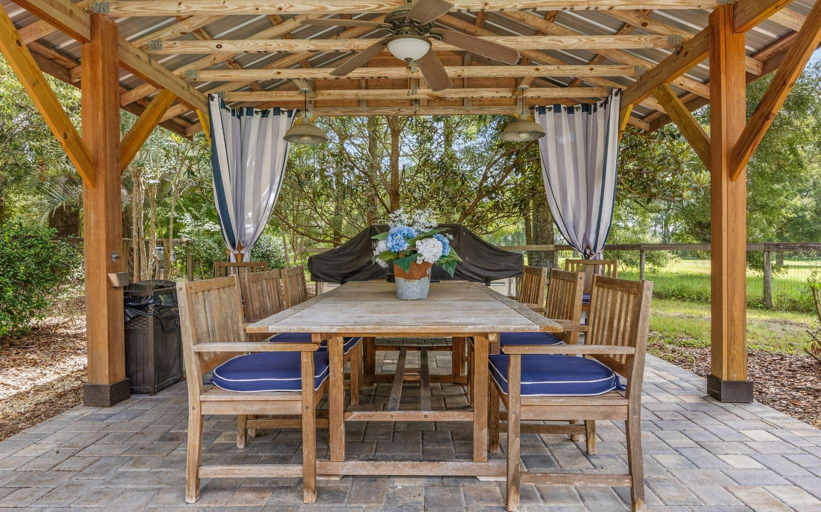 A stunning 46 acre estate offering privacy, versatility, and exceptional features in High Springs. The 2,615 square foot cypress log main home includes 3 bedrooms, 2 bathrooms, a gas stove, loft, study, marble tiled baths, granite countertops, and a wood burning fireplace. Enjoy peaceful views from the screened porch overlooking the pool and natural surroundings. Additional living spaces include a 672 square foot pool house with wet bar, workout room, kitchen, full bath, 2 car garage, and unfinished bonus room, plus an 848 square foot guest house featuring 2 bedrooms, 1 bathroom, custom kitchen with wooden countertops, electric fireplace, and real wood floors. The fully fenced and cross fenced property is ideal for equestrian use and includes a 4 stall barn, pole barn, fenced pastures, utility shed, pond, pool, hot tub, firepit, gazebo, and multiple 50 amp RV hookups. Property is equipped with a whole house generator and two 250 gallon propane tanks. Conveniently located near Newberry and Gainesville. A rare opportunity for multi-generational living, equestrian use, or a private retreat.
