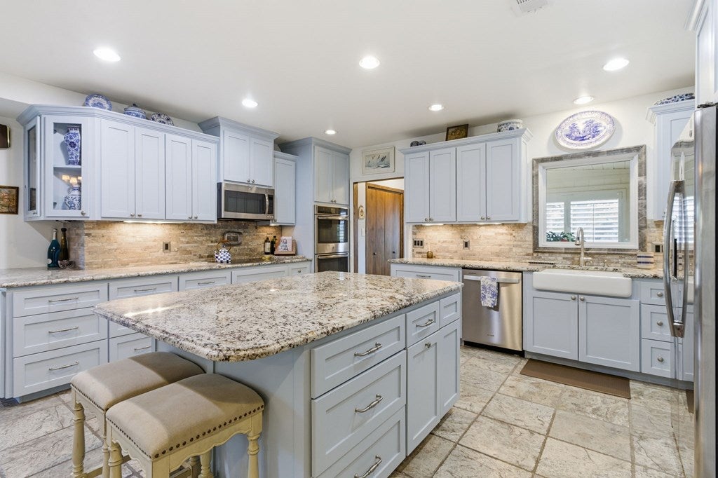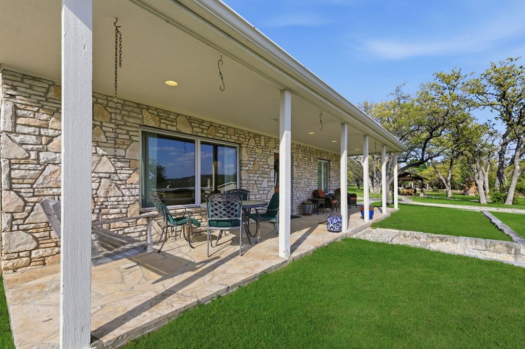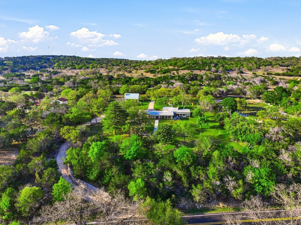 Experience the classic elegance of this hill country ranch style home. Remodeled to incorporate modern updates & an open concept layout, this home & guest house are set on a gently terraced 4.3 acres. The kitchen is the heart of the home with a large granite island, high end stainless steel appliances, & deep farmhouse sink. The kitchen opens to a casual living area with a stone fireplace.