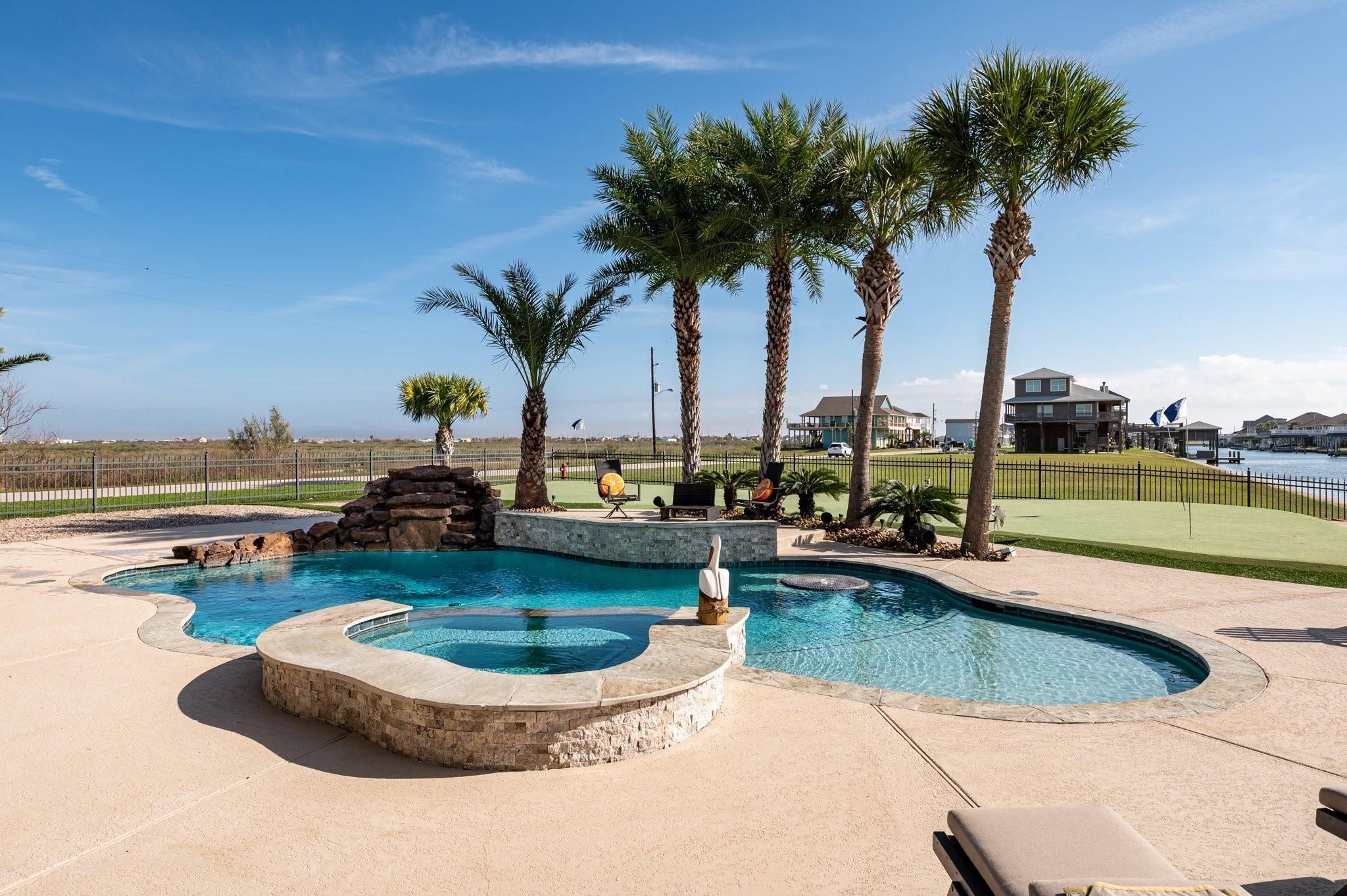 Prestigious custom-built home situated on two lots in the exclusive Waterways gated community, just minutes from the beach. Designed for both luxury and lifestyle, this stunning property features a private boat dock with lift, elevator access, and a 3,000-bottle wine room. Enjoy a dedicated home theater, a 9-hole putting green, and expansive outdoor living with a large patio, wrap-around porch. The gourmet kitchen is a showstopper with Viking ovens, granite countertops, and custom cabinetry throughout. High-end finishes, hardwood floors, and thoughtful details elevate every space. Whether youre looking for a full-time residence or a weekend retreat, this home delivers coastal living at its finest.