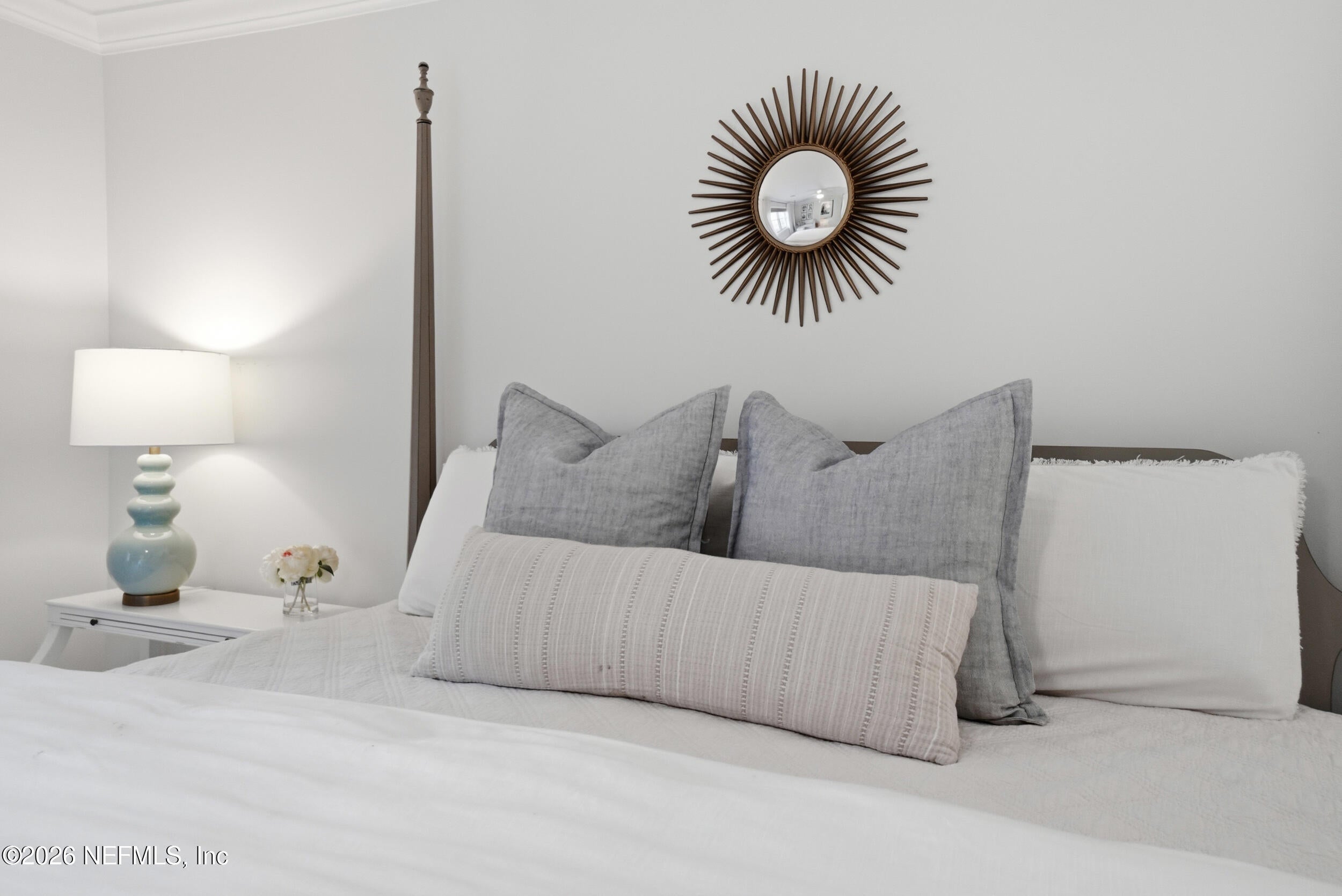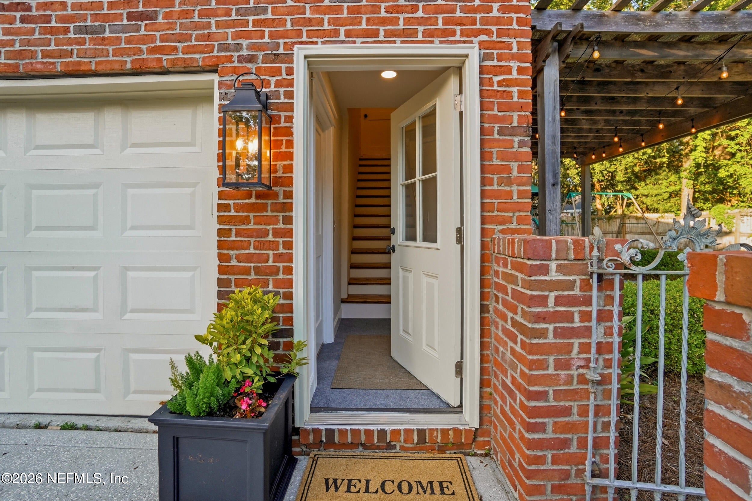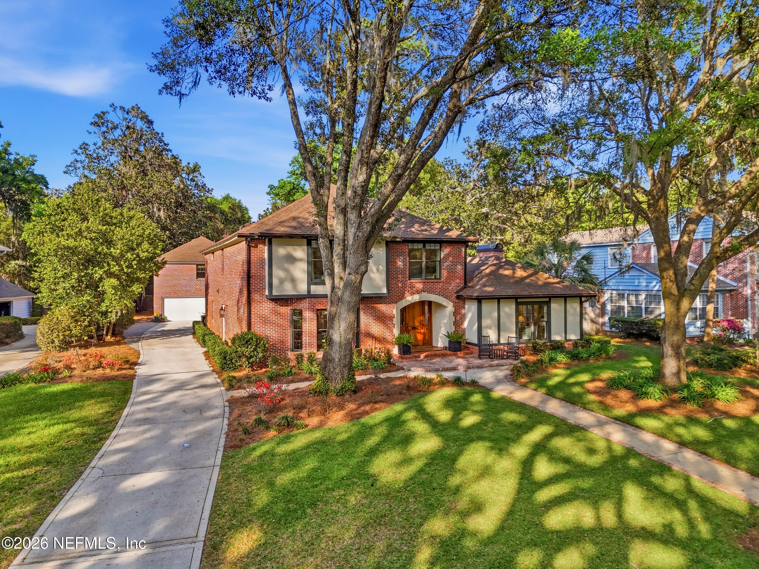 This striking, historically inspired estate masterfully blends timeless architecture with the ease of modern living; offering all the charm of a classic home, without the constraints of historical designation. Set on a serene, park-like homesite, this exceptional property enjoys a picturesque setting across from a navigable creek, where you can launch a kayak and glide directly to the river! The view of the 3 acre park/preserve from your front porch is heavenly. Both the main residence & guest apartment have been thoughtfully reimagined with a designers eye, full of custom details that create an effortless flow for both intimate gatherings and large scale entertaining. The new all white chefs kitchen is stunning, with everything from a Subzero fridge, pot filler, dual fuel range, plus separate wine & beverage refrigerators and more! Crafted with all brick construction, this offers a rare combination of architectural beauty and modern refinement in a peaceful, quiet setting. The oversized backyard offers lots of options for outdoor living with paver patios and two pergolas. The abundance of closet and storage space in this home is unbelievable; more than you will find in any other home in San Marco! The main home has approx. 4500 sq ft, with 1 BR/1.5 BA down and 3 BR/2 BA up. The upstairs garage apartment has 2 large rooms plus a full bath (murphy bed stays) and is just under 1000 sq ft. Downstairs beyond the garage is an additional 700 sq ft dedicated fitness studio plus separate workshop or storage room complete with mini-split HVAC. Just a few of the notable features are: all smooth ceilings, crown throughout, all newer plumbing and lighting fixtures, freshly painted interior, newer front and rear porches, Pella windows, amazing laundry room, 3 walk in closets in owners suite (2 with custom organizers), roof in 2021, AC in apt. 2025, loads of new landscaping and landscape lighting, gas tankless water heataer and SO MUCH MORE...its a STUNNER!