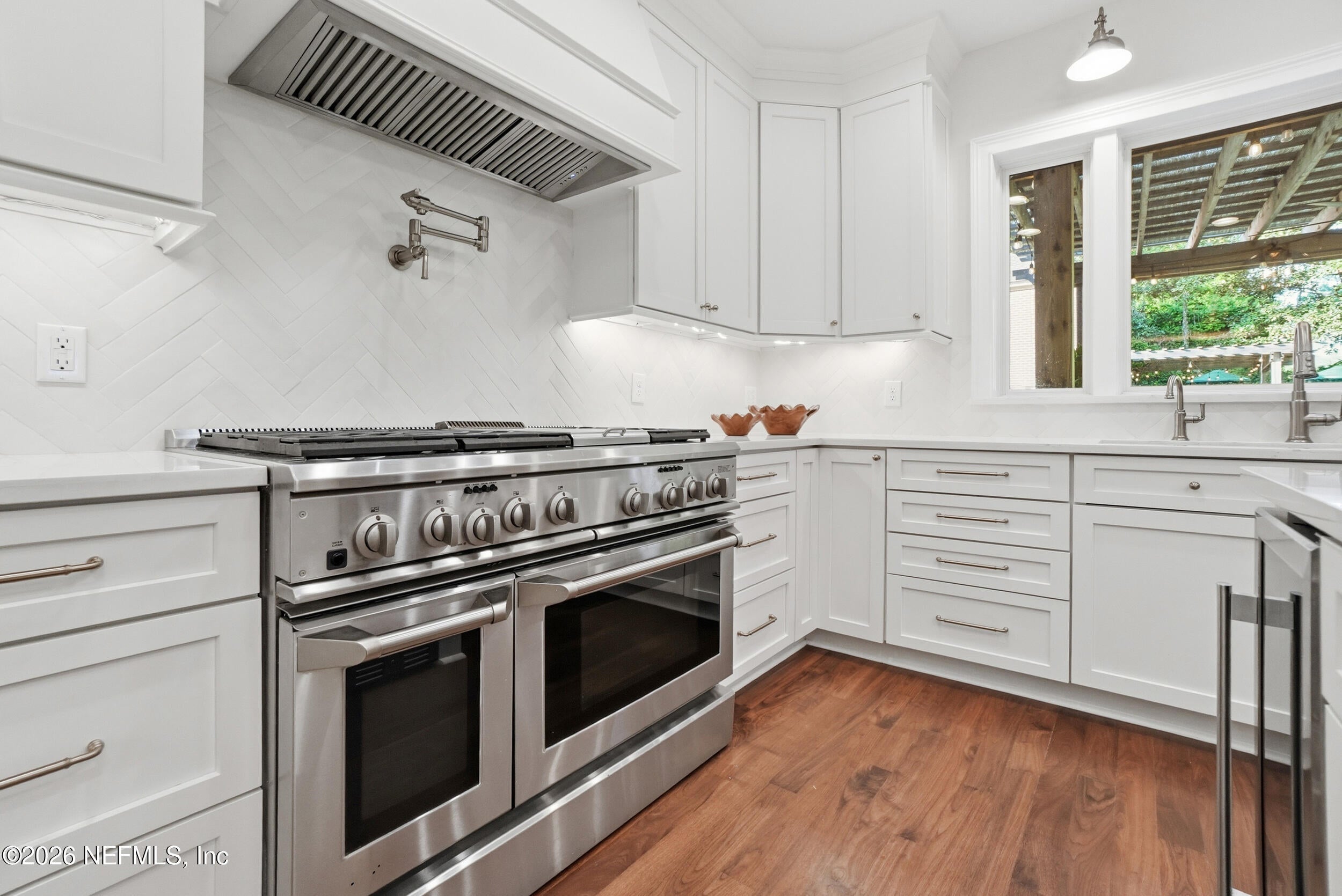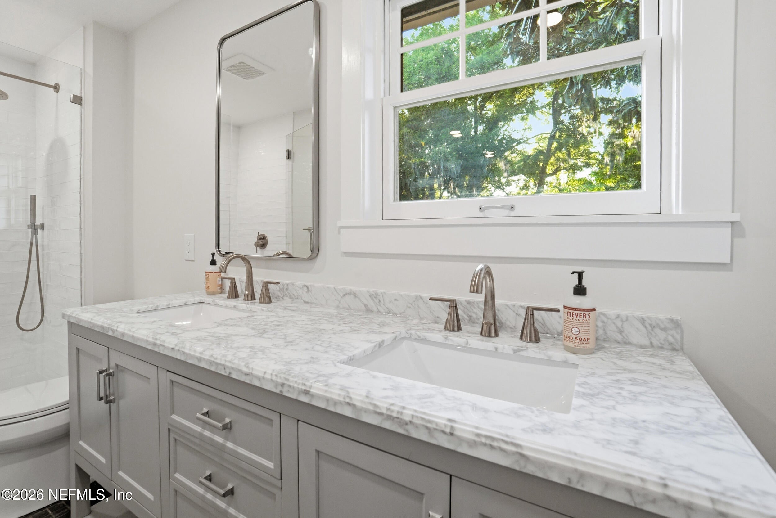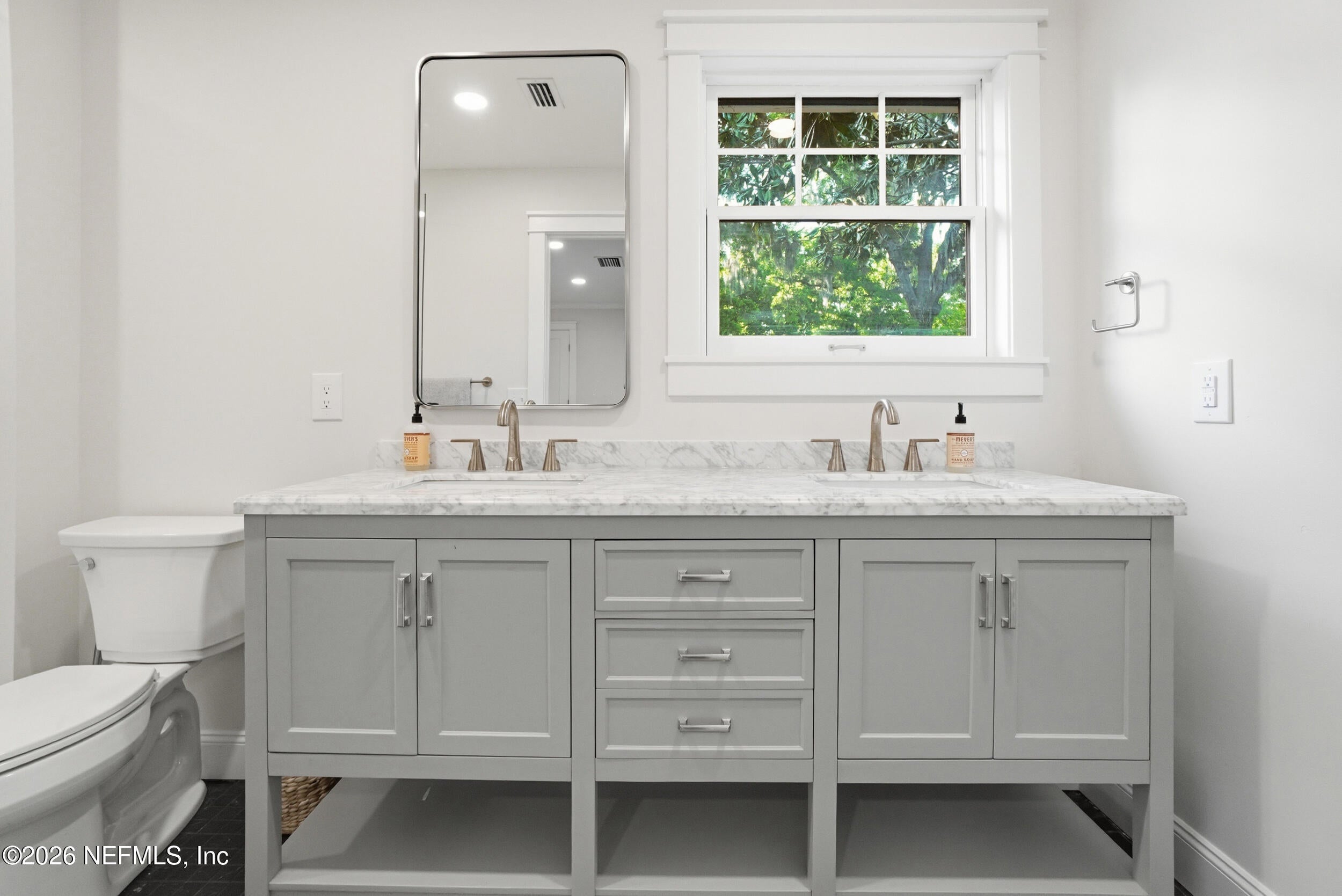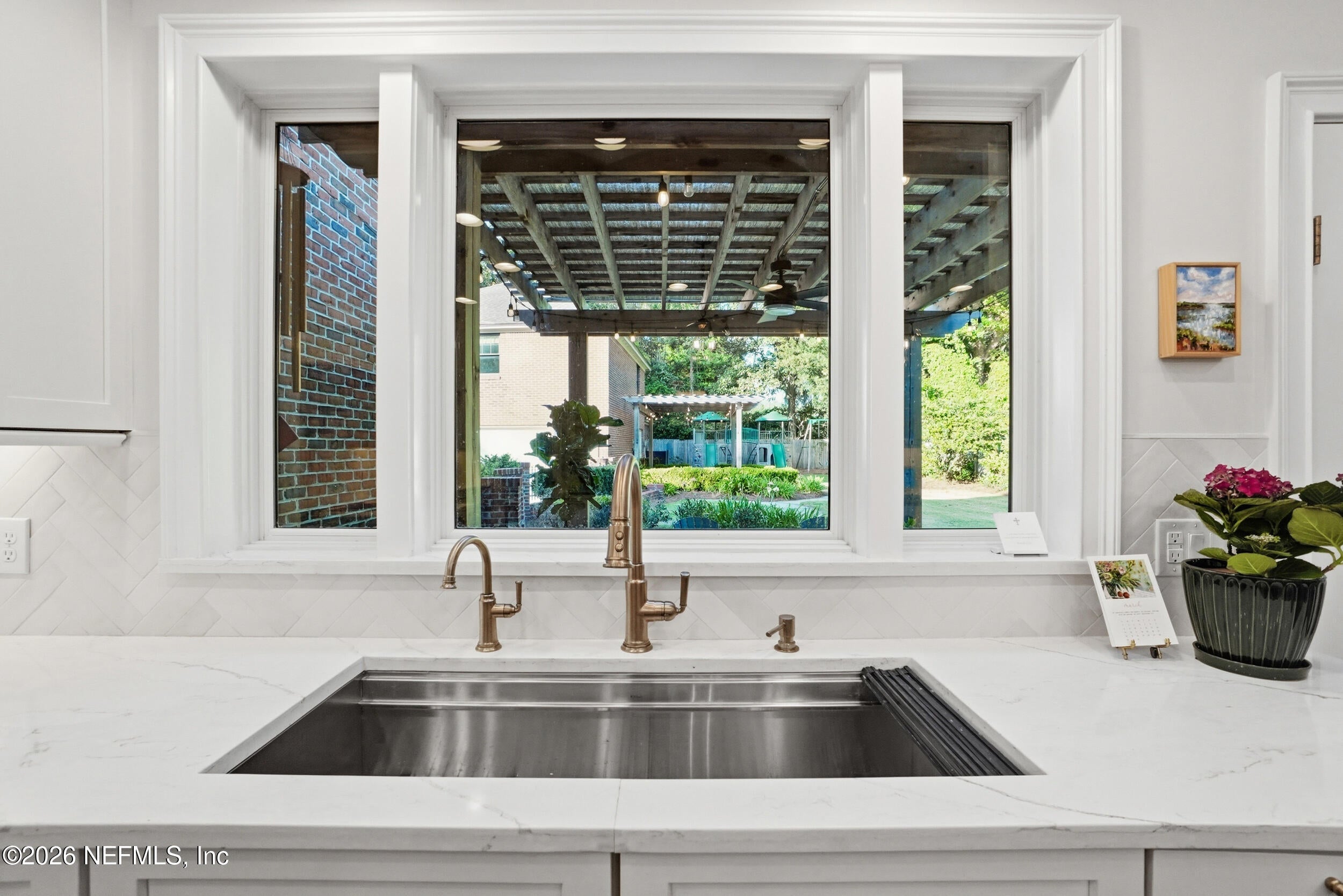 This striking, historically inspired estate masterfully blends timeless architecture with the ease of modern living; offering all the charm of a classic home, without the constraints of historical designation. Set on a serene, park-like homesite, this exceptional property enjoys a picturesque setting across from a navigable creek, where you can launch a kayak and glide directly to the river! The view of the 3 acre park/preserve from your front porch is heavenly. Both the main residence & guest apartment have been thoughtfully reimagined with a designers eye, full of custom details that create an effortless flow for both intimate gatherings and large scale entertaining. The new all white chefs kitchen is stunning, with everything from a Subzero fridge, pot filler, dual fuel range, plus separate wine & beverage refrigerators and more! Crafted with all brick construction, this offers a rare combination of architectural beauty and modern refinement in a peaceful, quiet setting. The oversized backyard offers lots of options for outdoor living with paver patios and two pergolas. The abundance of closet and storage space in this home is unbelievable; more than you will find in any other home in San Marco! The main home has approx. 4500 sq ft, with 1 BR/1.5 BA down and 3 BR/2 BA up. The upstairs garage apartment has 2 large rooms plus a full bath (murphy bed stays) and is just under 1000 sq ft. Downstairs beyond the garage is an additional 700 sq ft dedicated fitness studio plus separate workshop or storage room complete with mini-split HVAC. Just a few of the notable features are: all smooth ceilings, crown throughout, all newer plumbing and lighting fixtures, freshly painted interior, newer front and rear porches, Pella windows, amazing laundry room, 3 walk in closets in owners suite (2 with custom organizers), roof in 2021, AC in apt. 2025, loads of new landscaping and landscape lighting, gas tankless water heataer and SO MUCH MORE...its a STUNNER!