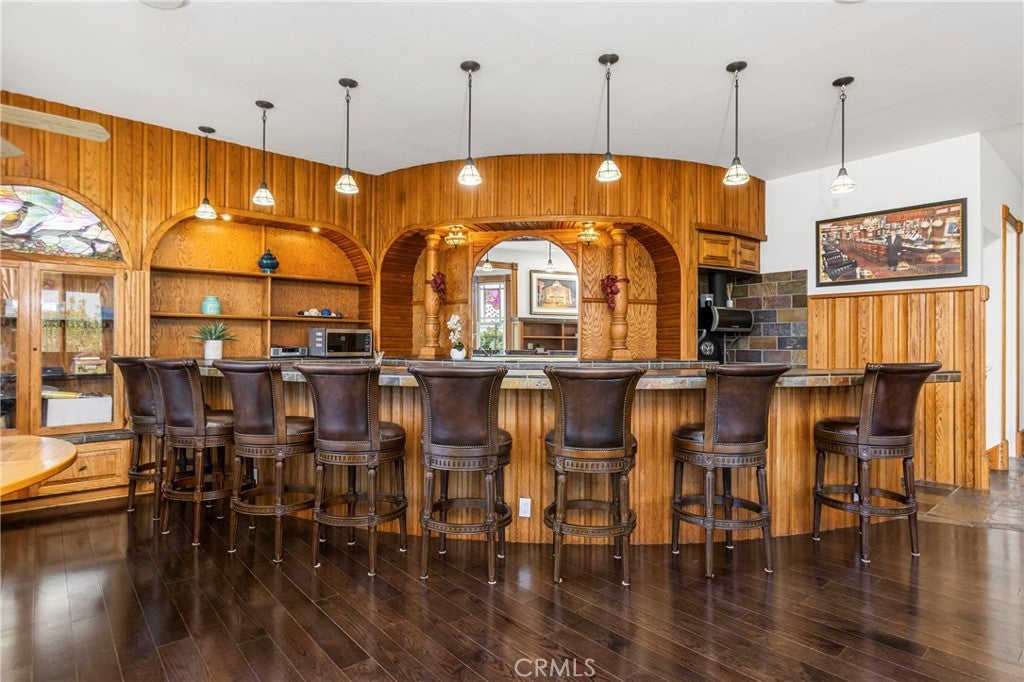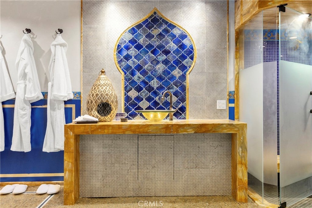 FIRST SHOWING: GRAND OPENING SATURDAY APRIL 4TH, 2026 FROM 1-4PMLocated in the heart of coveted Eastside Costa Mesa, this extraordinary four-story architectural residence stands as one of the neighborhoods most distinctive homes. Privately gated and designed with remarkable scale, the property blends character, craftsmanship, and unforgettable living spaces.Inside, soaring vaulted ceilings and walls of windows fill the home with natural light, while beautiful stained glass details add artistry and charm throughout. The updated chefs gourmet kitchen features granite countertops, stainless steel appliances, wine refrigerator, center island, and walk-in pantry, opening seamlessly to generous dining and living areas designed for both everyday living and entertaining.A spectacular rotunda entertainment room serves as the architectural centerpiece of the home, showcasing a dramatic double-vaulted ceiling with surrounding windows, custom wood paneling, a hand-painted sky ceiling, and a striking chandelier sourced from Caesars Palace in Las Vegas. The space is complemented by an impressive built-in bar designed for hosting and gatherings.The residence offers three spacious bedroom suites, each with its own private bathroom. The grand primary retreat features a fireplace, wood flooring, heart-motif stained glass windows, and a circular staircase leading to a private bonus lounge and patio.Additional highlights include a private Turkish hammam spa with steam room and jacuzzi, solar panels, and an expansive three-car garage including limousine-length parking and workshop space.This remarkable residence combines architectural drama, luxury amenities, and distinctive design, making it a truly iconic home in Eastside Costa Mesa.