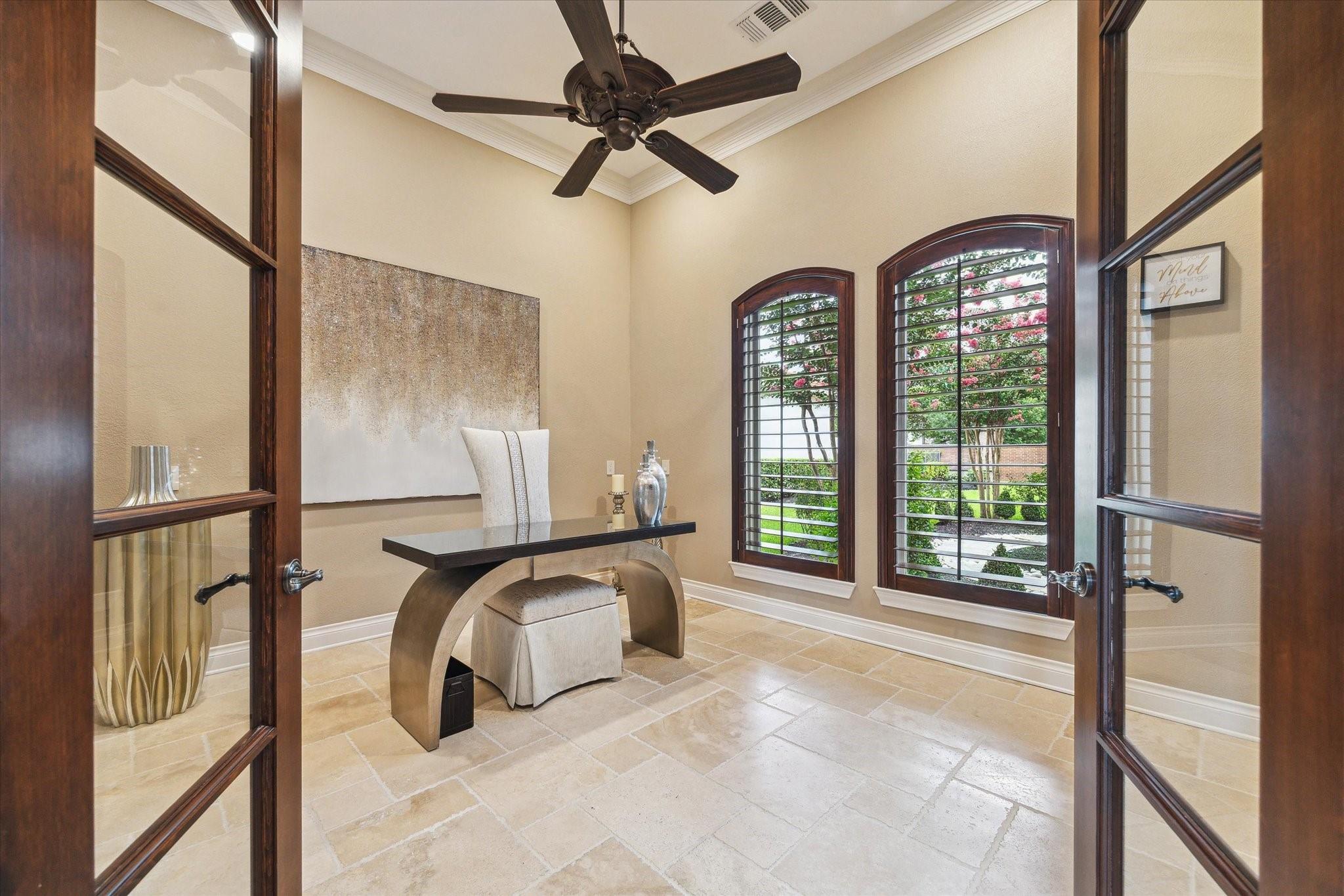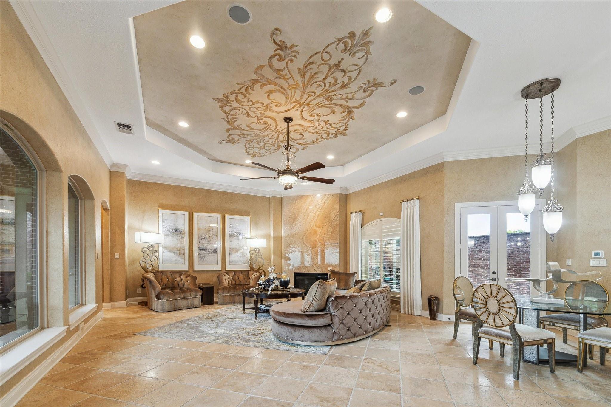 LUXURIOUS CUSTOM ESTATE in the prestigious gated community of The Villas at Lake Pointe! Built by renowned builder Steve Fuqua/Dan Roth, this home will impress from the moment you arrive! Double doors lead to a dramatic entry w/sweeping wood & iron staircase, stone flooring, & elegant formals plus separate study.