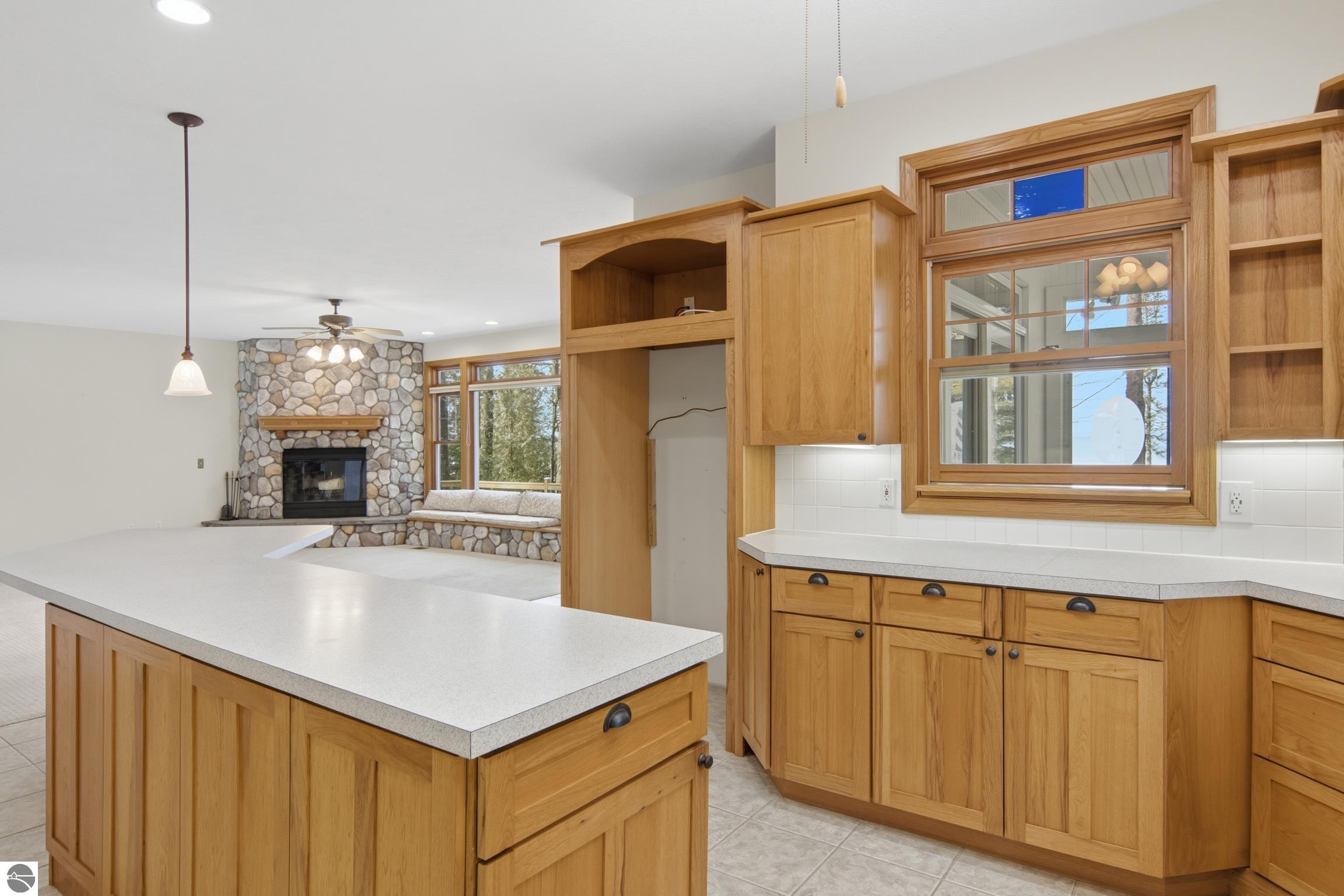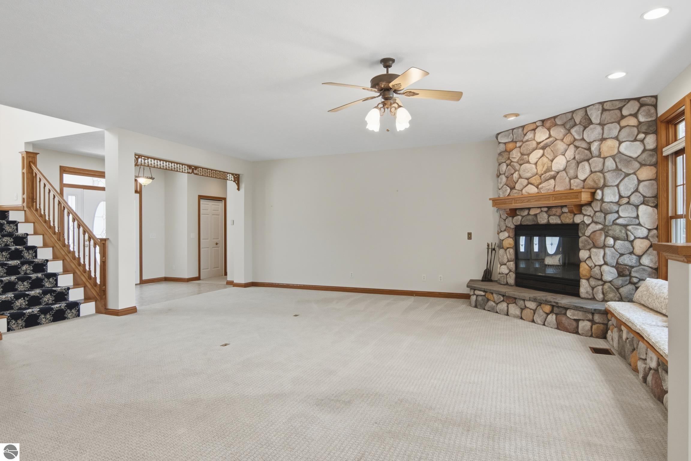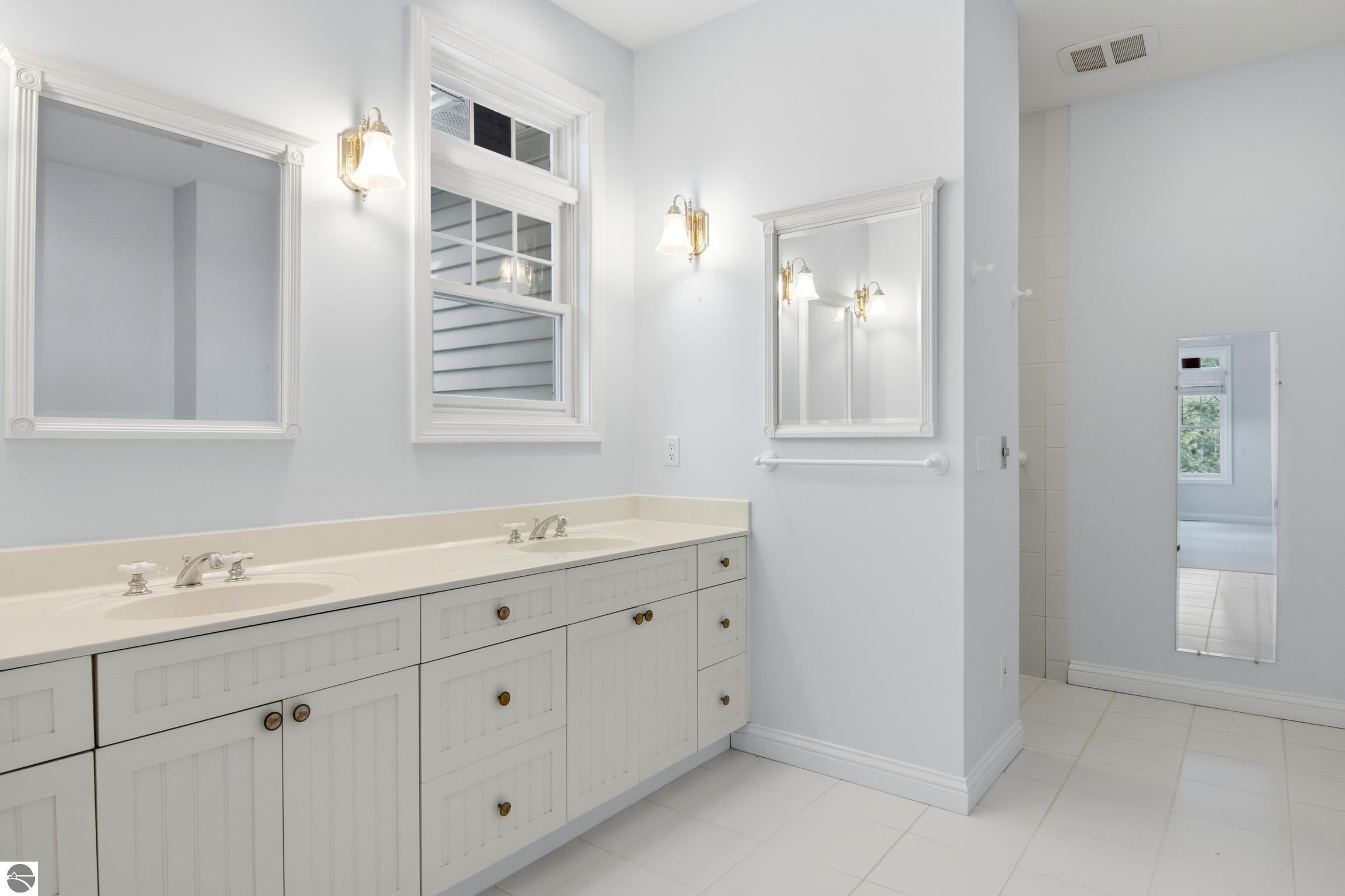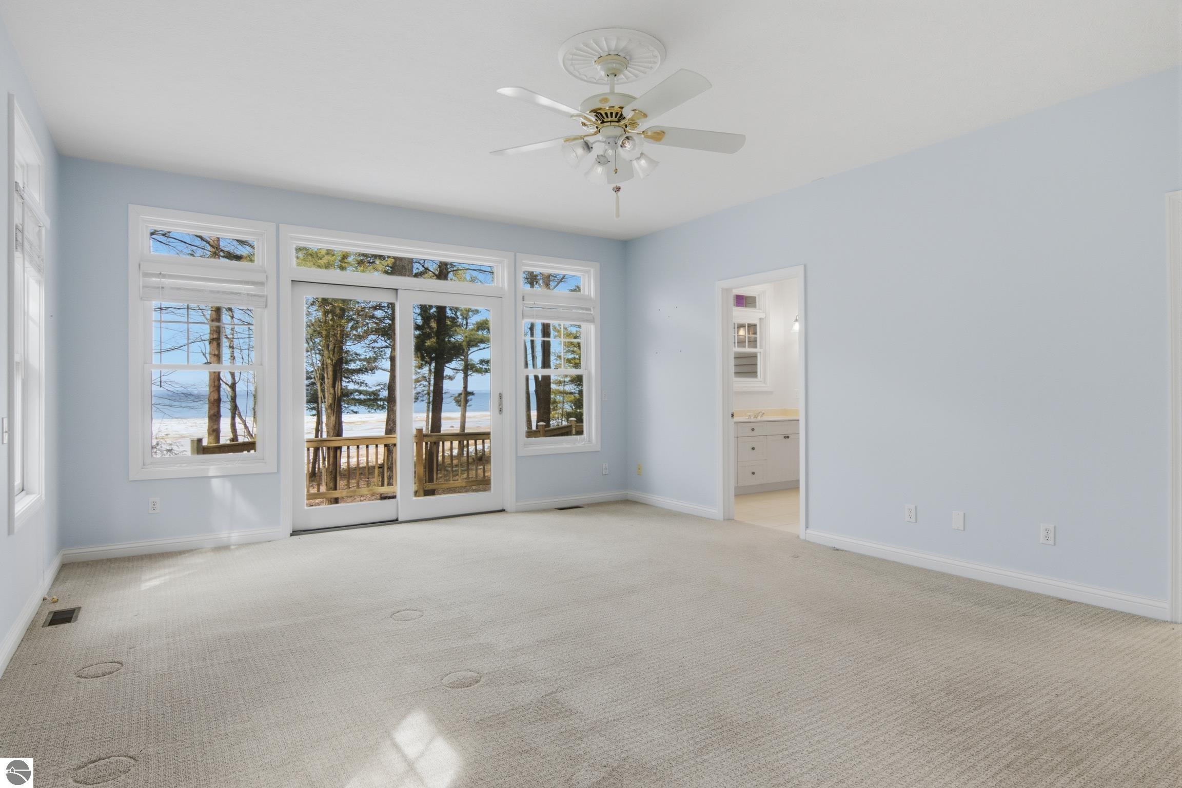 MAGNIFICENT EAST GRAND TRAVERSE BAY SETTING enhanced by 200 of sandy frontage, a wide stand beach and a wooded 3 acre setting. Over 4570 sq. ft. of living space this Architecturally designed home with spacious and comfortable living spaces, it is the perfect place to live year around or use as a getaway retreat. Step into the great room to discover a gorgeous stone woodburning fireplace, window seat with stone accents, panoramic windows featuring waterfront vistas. The kitchen boasts beautiful custom cabinetry, island with bar seating and convenient layout. The dining area leads you to the wrap around deck where you can dine alfresco or host a barbecue. Wake up to views of the lake from the main floor primary suite with sliders leading to the deck, 2 walk-in closets and a luxurious private bath with soaking tub, tile shower and dual vanity. The sunporch will be the gathering place for your morning coffee or family game night, a bright and airy room with lots of windows. Upstairs discover a family room; a unique turret room with stunning views-a perfect setting for your home office; and 3 of the bedrooms. The walkout lower level features a huge rec room; craft/workshop and mechanical room. Additionally discover quality material & superb craftsmanship; 5 large bedrooms; 5 baths, a main floor laundry room; 2-car garage with bonus room, whole house Generac generator and so much more. Your family and friends will appreciate their own guest cottage. Get ready to build sandcastles in the sand and listen to the waves lap the shoreline. Sit back, relax and watch the sunset over your one-of-a-kind setting. Professionally landscaped grounds, underground sprinklers, 3-acre wooded setting and waterfront sports just a few steps away. Spend summer days boating, watersports galore and making a splash on East Grand Traverse Bay. Hop on your boat and discover miles of shoreline!