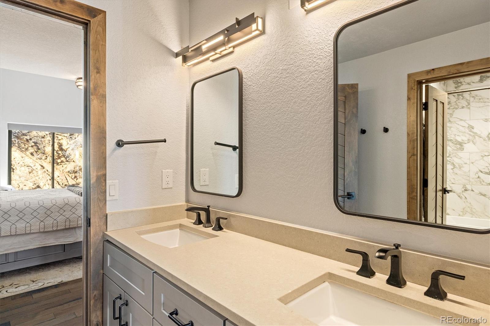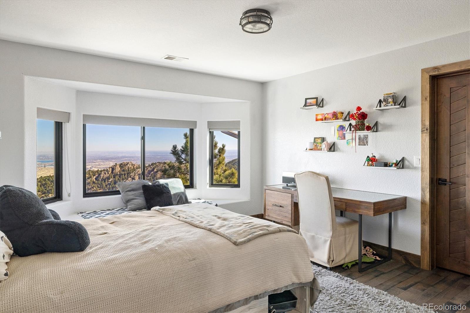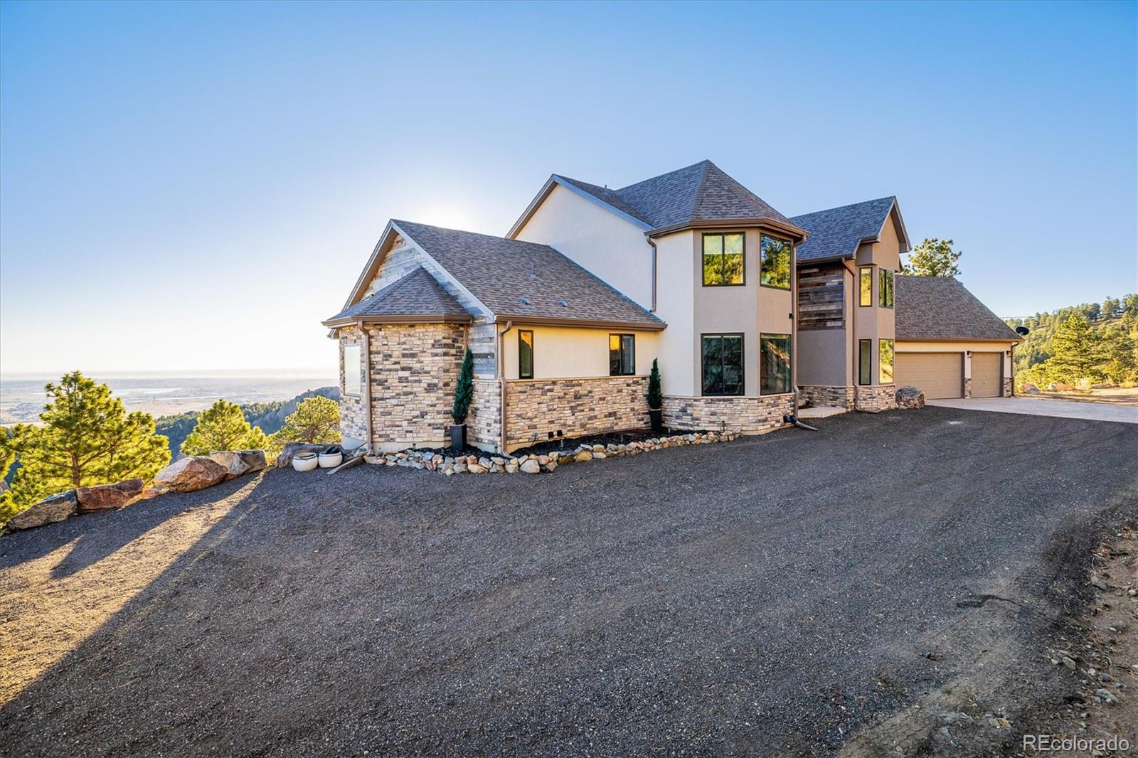Top of the world views! An amazing opportunity to own this rustic contemporary custom remodeled home on a private 12-acre PRIVATE parcel overlooking the valley in highly-sought Blue Mountain Estates. Full panoramic from Denver to Boulder with stunning sunrises and Denver skyline. This suburban mountain gem boasts cathedral ceiling-height windows, gourmet kitchen, gas fireplace, open/ great room floor plan with main floor primary bed overlooking the city, steam shower with separate vibro-acoustic therapy tub, large walk-in closets, 3 laundry rooms. Walk-out basement level highlights a media room, bar, wine/room, and guest suite. Multi-tiered decks, hot tub, 3 car finished/heated garage round out this authentic mountain living experience. LOCATION 20 minutes to Boulder, Golden & Denver! Unincorporated Jeffco, Golden address (lower taxes). New amenities slated at highway 72 & 93. Compare ppsqft on any new custom builds in the area (without the views!).By Appointment only. Contact listing agent for further information or to schedule a private showing.