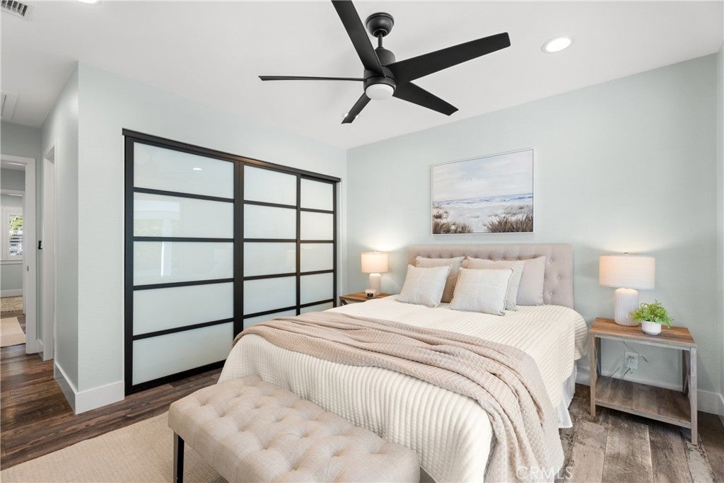 Absolutely stunning oasis on a quiet 40 foot RV access corner lot in a prime location. Entertainers delight. You will fall in love! Upon entering, you are welcomed into a grand foyer with soaring ceilings and an abundance of natural light. The open-concept floor plan seamlessly connects the living, dining, and kitchen areas, creating a harmonious flow throughout the home. The heart of the home is the chefs kitchen, boasting high-end stainless steel appliances, custom cabinetry, quartz countertops, and a spacious island with bar seating. Overlooking the pool make this kitchen as functional as it is beautiful. Whether youre preparing a casual meal or entertaining guests, this kitchen is equipped to handle it all. The primary suite is a sanctuary of luxury, featuring a spacious layout, private access overlooking the pool, and a spa-like en-suite bathroom. The master bath includes a walk-in shower, custom vanity, and a large closet. Additional bedrooms are generously sized, each with its own unique charm and ample closet space. The homes bathrooms are equally impressive, with high-end fixtures, custom tile work, and modern finishes. Step into the backyard, where an entertainers paradise awaits. The sparkling salt water pool, spa, slide, and waterfall is surrounded by lush greenery, king palm trees, and custom stonework that is perfect for both relaxation and recreation. An adjacent spa offers a tranquil retreat, while the covered patio with built-in BBQ and outdoor kitchen is ideal for hosting gatherings. Gorgeous outdoor kitchen that has a sunken bar with a sink, beer tap, Bull BBQ rotisserie, & fridge. Huge aluminum covered patio with insulation. Stamped colored concrete that exudes luxury. Some of the amazing upgrades include New windows, sliders, skylights, A/C split system, New gates, Tankless water heater, custom block wall, and custom lighting through out. Energy-efficient windows, central heating and cooling, and top-of-the-line security systems ensure peace of mind and year-round comfort. 2-Car attached garage with a custom African Mahogany garage door. Garage has two closets, drywall, custom lighting, quartz counters, New cabinets, Sink, & private access to storage above ceiling. Private 40 foot RV access parking with custom gate. Top rated private and public schools. Located just moments from the pristine beaches of Huntington Beach. Discover the epitome of luxury living where every day feels like a vacation!