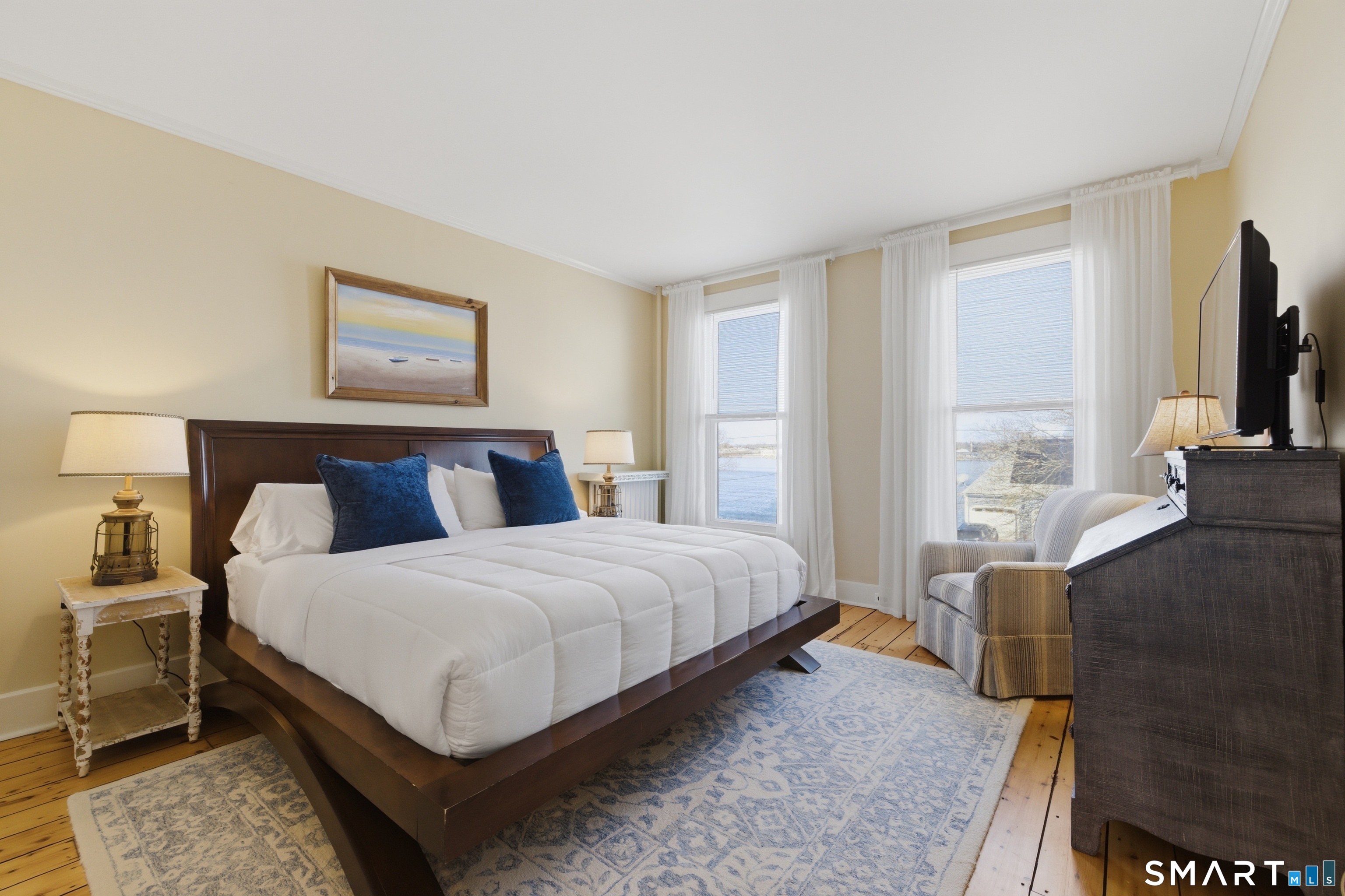 Classic charm, modern comfort, and a premier yachting lifestyle, this is waterfront living at its finest. Welcome to 597 Pequot Avenue, one of New Londons most coveted waterfront addresses. This beautiful home offers breathtaking Thames River views from all three levels, with front-row views of passing ferries and ships, an ever-changing maritime backdrop. With seven bedrooms, sun-filled living spaces, and full baths on every level, this home is ideal for hosting family and guests. Highlights include a chefs kitchen, elegant living room with fireplace, a private 100 movie theater, and major upgrades including new electrical service, a newer boiler, and a hybrid hot water heater and is move-in ready. What truly sets this home apart is its unmatched boating lifestyle. Located within walking distance of the Thames River Yacht Club. Enjoy direct access to Long Island Sound, a vibrant sailing and cruising community, moorings, launch service, social events, and easy trips to Fishers Island, Block Island and Long Island. For sailors, power boaters, fishermen and yachtsmen, this is a rare and unique opportunity to live just steps from one of Connecticuts most desirable yacht clubs. Perfectly positioned halfway between New York City and Boston, with easy access to I-95 and Amtrak, this home offers an exceptional balance of coastal living and commuter convenience. Classic charm, modern comfort, and a premier yachting lifestyle, this is waterfront living at its finest