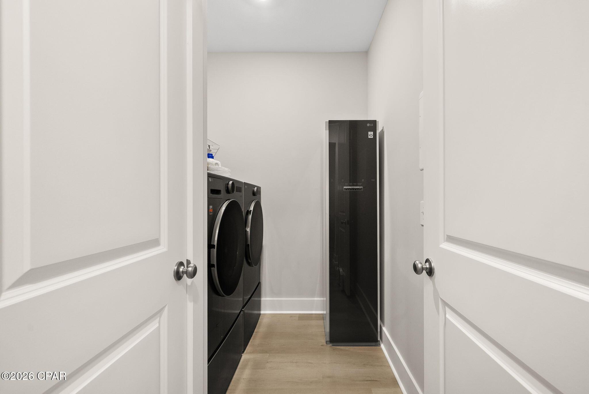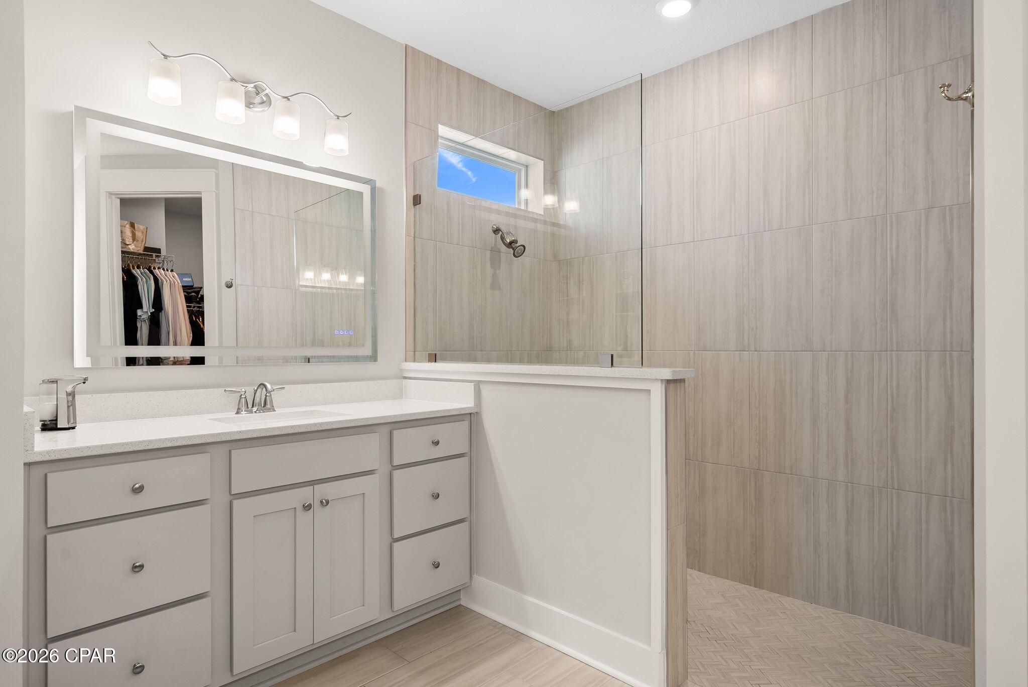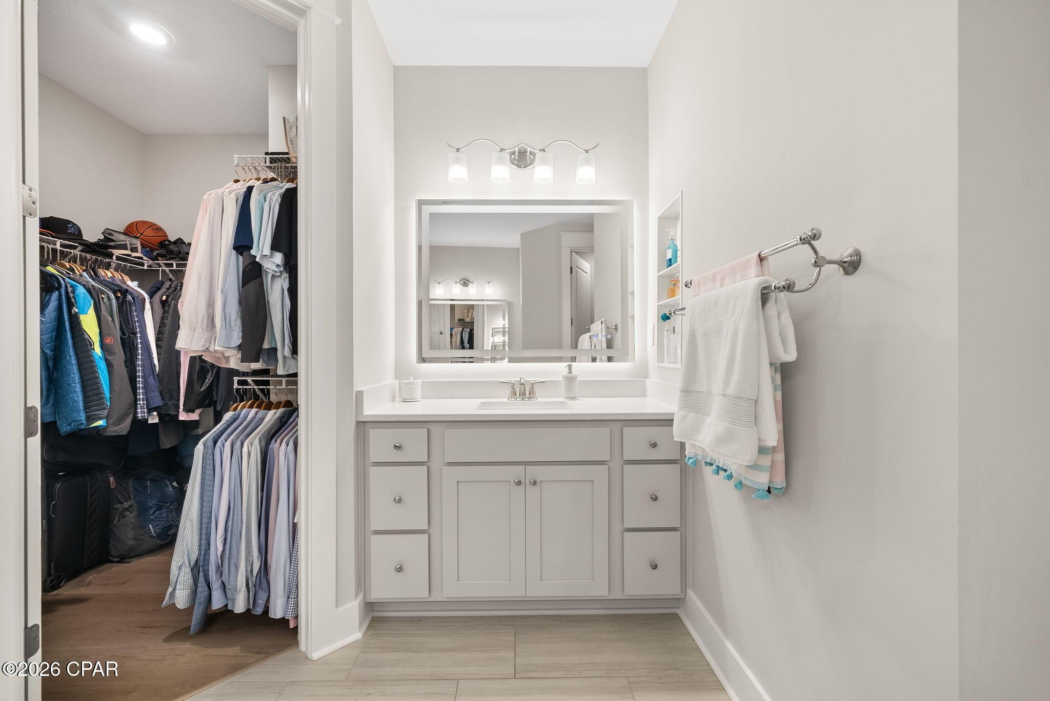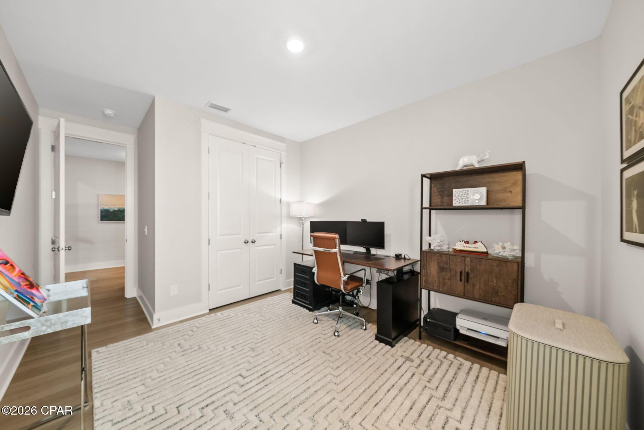 ENDLESS upgrades in central Panama City Beach location! Beautiful newer home immaculately maintained in the desirable Breakfast Point East community. Thoughtfully enhanced well beyond builder grade, this property stands out with an impressive list of modern upgrades, smart home features, and stylish finishes throughout. The exterior features whole house storm gutters, an enclosed patio with an electric retractable screen, and durable epoxy-coated porch and patio floors. The backyard is complete with a WiFi-enabled sprinkler system, a dedicated flower bed irrigation system, white marble landscaping accents, and a full outdoor termite prevention system. Smart exterior upgrades include professionally wired Google security cameras, floodlights, a doorbell camera, solar-powered garage lights, patio ceiling outlets, a ceiling fan, and beautifully placed solar lighting throughout the yard. Inside, the home continues to impress with upgraded bathrooms featuring built-in shelving, LED mirrors with dedicated wiring, and high end fixtures including Pottery Barn towel racks and accessories. Living spaces are designed for both comfort and entertainment, highlighted by a custom built entertainment wall complete with Philips Hue lighting, a color-changing electric fireplace, a 75 Samsung TV, Samsung soundbar, and hidden storage with integrated outlets. Additional interior features include built in closet systems in secondary bedrooms, an advanced A/C electrostatic purification system, multiple TV mounts, custom curtain rods, added pantry electrical access, and a full ADT security system with window sensors and fire/carbon monoxide detection. Subtle touches like accent hallway lighting enhance the overall ambiance. The attic has been upgraded for maximum usability with a pull-down ladder and added wood flooring, creating valuable additional storage space. In the kitchen, youll find both style and functionality with a touchless faucet, pot filler, custom cabinet hardware, designer island lighting, a Samsung Bespoke refrigerator, and cleverly designed retractable organizers for pots, lids, and spices. This home offers a rare combination of modern technology, thoughtful upgrades, and everyday practicality, all in a prime central location close to top rated schools, shopping, restaurants, and the white sandy beach. A RARE GEM LIKE NEW! Schedule your private showing today! Buyer to verify any information deemed important.