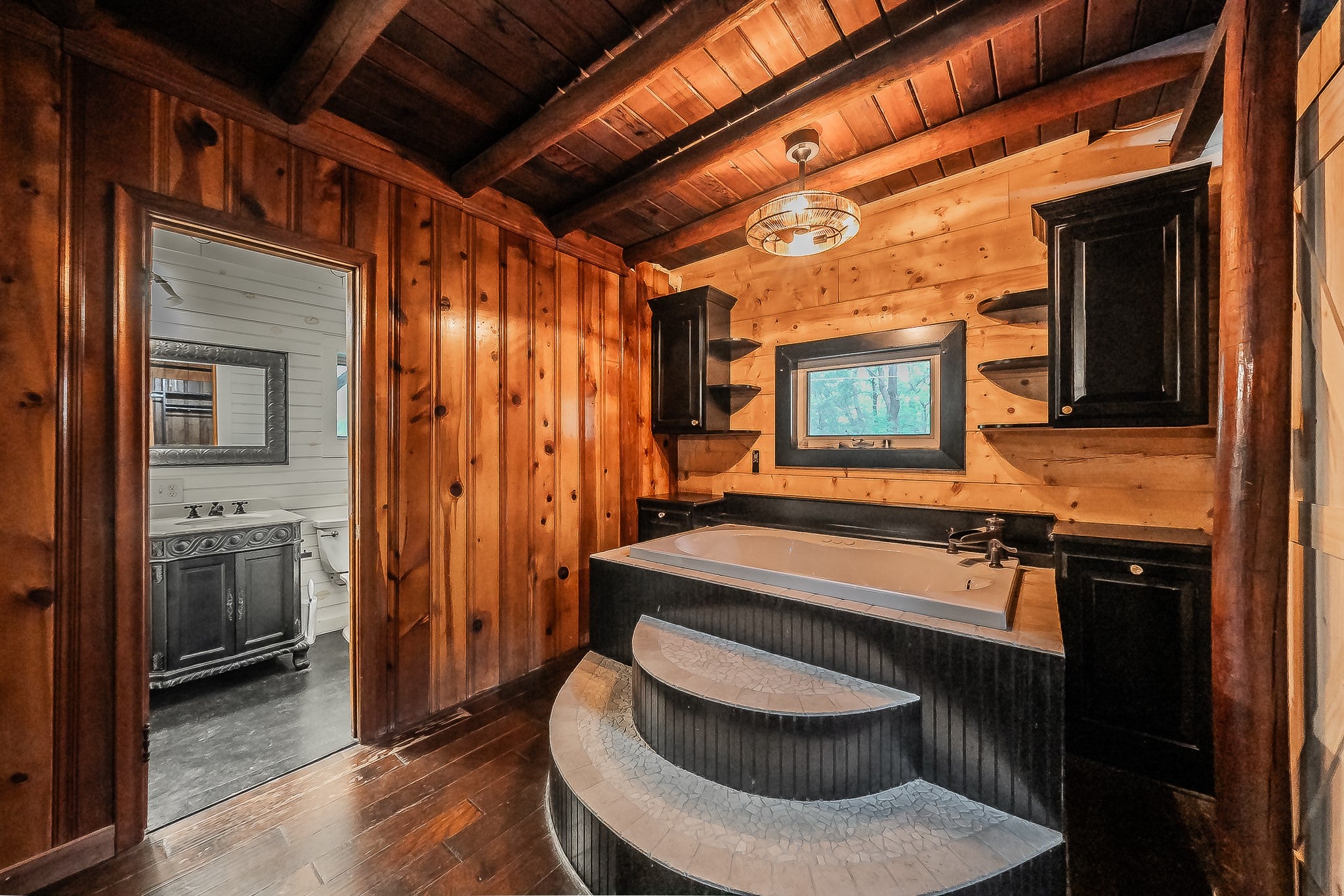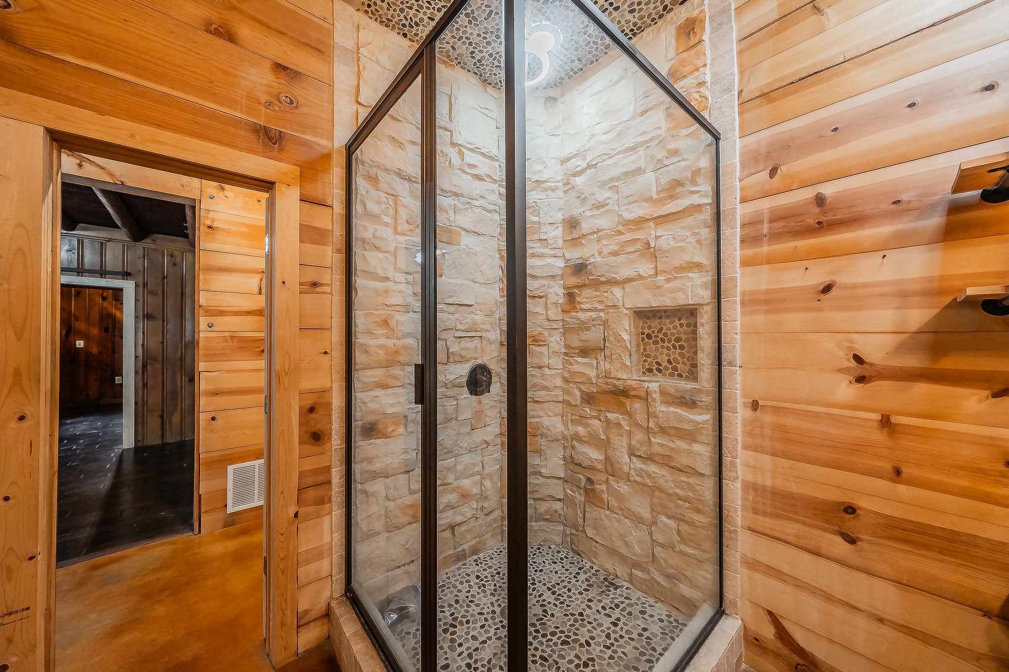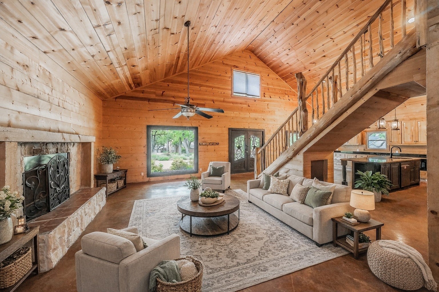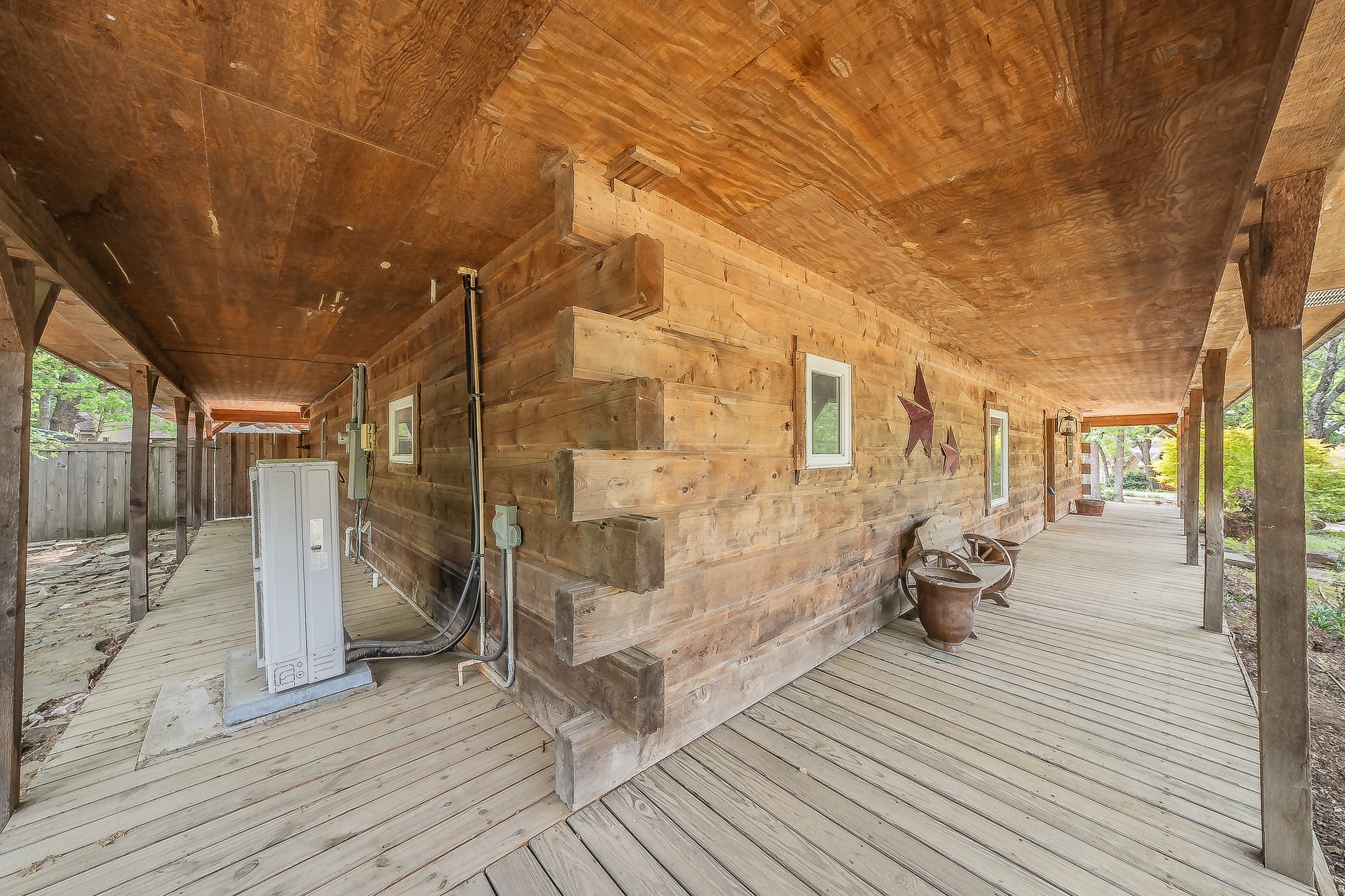 Stunning Lake-House Style Retreat Near Grapevine Lake. Discover this one-of-a-kind lake-house style home, just a short walk to Grapevine Lake and the Northshore Trails. This custom log cabin-inspired residence features a solid wood exterior and a durable metal roof, set on nearly half an acre of serene, private land.