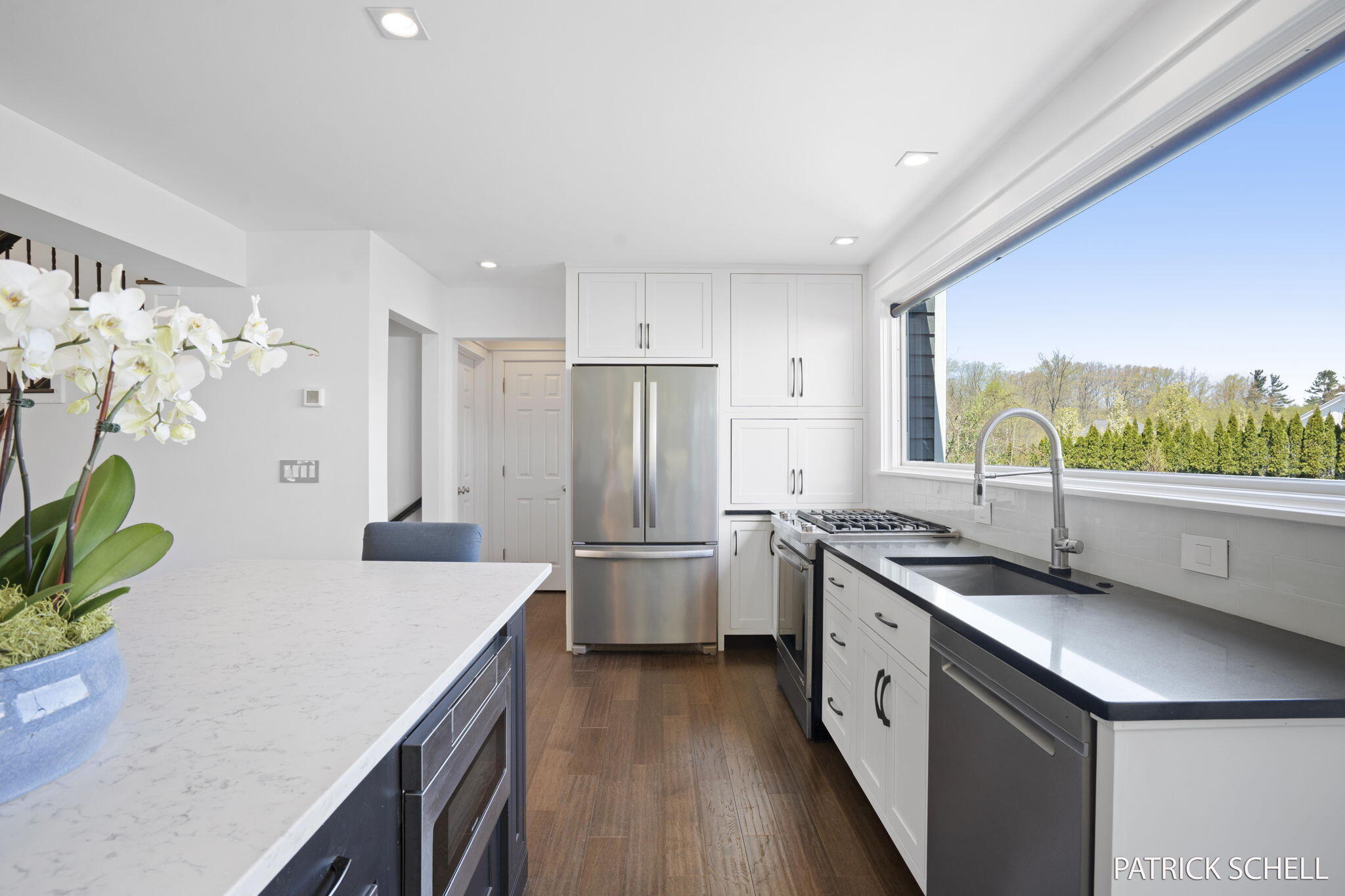 The Renovation. A magazine-worthy kitchen that blends luxury materials, thoughtful upgrades, and custom craftsmanship—turning this brick-and-beam loft into a standout property in the Boston market. The Kitchen, Italian Marble Honed finish.